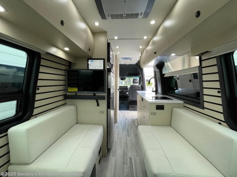 These Pleasure-Way Plateau Class B diesel motorhomes have been designed with comfort and convenience to accommodate a wide range of lifestyles! They are powered by a Mercedes Benz Sprinter 3500 van chassis with high-performing, fast-charging, and maintenance-free Eco-Ion Earth Smart dual 300Ah lithium batteries. The dual 10 inch touchscreen control panels allows you to adjust the climate, manage the battery usage, monitor the solar panel charge volts, and set, start, or stop the automatic generator. Another feature is the Truma AquaGo Comfort Plus water heater that has a 60,000 BTU stepless burner, a recirculating water line, and a mixing vessel to deliver hot water on demand without temperature spikes. Come see what all the fuss is about today!