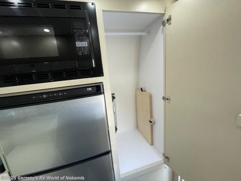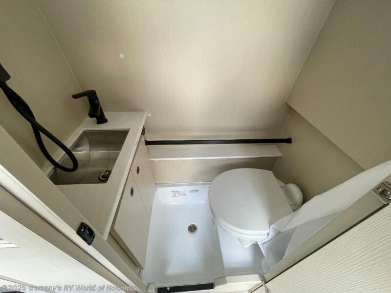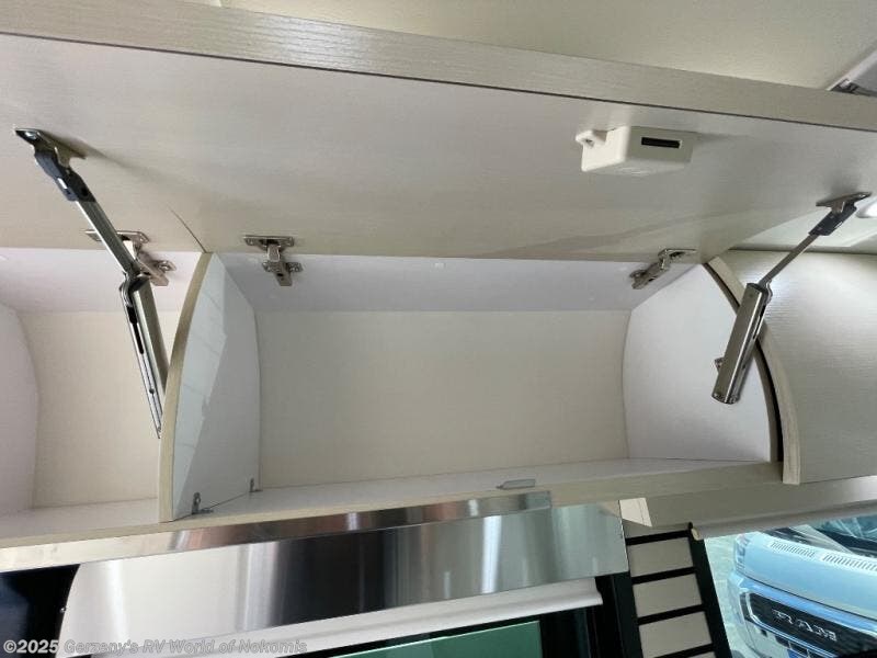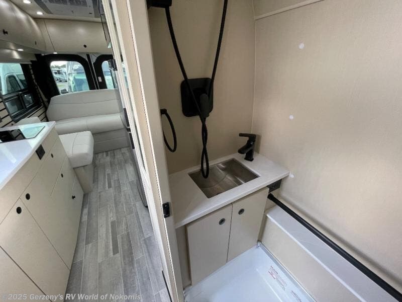 You will experience a comfortable ride in this Plateau Class B diesel motorhome with memory foam sofa cushions. The wet bath comes fully equipped with a medicine cabinet including a mirror, a Corian countertop, a towel rack, and a handheld showerhead. The exterior shower also has a handheld showerhead to make rinsing off the evidence of a fun-filled day even easier before heading inside. All of the seating throughout is covered in Ultraleather fabric, including the swiveling captain's chairs. With a generous amount of available storage in a full-size wardrobe, you can easily reach any of your hang-up clothes!