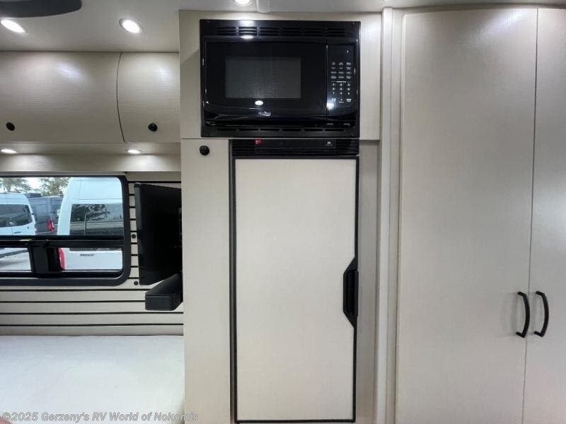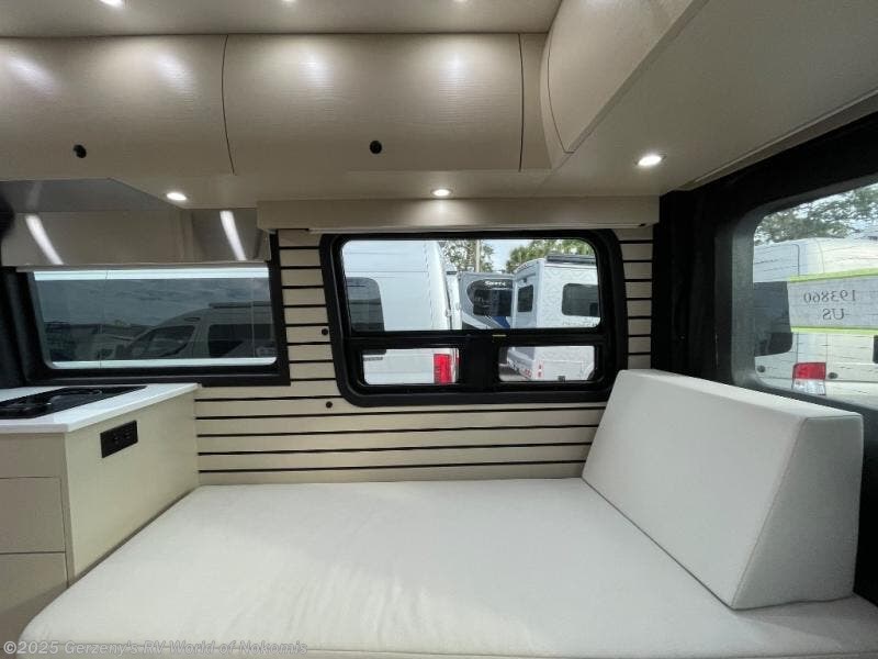This Plateau Class B diesel motorhome features 74" x 30" twin beds, making it easier than ever to travel with a friend! There is also an array of storage options between the overhead cabinets, the soft-close drawers, and the pull-out pantry. If you have to get a little bit of work done while on the road, then you will love the front lounge flip-up workstation with a 120V power outlet, USB charging ports, and a privacy shade as well. The microwave makes it easy for you to pop a bag of popcorn and watch a movie on the front or rear 24" smart LED TV!