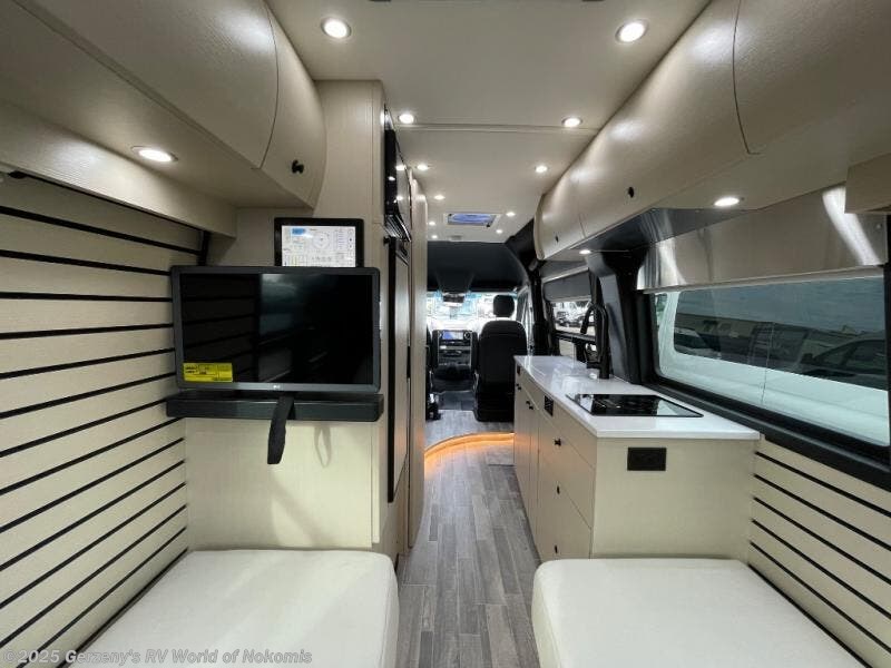 These Pleasure-Way Plateau Class B diesel motorhomes have been designed with comfort and convenience to accommodate a wide range of lifestyles! They are powered by a Mercedes Benz Sprinter 3500 van chassis with high-performing, fast-charging, and maintenance-free Eco-Ion Earth Smart dual 300Ah lithium batteries. The dual 10 inch touchscreen control panels allows you to adjust the climate, manage battery usage, monitor the solar panel charge volts, and set, start, or stop the automatic generator. Another feature is the Truma AquaGo Comfort Plus water heater that features a 60,000 BTU stepless burner, a recirculating water line, and a mixing vessel to deliver hot water on demand without temperature spikes. Come see what all the fuss is about today!