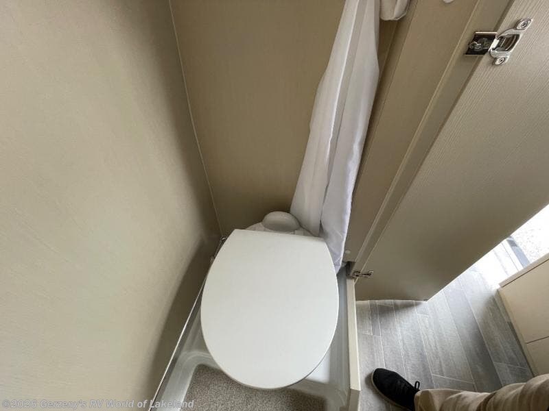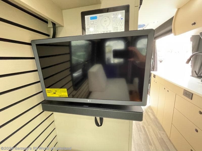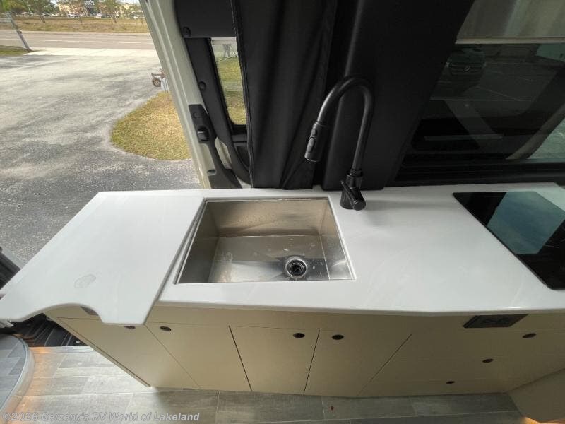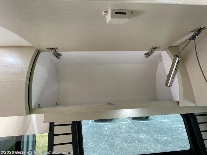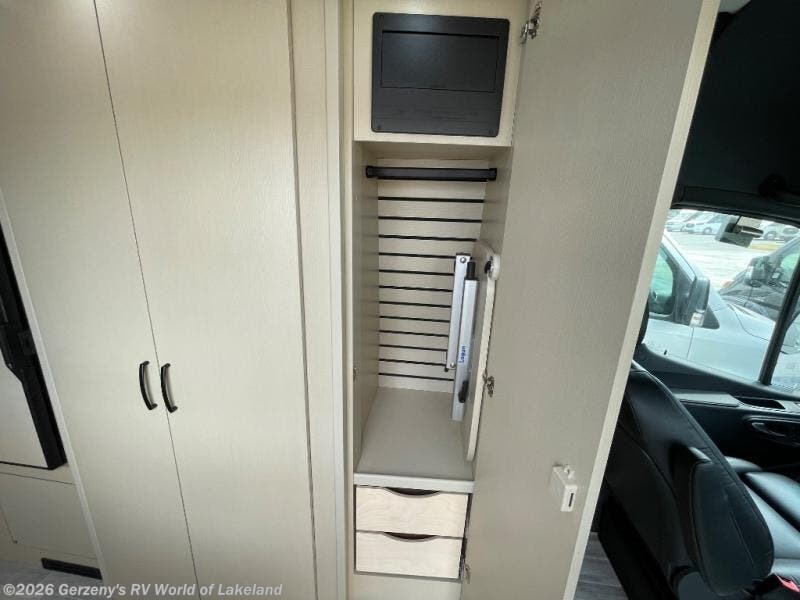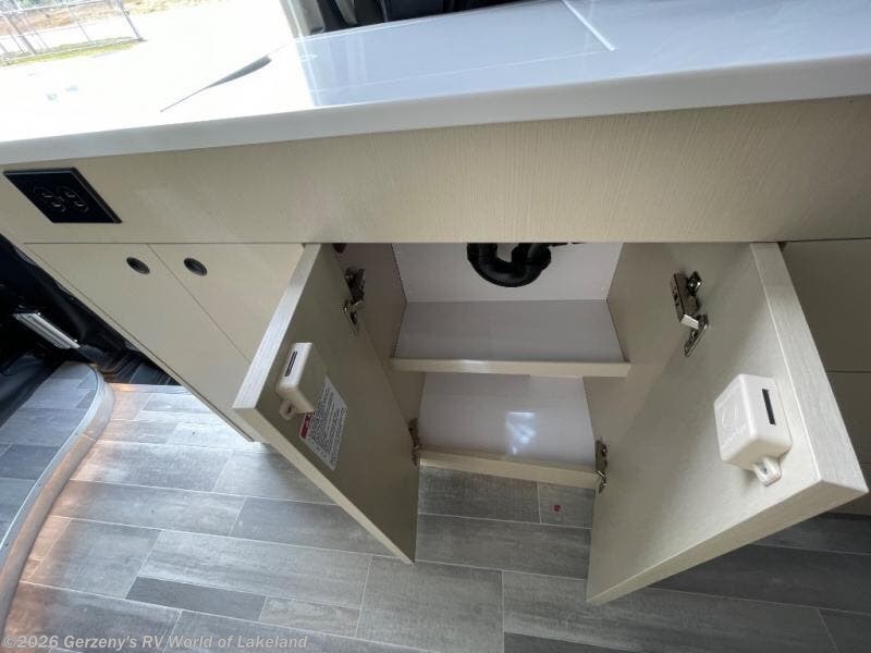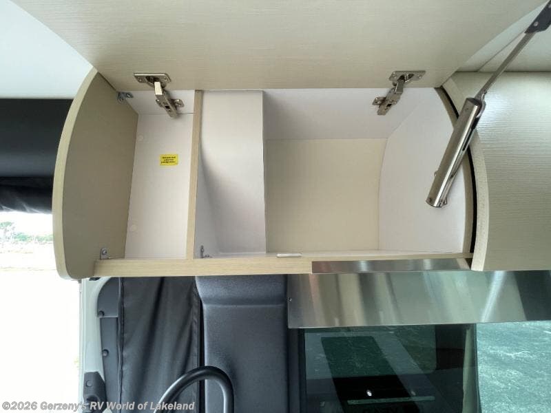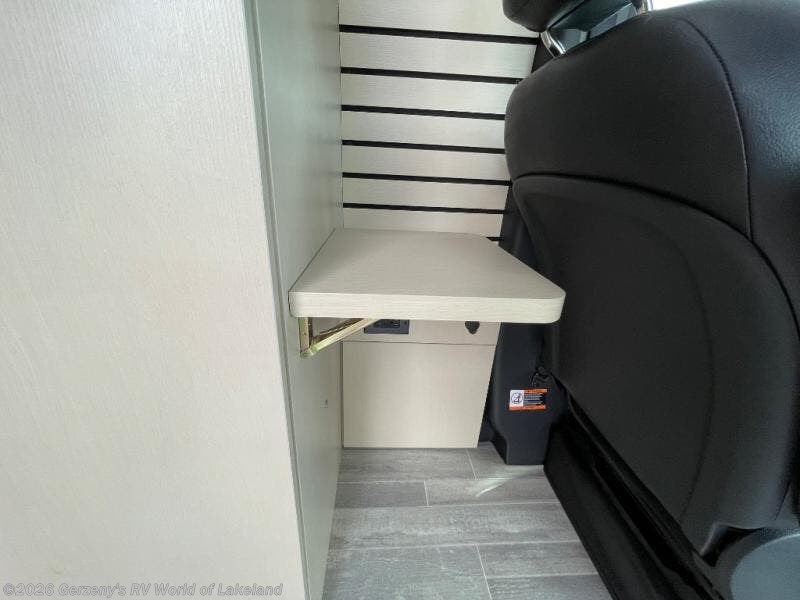 This Plateau Class B diesel motorhome features 74" x 30" twin beds, making it easier than ever to travel with a friend! There is also an array of storage options between the overhead cabinets, the soft-close drawers, and the pull-out pantry. If you have to get a little bit of work done while on the road, then you will love the front lounge flip-up workstation with a 120V power outlet, USB charging ports, and a privacy shade as well. The microwave makes it easy for you to pop a bag of popcorn and watch a movie on the front or rear 24" smart LED TV!
