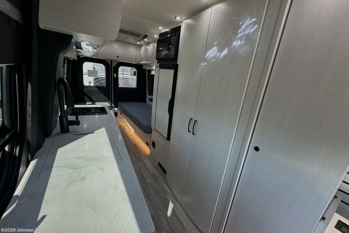 Features Include: 170-inch Wheelbase, 211 HP, Active Brake Assist, Attention Assist, Blind Spot Assist, Crosswind Assist, Drive Away Assist, LED Headlamps, Locking Fuel Fill, Keyless Ignition, Ultraleather, Power, Memory, Swivel, Heated Seats, AC and Heat, Power Side-Mirrors, LED Porch Light, Vinyl Flooring, 75-inch High Ceiling, Pull-Out Pantry, Corian Sink Cover, Microwave Oven, Multiplex Wiring, Enclosed Wet Bath, Shower Curtain