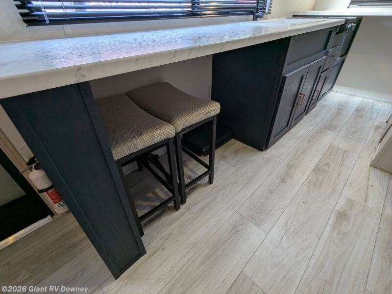 - Rear Kitchen Layout with a bar-top, stools, and functional design for both meals and socializing.