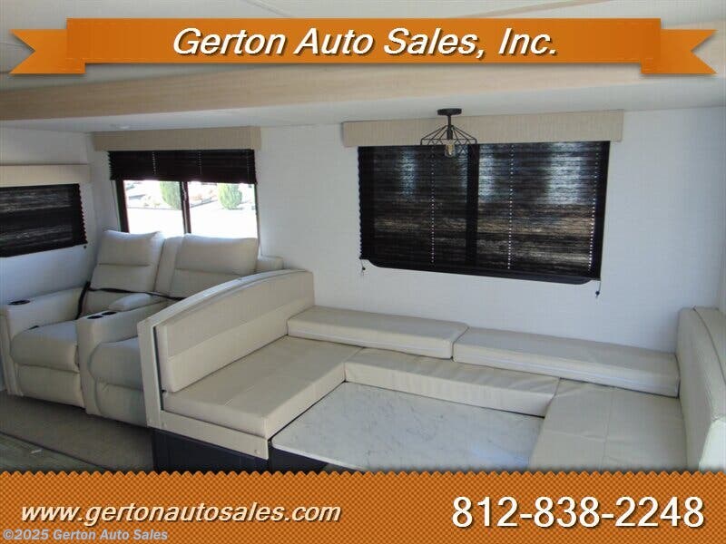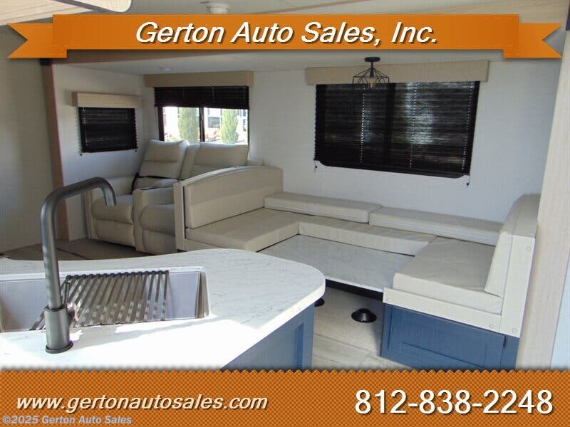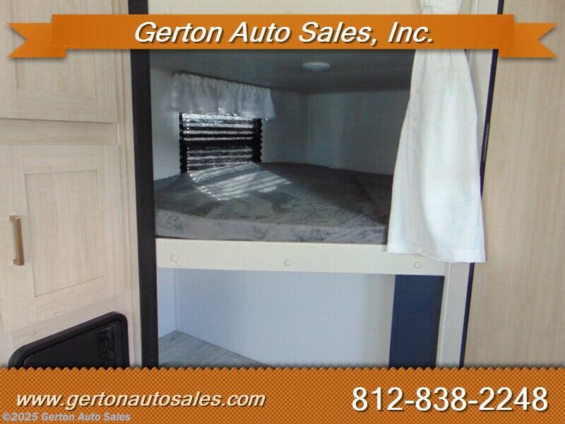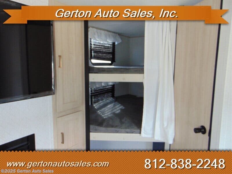The Avenger 27DBS model features a front queen bedroom that's separate from the rest of the coach, with sliding doors for extra privacy. The main living area feels roomy thanks to the slideout with sofa and spacious U-dinette. Large windows bring in natural light and great outdoor views. The fully equipped kitchen makes mealtime a snap, with residential appliances and a pantry for extra storage. In the rear, the bunk room provides a pair of large double bunk beds, plus a full bathroom. Options on our coach include Fireplace with 50 amp service, 2nd Air Conditioner, and power stabilizer jacks. MSRP on this coach is $43833.00. UVW is 6568 pounds. GVW is 9521 pounds. See all photos of this and other fine RVS and vehicles at or call/text us at 812-838-2248 to set a time to see it in person. Tax, title, and $225.00 documentation fee extra.