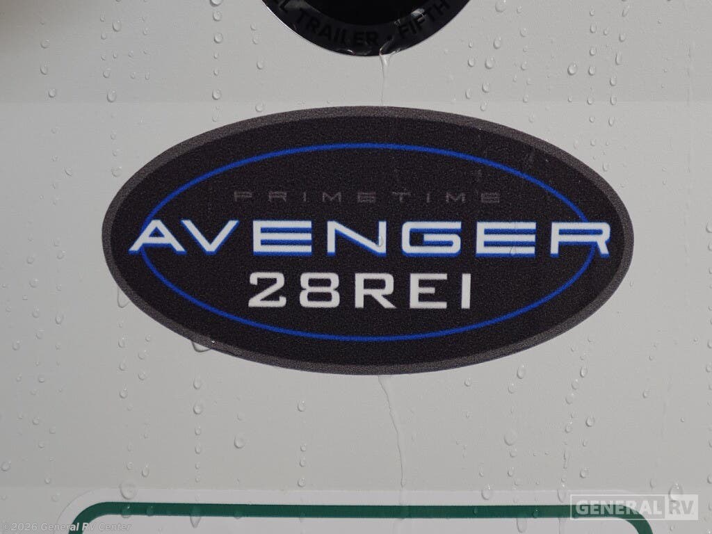 ## Prime Time Avenger travel trailer 28REI highlights - Kitchen Island - Theater Seating - Master Suite - Opposing Slides - Fireplace A couple or family will enjoy all the space in the main living and kitchen area, and the privacy in the front bedroom. As you spend each night sleeping on the queen-size bed in the master suite, you will appreciate the convenience of discreetly entering the full bathroom with aneo-angled showerwithout waking up your guests who are sleeping on the sofa or booth dinette. Because there are two opposing slides included in the central living area, there is plenty of space to prep dinner or wash dishes on the kitchen island. With any Avenger travel trailer by Prime Time, the exterior includes an aerodynamic smooth front metal, a diamond plate front rock guard for protection on the road, and four stabilizer jacks to keep your unit secure. There is a fully walkable roof plus an enclosed and heated underbelly that will help extend your camping season. The interior offers a 15,000 BTU air conditioner for the perfect climate inside, in-floor ducted heat, a systems monitor panel, and a Winegard 360+ antenna with Wi-Fi prep that will give you the option to stay connected as you camp. Each model also includes seamless Carefree Congoleum flooring, kitchen backsplash, shower pans in all models, and pleated nightshades throughout to name a few interior comforts!