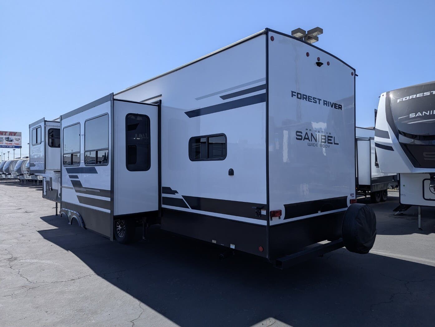 Visit Giant RV in California today to explore the 2025 Prime Time Sanibel 3883LRWB—your luxurious, high-comfort home on wheels ready for every journey.
