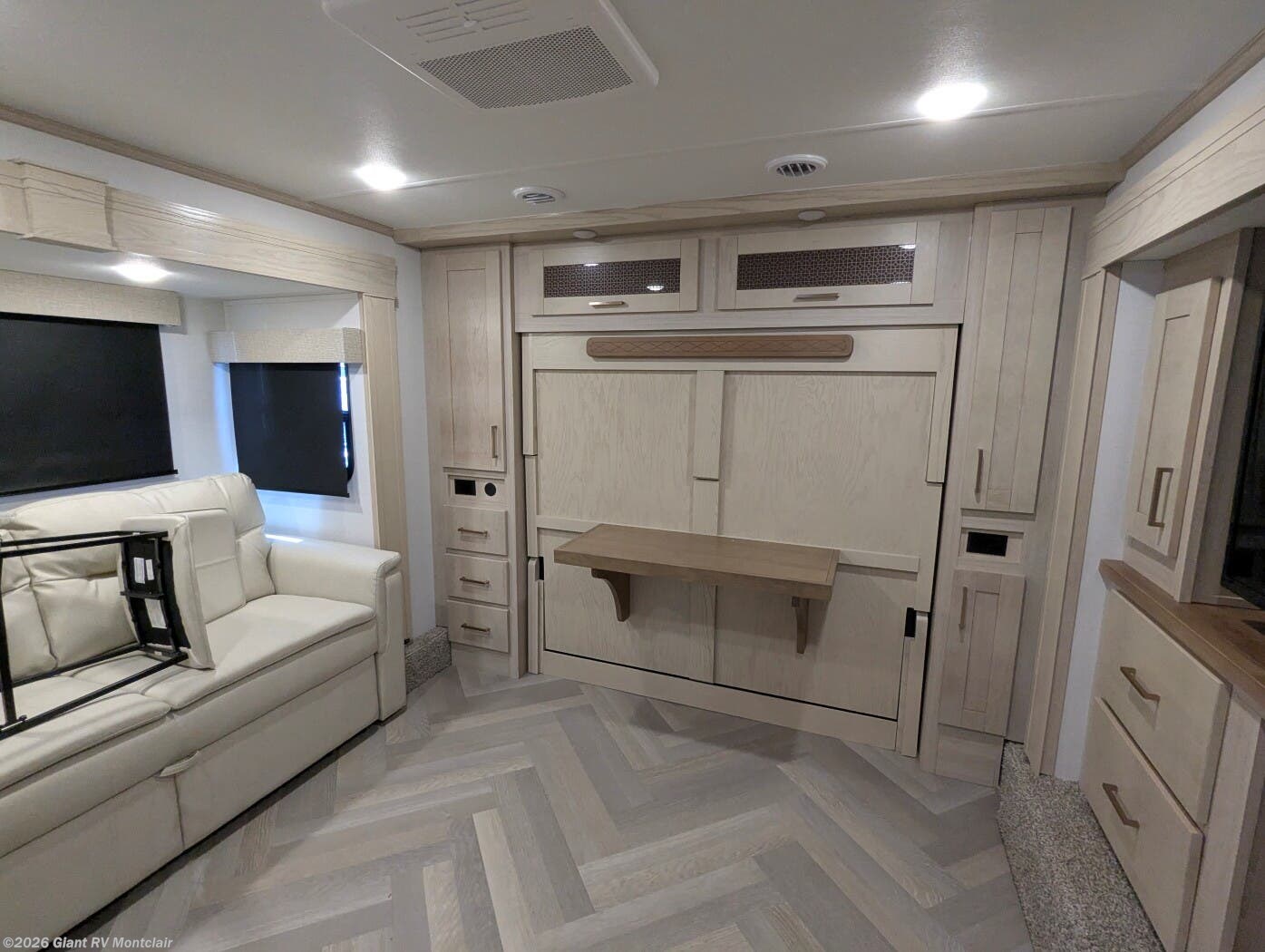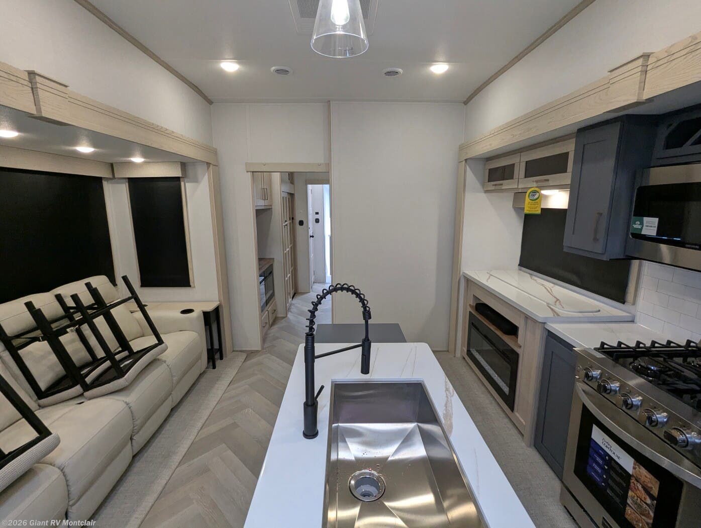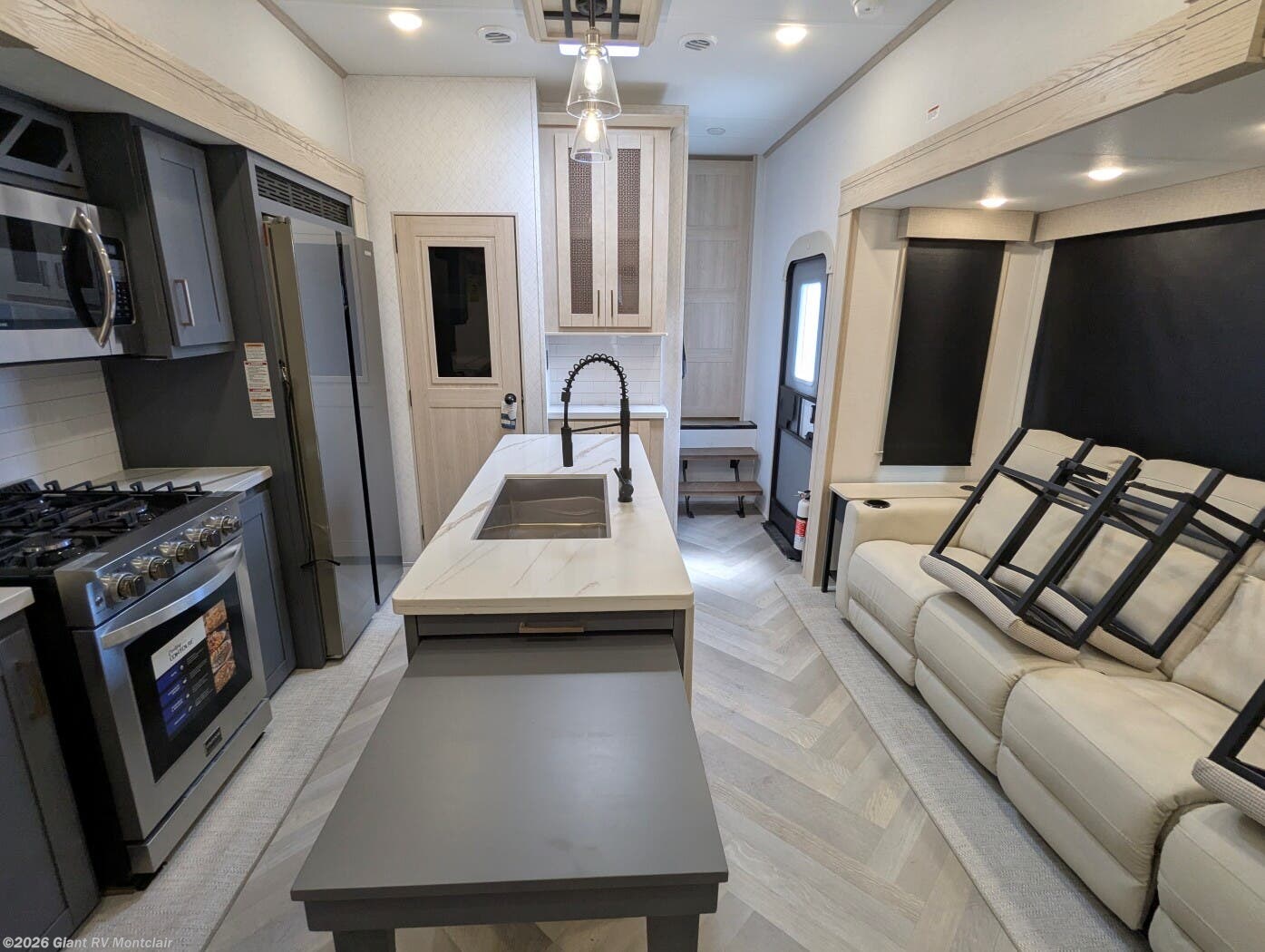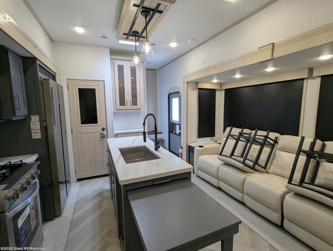 - Luxury Living Space with theatre-style sofa, hidden dinette, grab-and-go chargers, and premium finishes throughout.