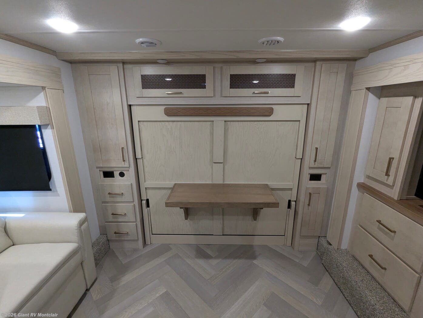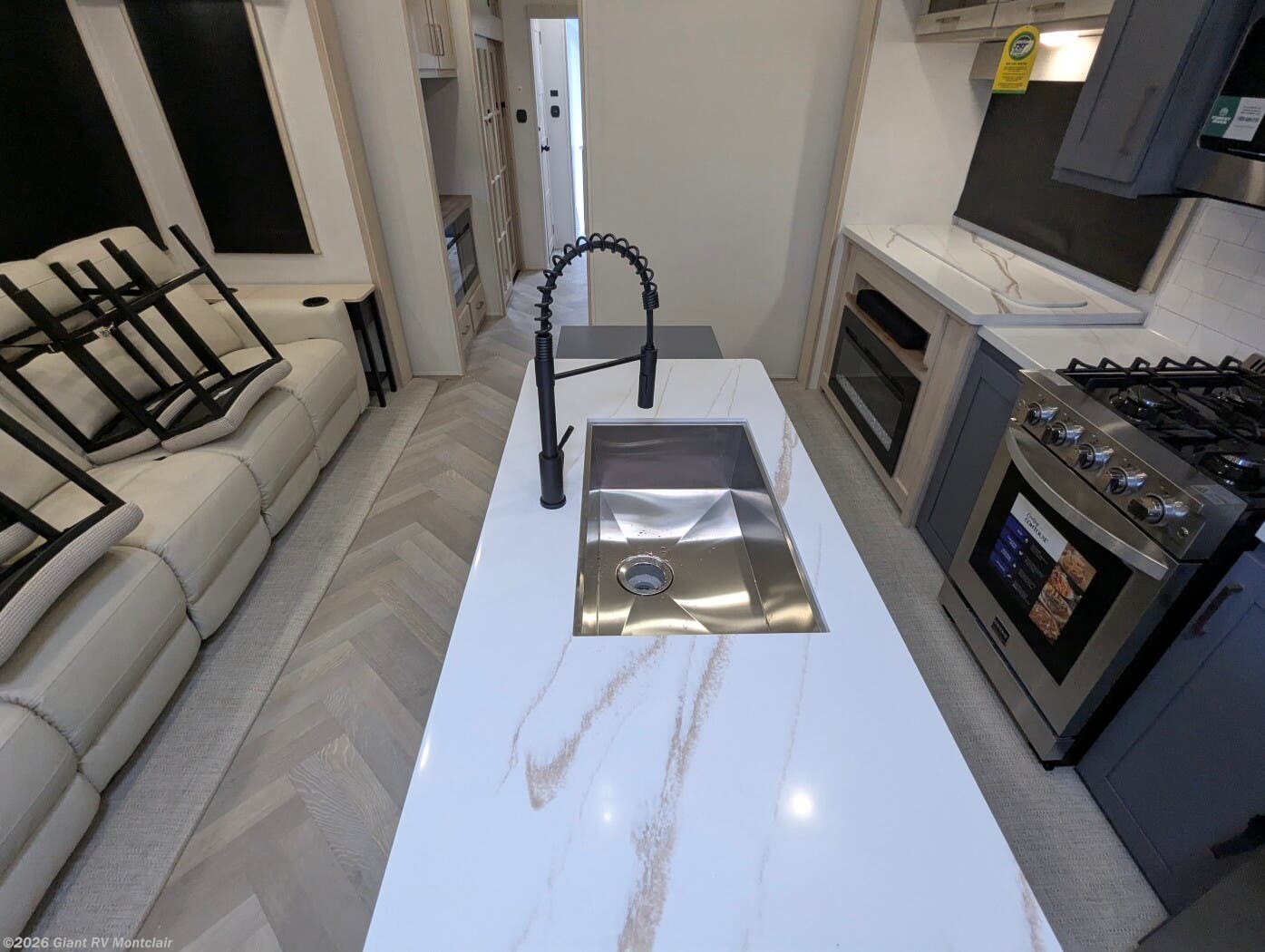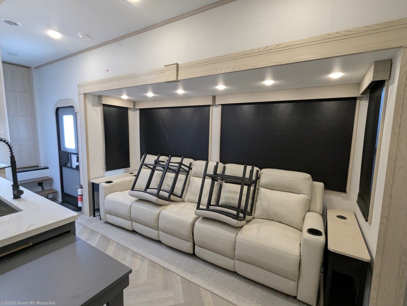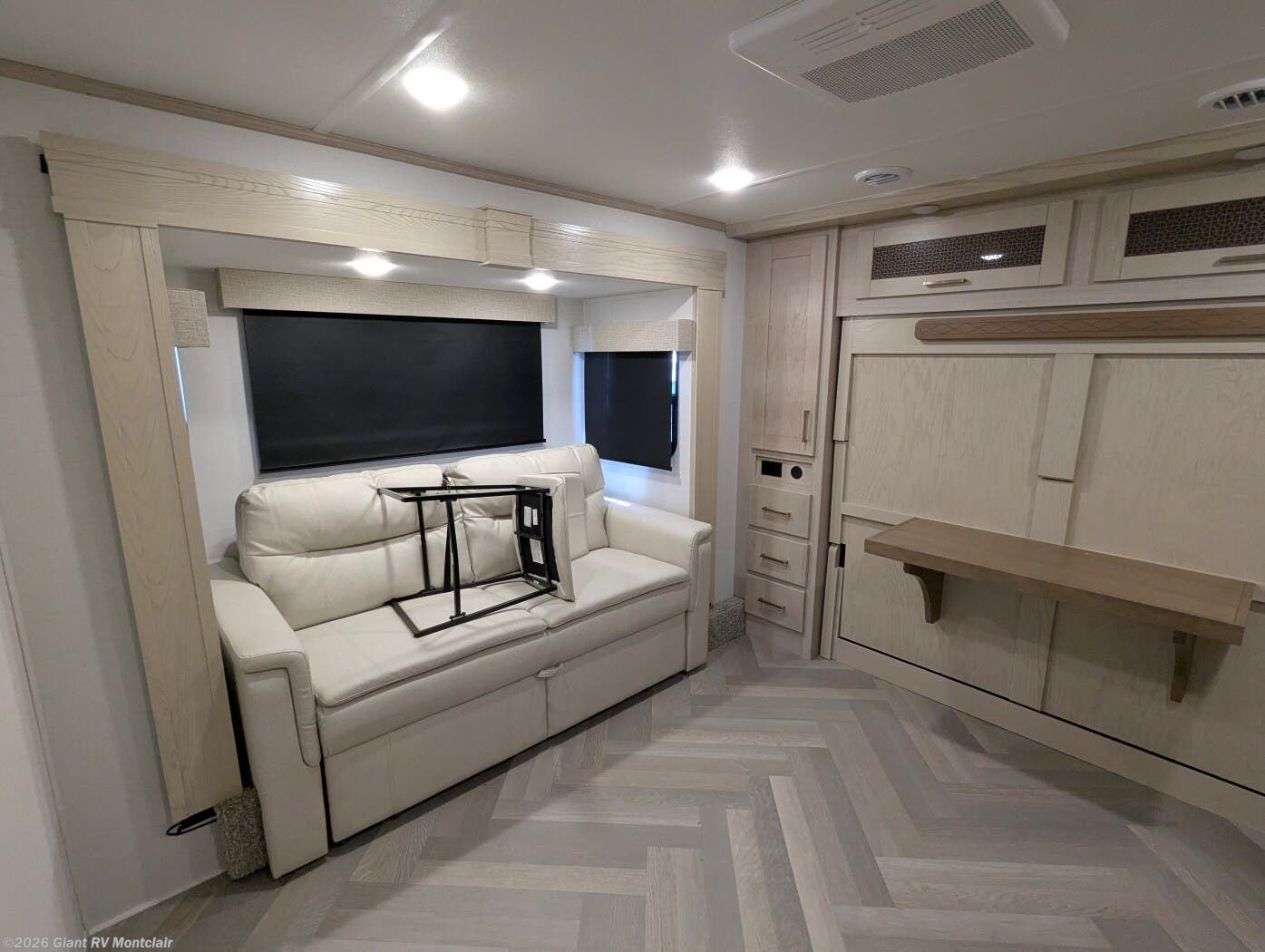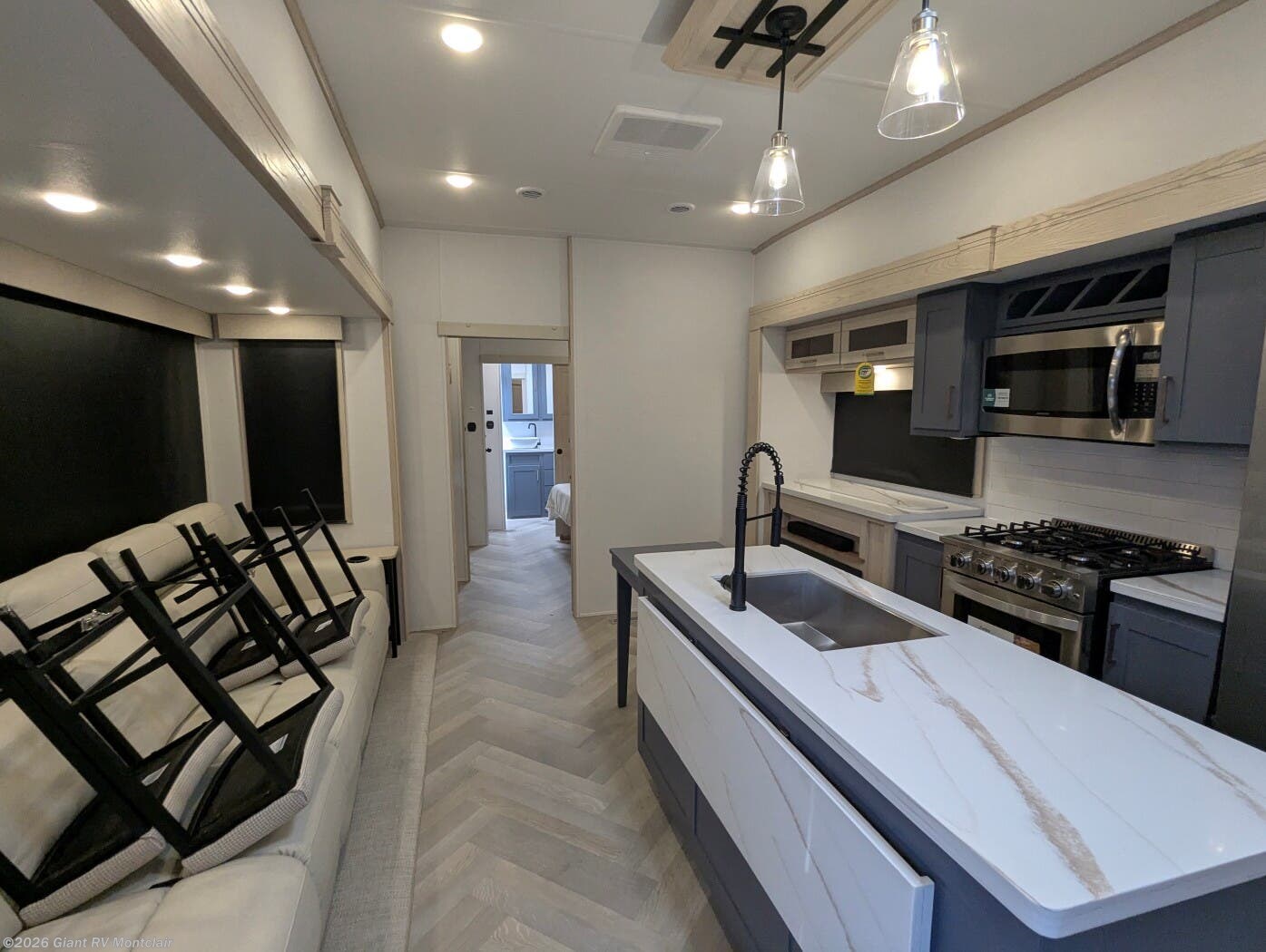 - Luxury Living Space with theatre-style sofa, hidden dinette, grab-and-go chargers, and premium finishes throughout.