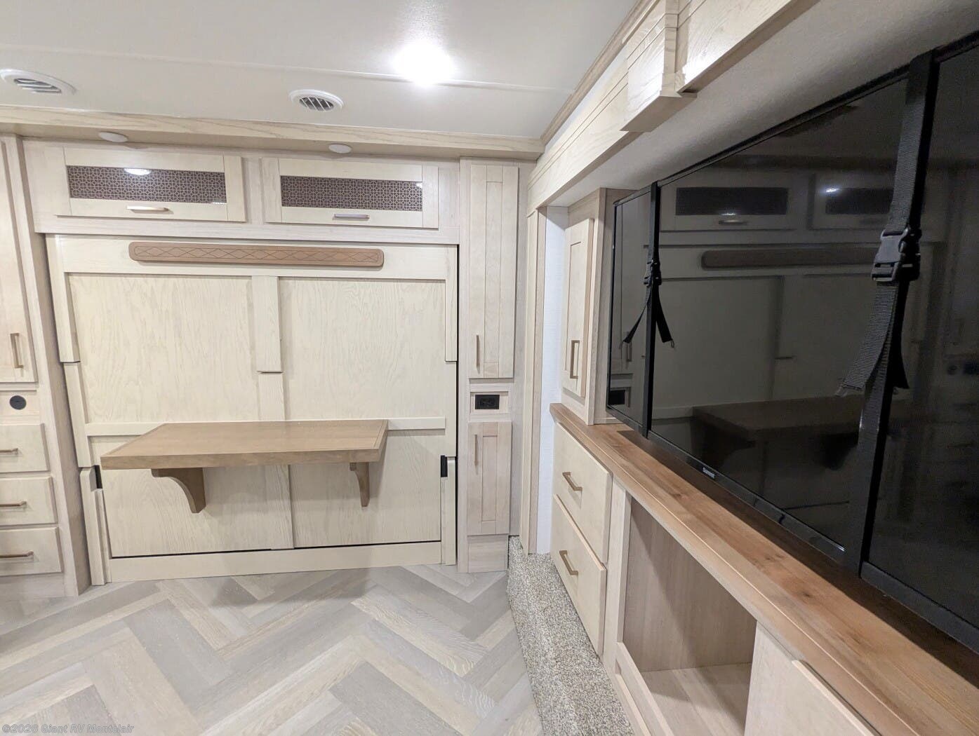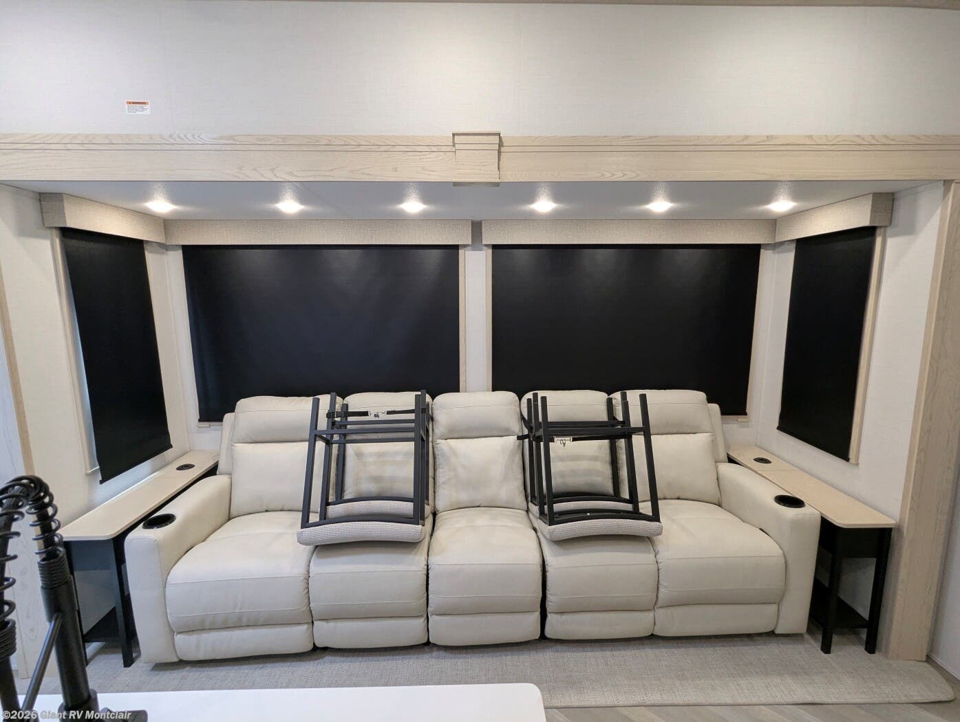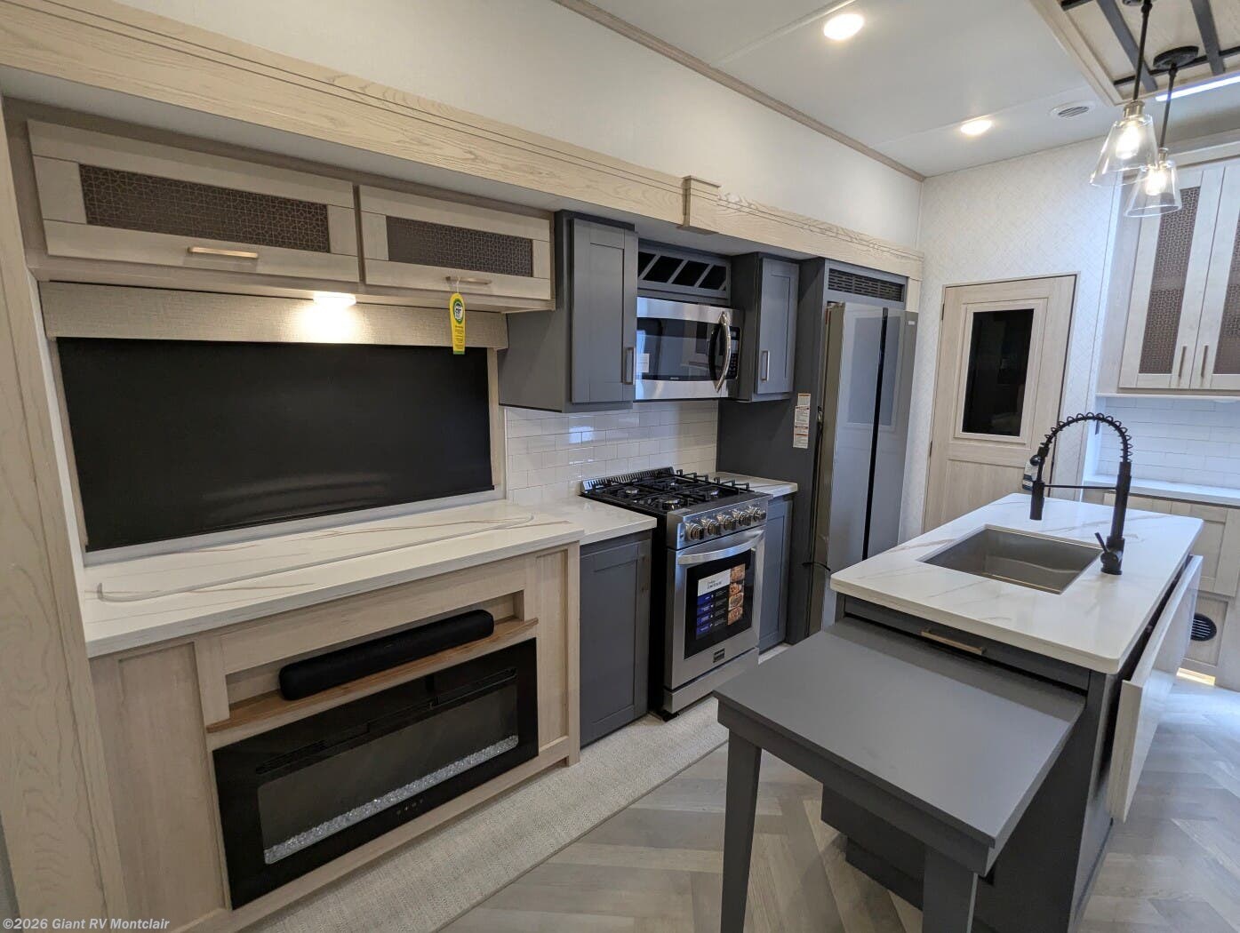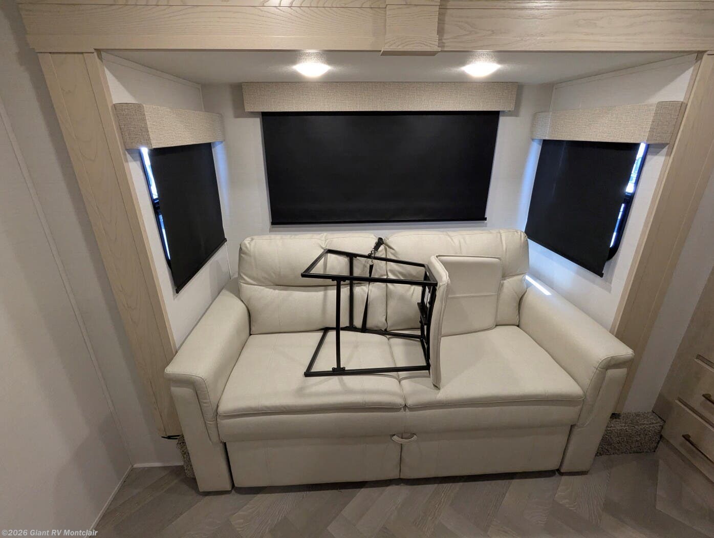 - Luxury Living Space with theatre-style sofa, hidden dinette, grab-and-go chargers, and premium finishes throughout.