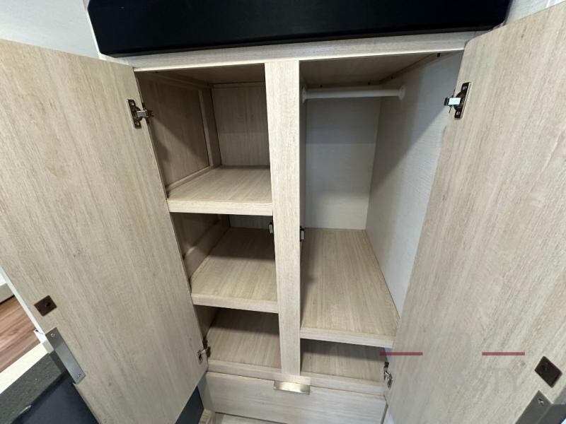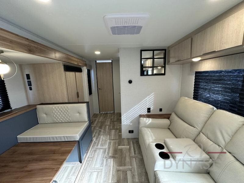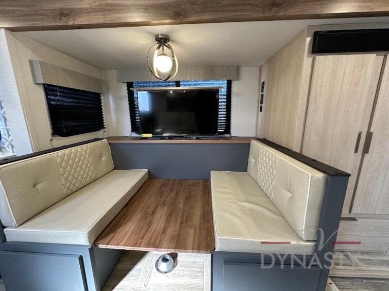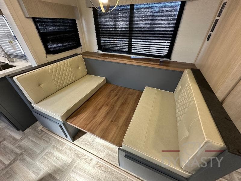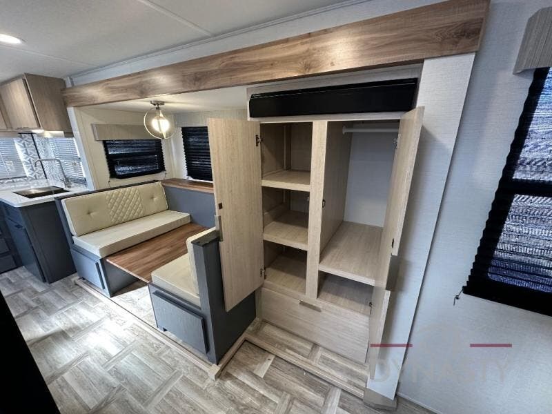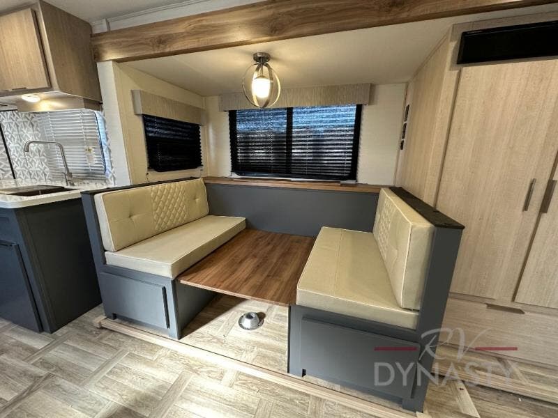 The cook in the family will love this trailer with its rear kitchen which includes all the appliances and an undermount stainless steel sink, plus windows for views. The slide out in the main living area provides more elbow room and includes a booth dinette with under bench storage, a pantry for dry goods and a wardrobe for your guests. The full bathroom offers a radius shower and vanity, and the front bedroom gives you privacy, a queen bed with wardrobes, and the second entry/exit door for convenience.