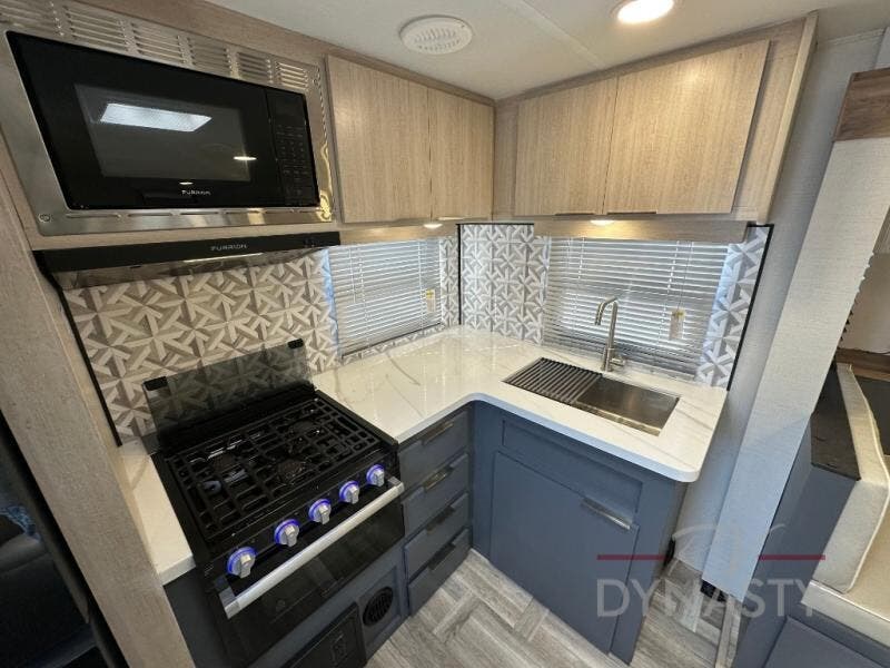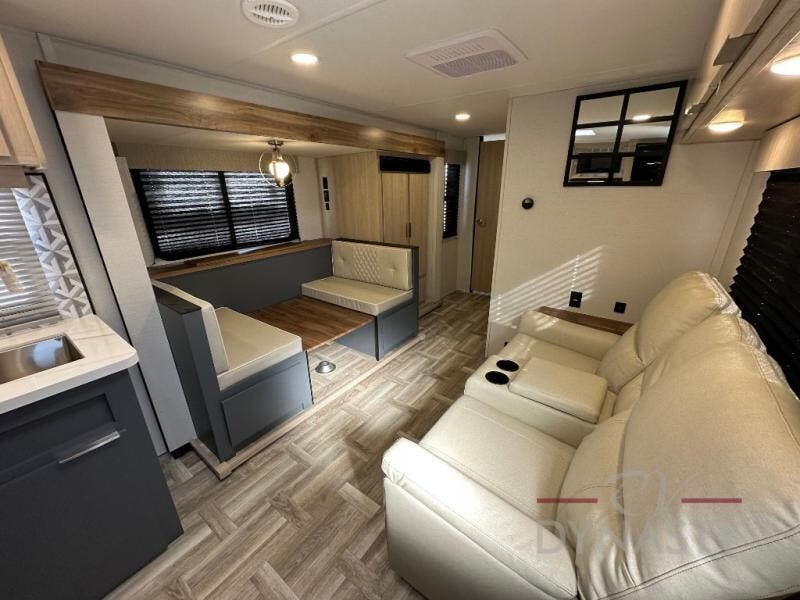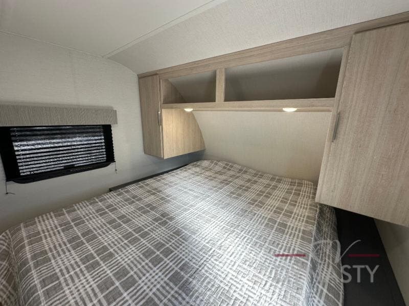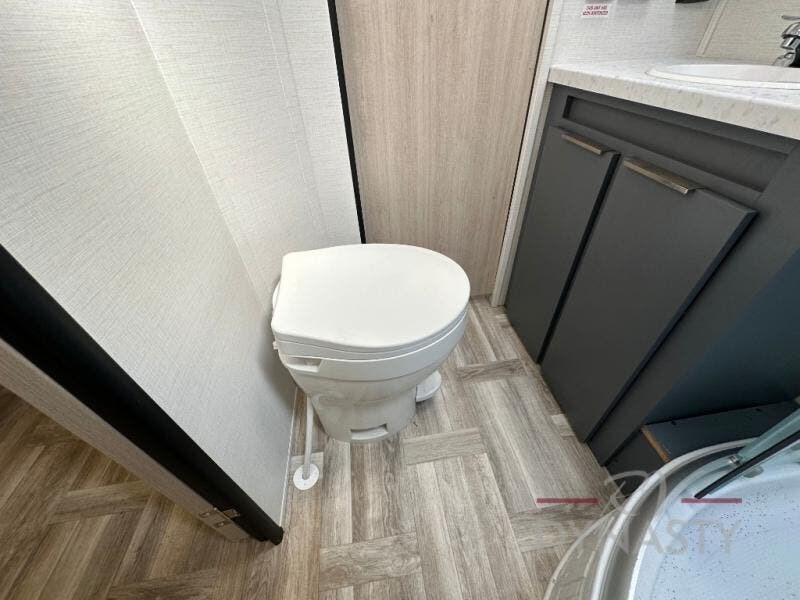 With any Tracer travel trailer by Prime Time RV, you will enjoy a lightweight, easy to tow RV for all your outdoor adventures. Each one is constructed with Eternabond construction that includes laminated aluminum framed walls, floor, and roof for ultra durability. You will be able to extend your camping season thanks to the fully enclosed underbelly, the 30K BTU furnace, and the 15,000 BTU A/C. The Tracer travel trailers are packed with exterior conveniences to make each trip hassle-free, like the power tongue jack and electric stabilizer jacks, the Doggy D-ring pet securement, the universal docking center, and so much more. Head inside to find at-home comforts throughout, including solid wood core cabinetry, LED lighting with motion sensor lights in key locations, and a brushed nickel "J" spout kitchen faucet to name a few.