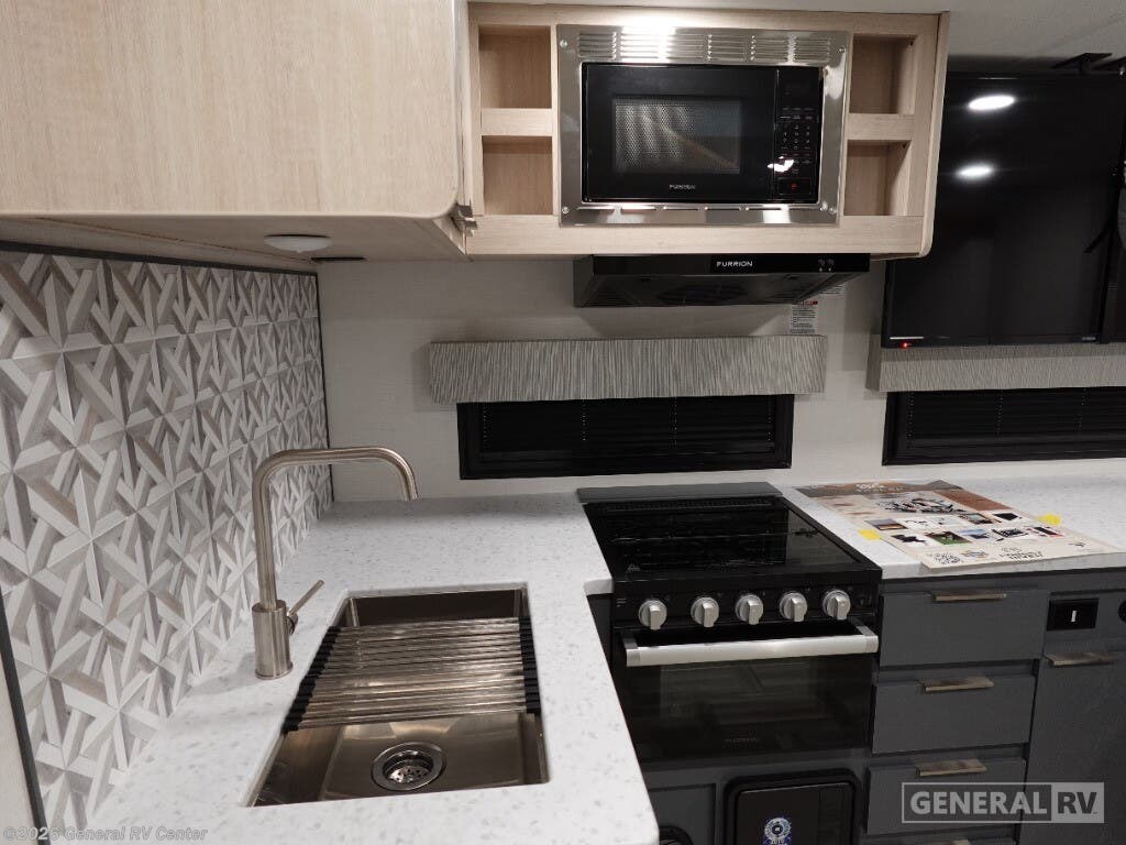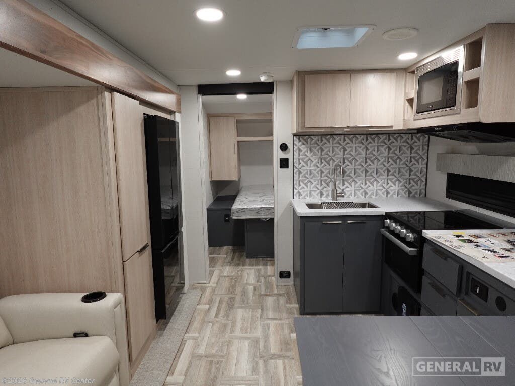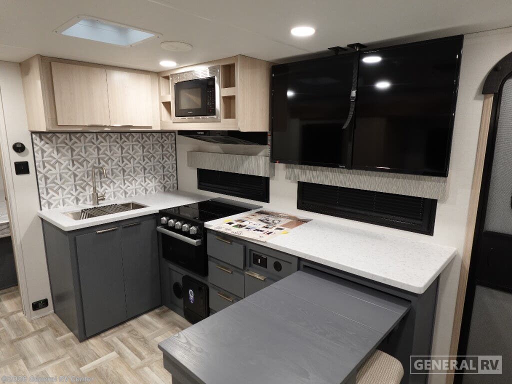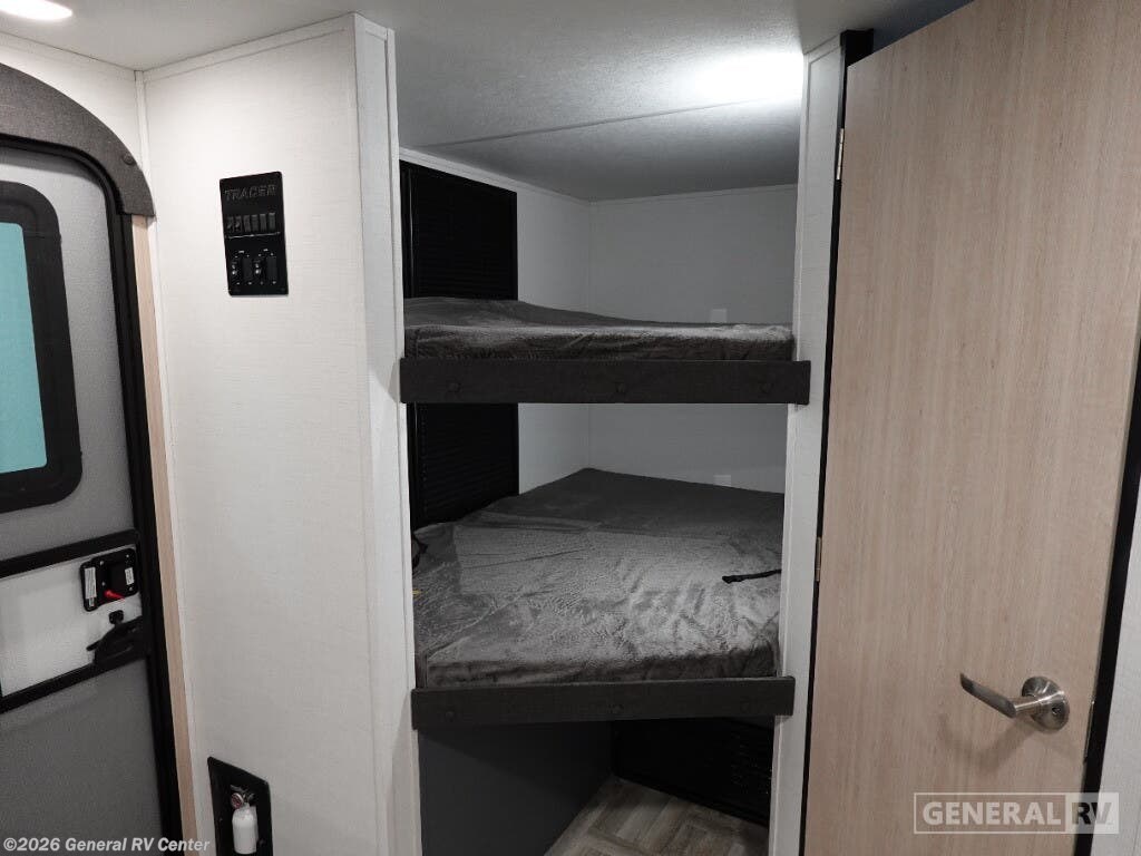 Experience the perfect blend of comfort and adventure with the 2025 Prime Time RV Tracer 250BH. This thoughtfully designed travel trailer is ideal for families or groups, boasting ample sleeping accommodations with a cozy queen bed and double bunk beds. The center kitchen layout is equipped with a full-size electric refrigerator and a three-burner cooktop, making meal preparation a breeze whether you're on a weekend getaway or an extended road trip. Enjoy your culinary delights under the stars with the convenient camp kitchen, perfect for those who love to dine alfresco. The Tracer 250BH ensures relaxation and entertainment with its inviting theater seating and entertainment center, creating a cozy retreat after a day of exploration. The rear bath, complete with a shower curtain, offers privacy and convenience. With a powered retractable awning, you can effortlessly extend your living space outdoors, creating the perfect spot for morning coffees or evening gatherings. For more information or to experience this RV in person, visit your nearest General RV dealership.