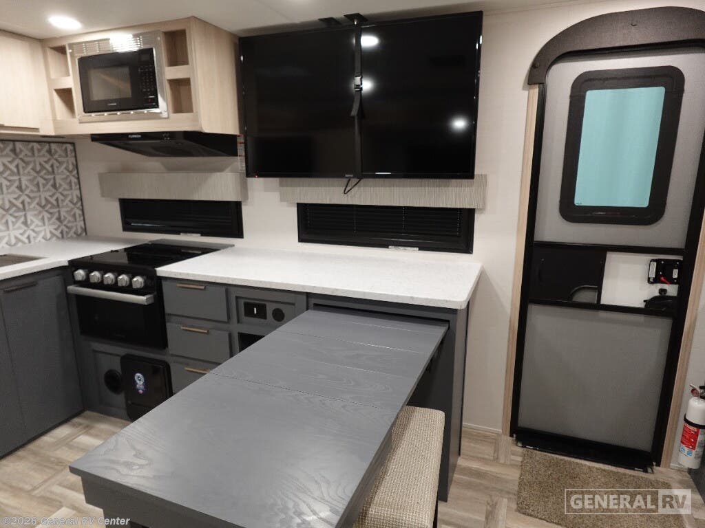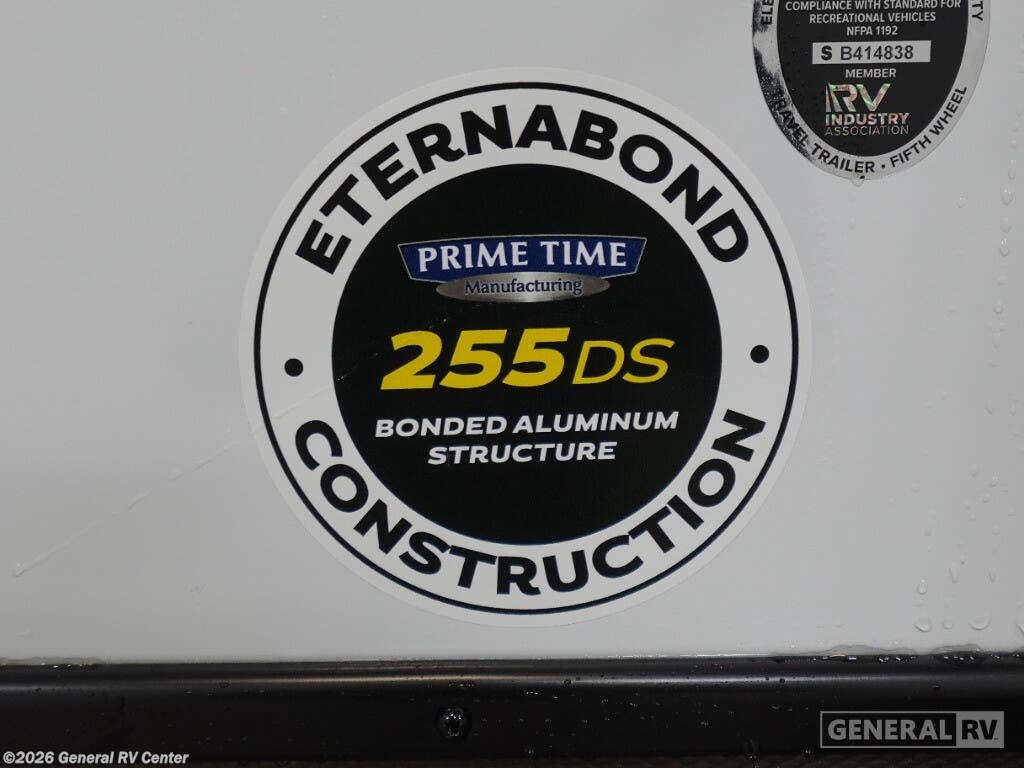The 2025 Prime Time Tracer 255DS is your perfect companion for a cozy adventure. With its sleek design and thoughtful layout, this travel trailer is ideal for couples seeking comfort and convenience on the road. At just under 30 feet in length, it offers a spacious interior without compromising on maneuverability. The center kitchen is equipped with a three-burner cooktop and a full-size electric refrigerator, making meal preparation a breeze. Adjacent to the kitchen, the entertainment center and theater seating create a perfect spot for relaxation after a day of exploration. In the front, the inviting queen bed promises restful nights, surrounded by ample storage options to keep your belongings organized. The rear of the trailer features a well-appointed bathroom with a shower and a washer/dryer prep area, ensuring you have everything you need for extended trips. The powered retractable awning extends your living space to the outdoors, perfect for enjoying the fresh air and scenic views. Built with quality and comfort in mind, the Tracer 255DS is your ticket to unforgettable journeys. For more details, visit your nearest General RV dealership.