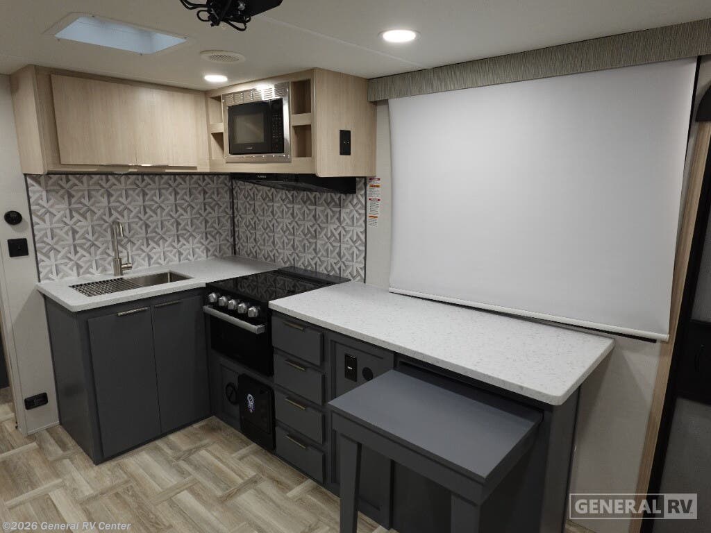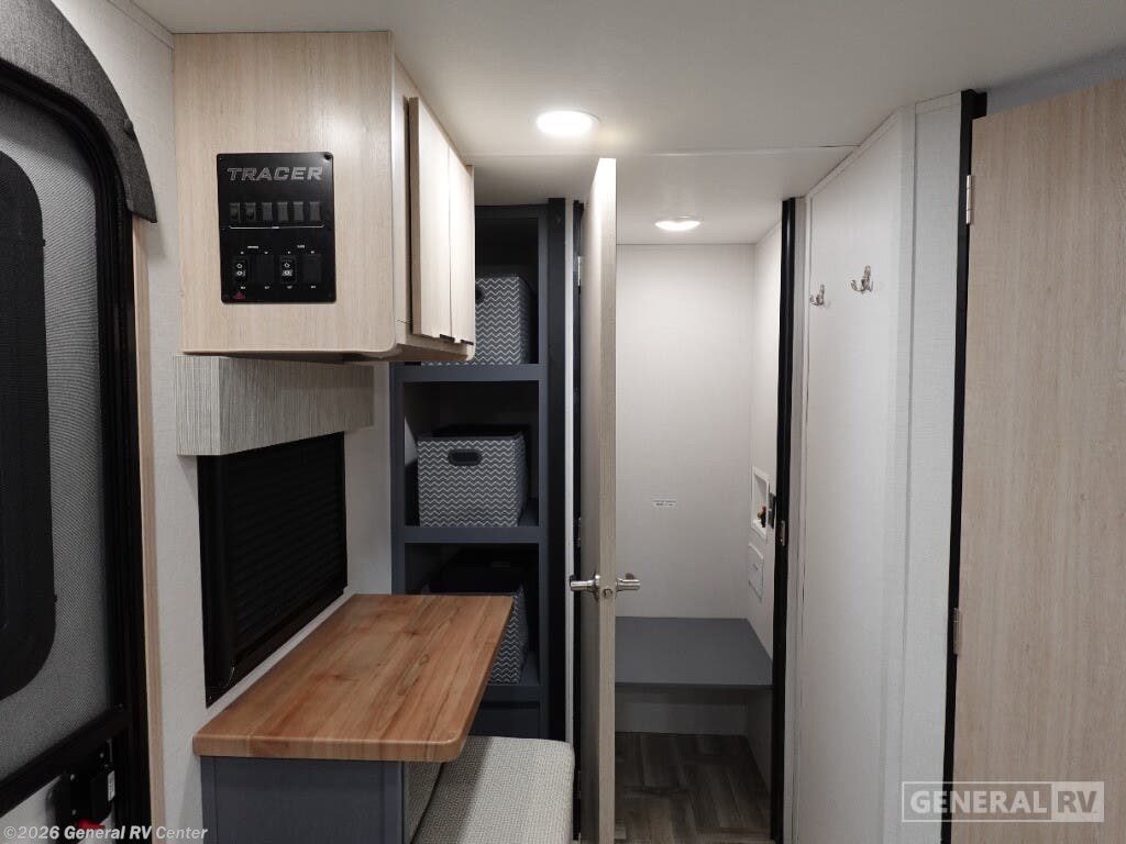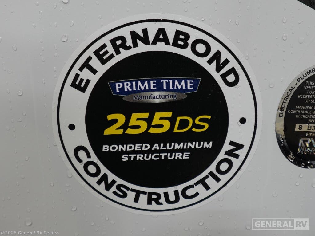 The 2025 Prime Time Tracer 255DS is your perfect companion for a cozy adventure. With its sleek design and thoughtful layout, this travel trailer is ideal for couples seeking comfort and convenience on the road. At just under 30 feet in length, it offers a spacious interior without compromising on maneuverability. The center kitchen is equipped with a three-burner cooktop and a full-size electric refrigerator, making meal preparation a breeze. Adjacent to the kitchen, the entertainment center and theater seating create a perfect spot for relaxation after a day of exploration. In the front, the inviting queen bed promises restful nights, surrounded by ample storage options to keep your belongings organized. The rear of the trailer features a well-appointed bathroom with a shower and a washer/dryer prep area, ensuring you have everything you need for extended trips. The powered retractable awning extends your living space to the outdoors, perfect for enjoying the fresh air and scenic views. Built with quality and comfort in mind, the Tracer 255DS is your ticket to unforgettable journeys. For more details, visit your nearest General RV dealership.