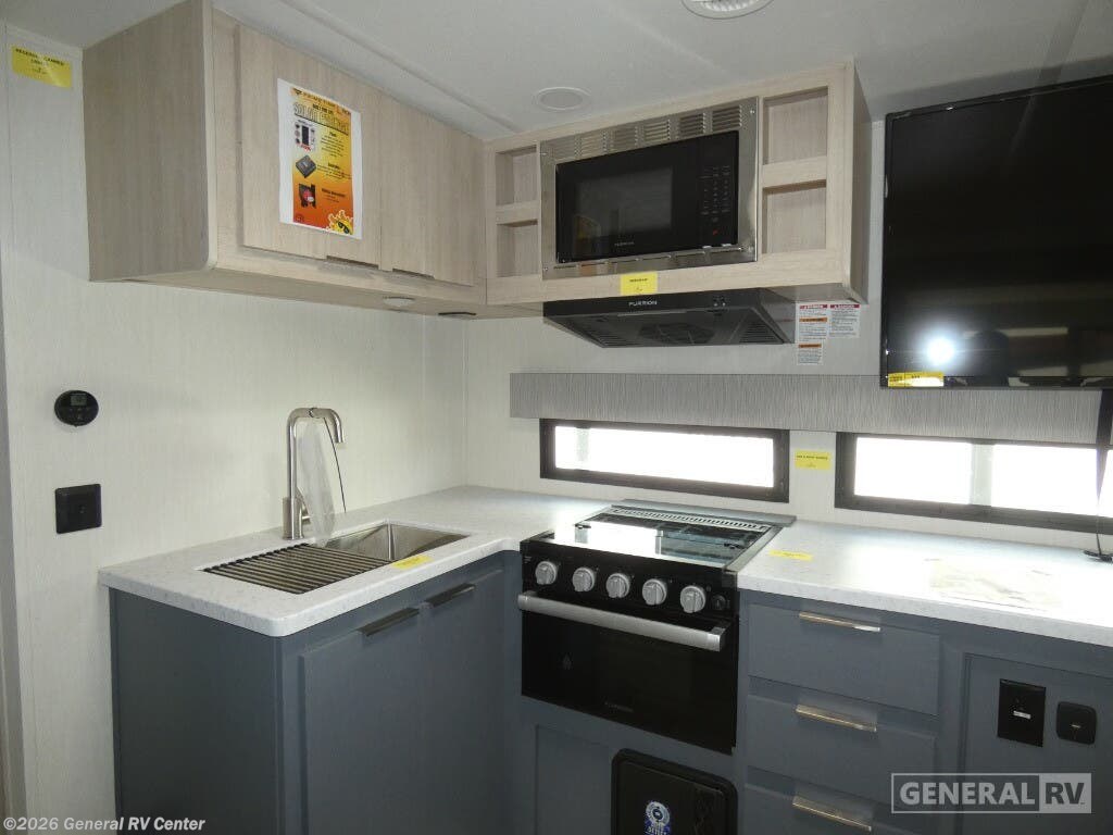 The 2025 Prime Time Tracer 255DS is your perfect companion for a cozy adventure. With its sleek design and thoughtful layout, this travel trailer is ideal for couples seeking comfort and convenience on the road. At just under 30 feet in length, it offers a spacious interior without compromising on maneuverability. The center kitchen is equipped with a three-burner cooktop and a full-size electric refrigerator, making meal preparation a breeze. Adjacent to the kitchen, the entertainment center and theater seating create a perfect spot for relaxation after a day of exploration. In the front, the inviting queen bed promises restful nights, surrounded by ample storage options to keep your belongings organized. The rear of the trailer features a well-appointed bathroom with a shower and a washer/dryer prep area, ensuring you have everything you need for extended trips. The powered retractable awning extends your living space to the outdoors, perfect for enjoying the fresh air and scenic views. Built with quality and comfort in mind, the Tracer 255DS is your ticket to unforgettable journeys. For more details, visit your nearest General RV dealership.