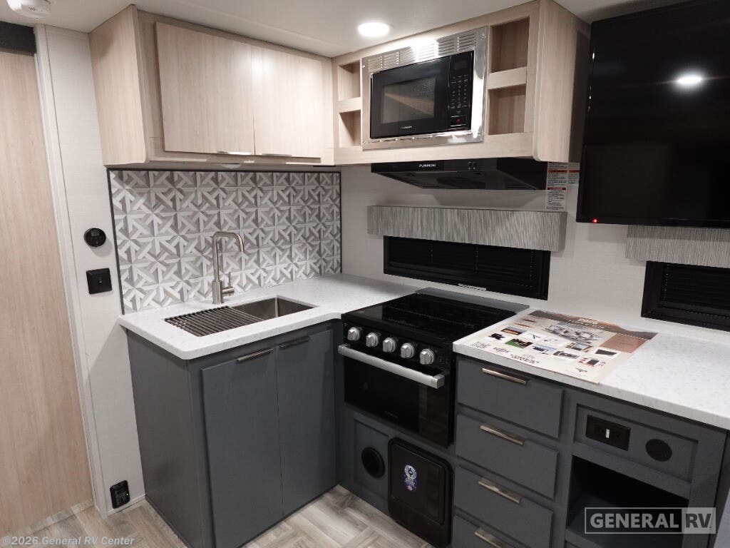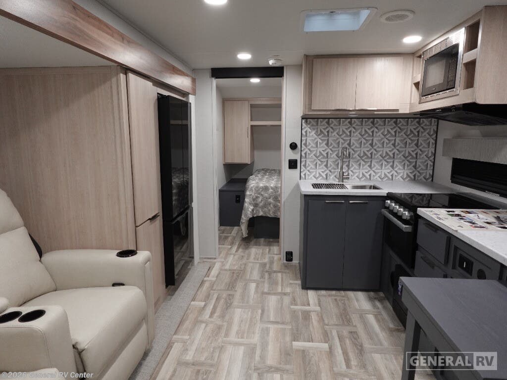 The 2025 Prime Time Tracer 255DS is your perfect companion for a cozy adventure. With its sleek design and thoughtful layout, this travel trailer is ideal for couples seeking comfort and convenience on the road. At just under 30 feet in length, it offers a spacious interior without compromising on maneuverability. The center kitchen is equipped with a three-burner cooktop and a full-size electric refrigerator, making meal preparation a breeze. Adjacent to the kitchen, the entertainment center and theater seating create a perfect spot for relaxation after a day of exploration. In the front, the inviting queen bed promises restful nights, surrounded by ample storage options to keep your belongings organized. The rear of the trailer features a well-appointed bathroom with a shower and a washer/dryer prep area, ensuring you have everything you need for extended trips. The powered retractable awning extends your living space to the outdoors, perfect for enjoying the fresh air and scenic views. Built with quality and comfort in mind, the Tracer 255DS is your ticket to unforgettable journeys. For more details, visit your nearest General RV dealership.