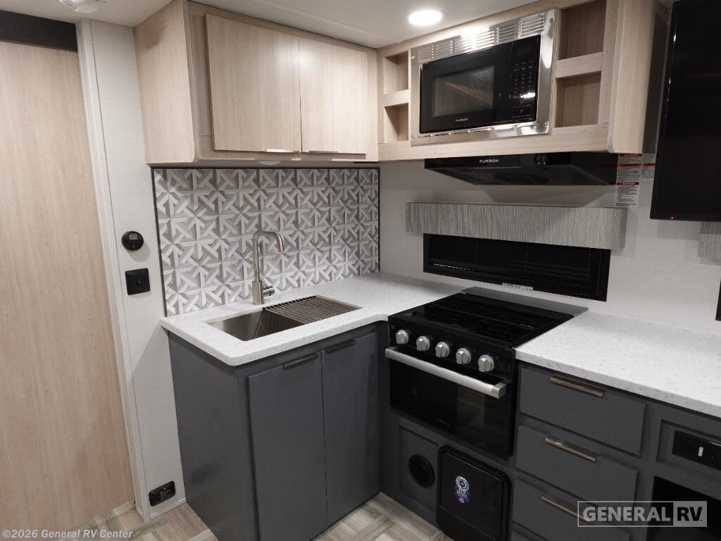 The 2025 Prime Time Tracer 255DS is your perfect companion for a cozy adventure. With its sleek design and thoughtful layout, this travel trailer is ideal for couples seeking comfort and convenience on the road. At just under 30 feet in length, it offers a spacious interior without compromising on maneuverability. The center kitchen is equipped with a three-burner cooktop and a full-size electric refrigerator, making meal preparation a breeze. Adjacent to the kitchen, the entertainment center and theater seating create a perfect spot for relaxation after a day of exploration. In the front, the inviting queen bed promises restful nights, surrounded by ample storage options to keep your belongings organized. The rear of the trailer features a well-appointed bathroom with a shower and a washer/dryer prep area, ensuring you have everything you need for extended trips. The powered retractable awning extends your living space to the outdoors, perfect for enjoying the fresh air and scenic views. Built with quality and comfort in mind, the Tracer 255DS is your ticket to unforgettable journeys. For more details, visit your nearest General RV dealership.