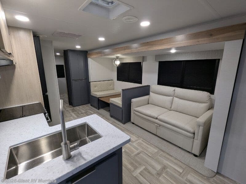 - Central Living Area: U-shaped dinette and theater seating slide for RV adventure