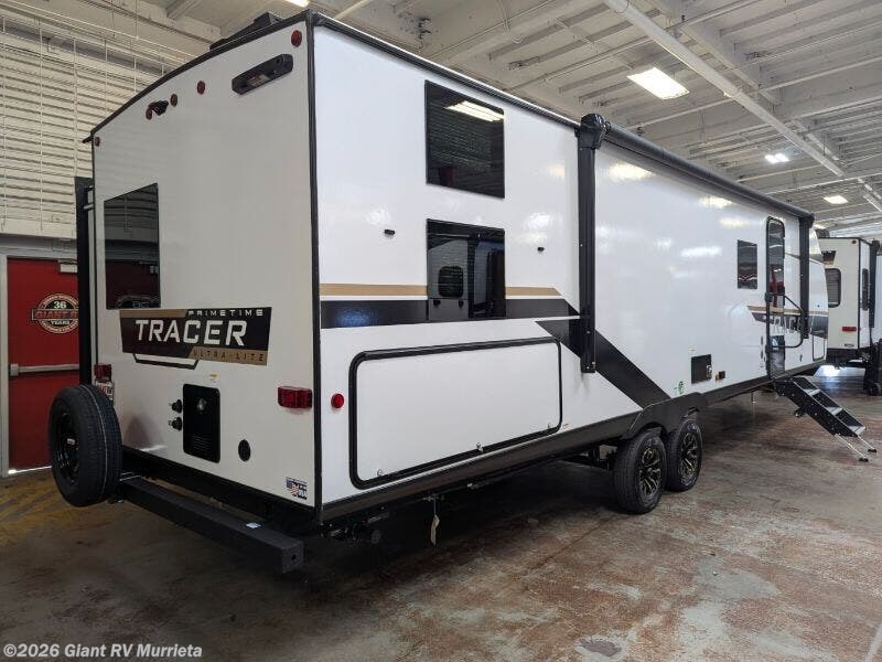 Venture into family-friendly fun with the 2025 Prime Time Tracer 308BH Travel Trailer at Giant RV in California, a 34’11” lightweight RV sleeping up to 8, featuring a rear bunkhouse with double bunks, a U-shaped dinette for gatherings, theater seating for relaxation, and a full bath with dual entries. With Eternabond construction and two slide-outs, it’s built for durability. Conquer the road with this Tracer for epic California RV camping adventures!