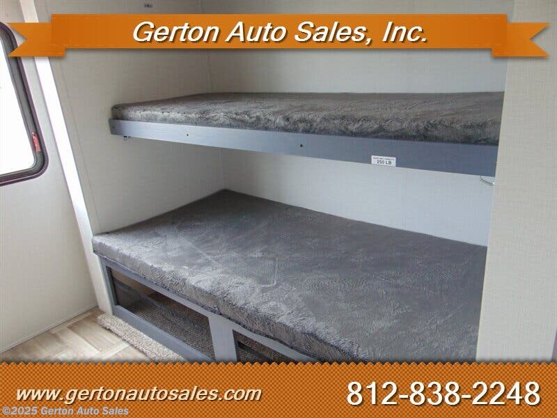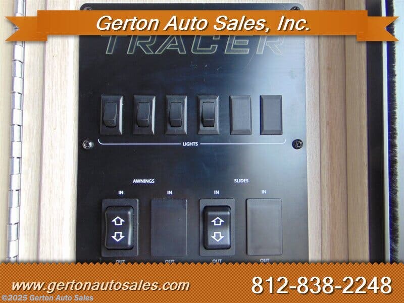 The Tracer 32DSB offers one of the most versatile floorplans we have ever seen. This coach features a secluded front master suite. The mid-ship galley and entertainment center makes spending time with friends a breeze. The coolest feature in our opinion is the rear bunk room that offers two streetside bunks with a third curbside bunk that flips up to reveal another TV and a work desk making this an excellent floorplan for those with large families and those who work on the road. UVW is 7726 pounds. GVW is 9745 pounds. MSRP $59290.00. See all photos of this and other fine RVs and vehicles at or call us to set a time to see it in person. Tax, title, and $225.00 documentation fee extra.