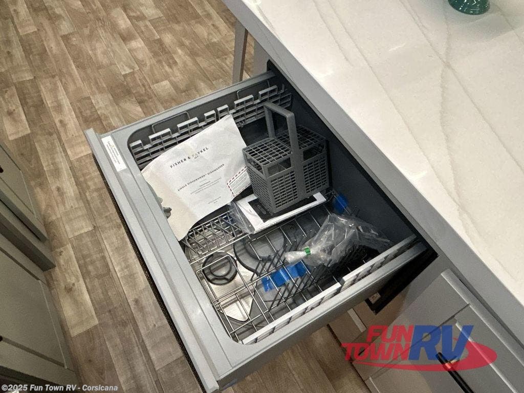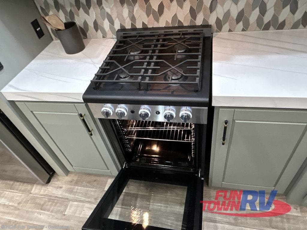 You're going to love time spent in this triple slide out destination trailer! A front L-shaped sectional sofa provides your crew with a space to relax in the evenings, and the fireplace here with a 65" TV is sure to make it feel like home. A large kitchen island with stools gives you a more counter space and a place to dine at together. You will also enjoy the sliding door here for more natural light. The full bath includes a spacious 48" shower plus dual bath sinks so you both can get ready for bed at the same time. You'll feel right at home in the rear bedroom with its king bed slide out, dual nightstands, two wardrobes and a dresser for maximum storage space!