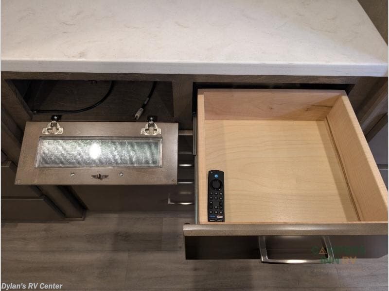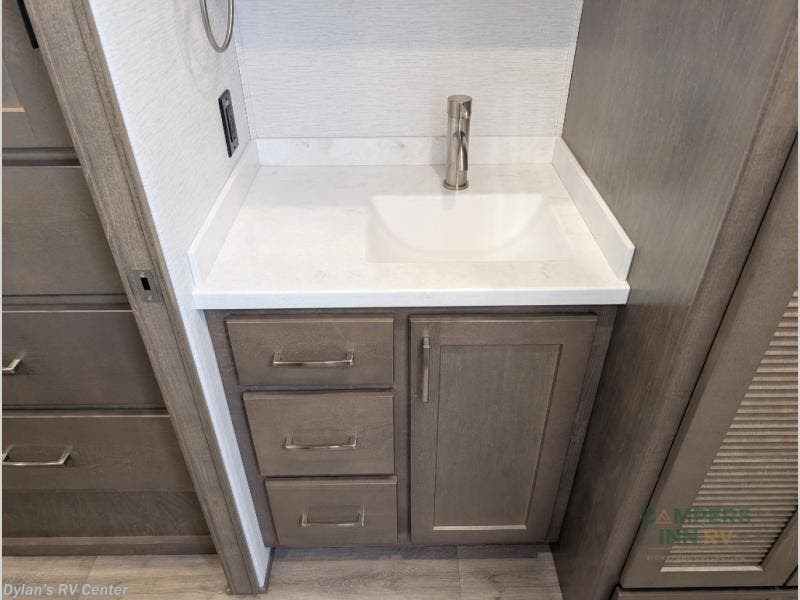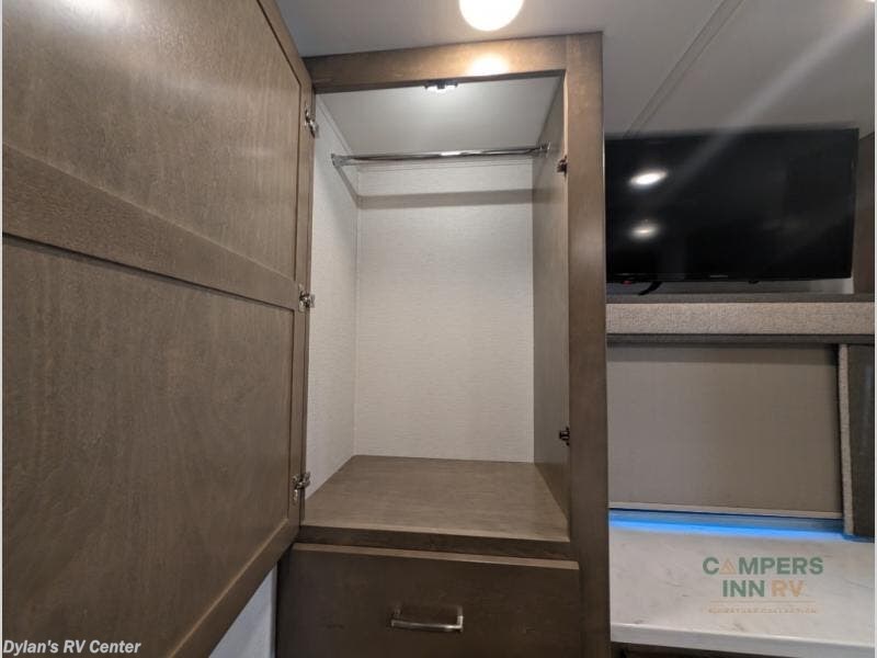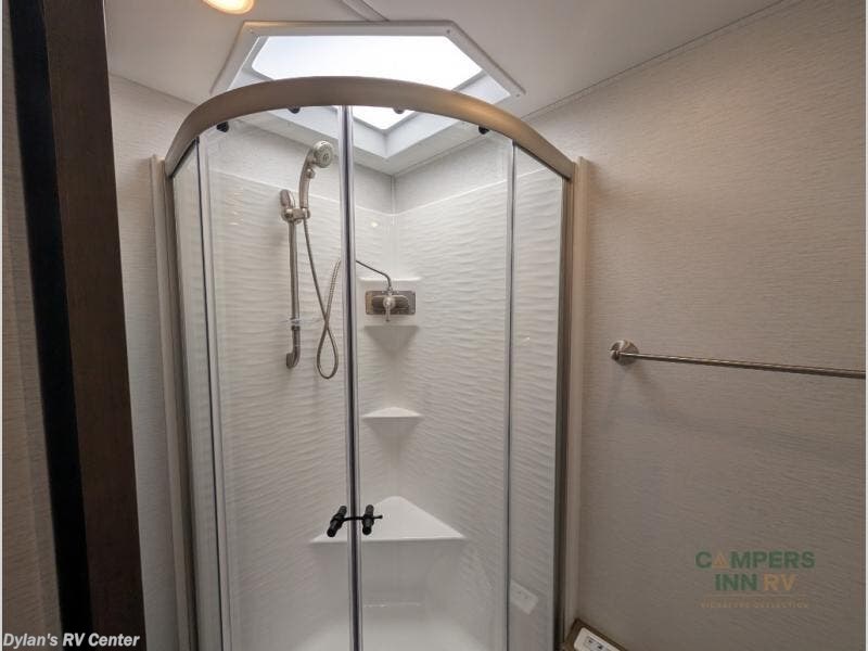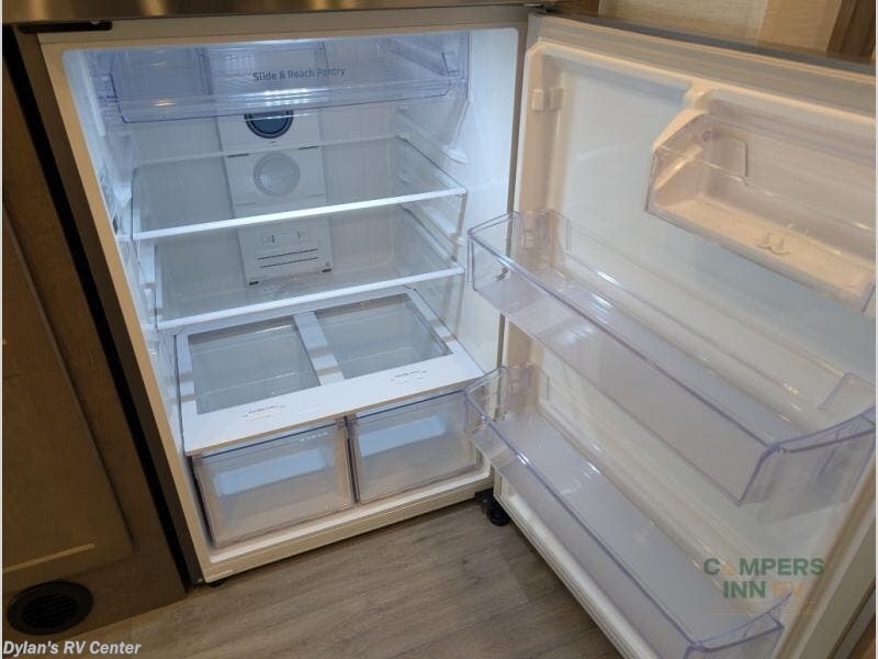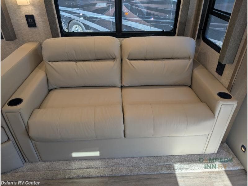 Spacious Full-Wall Slide expands the living area with a Dream Dinette, theater seating, and a king-size bed for the ultimate in relaxation.