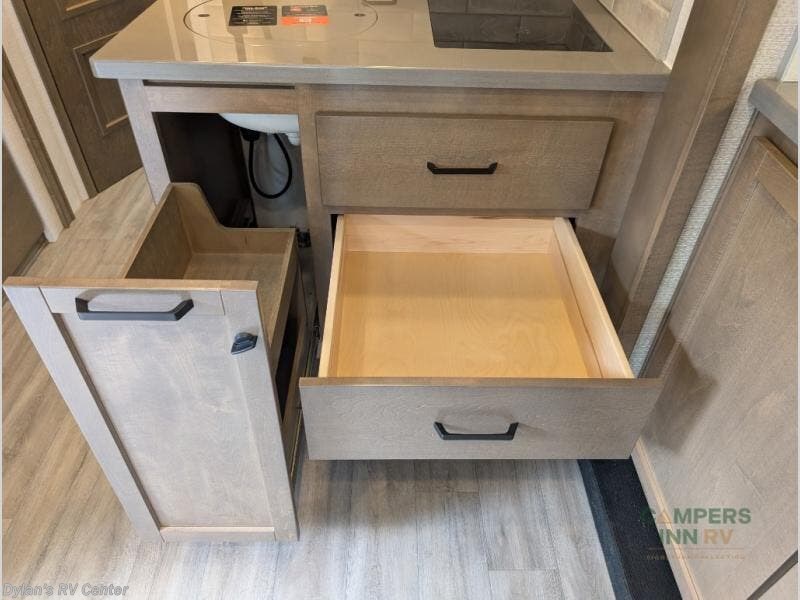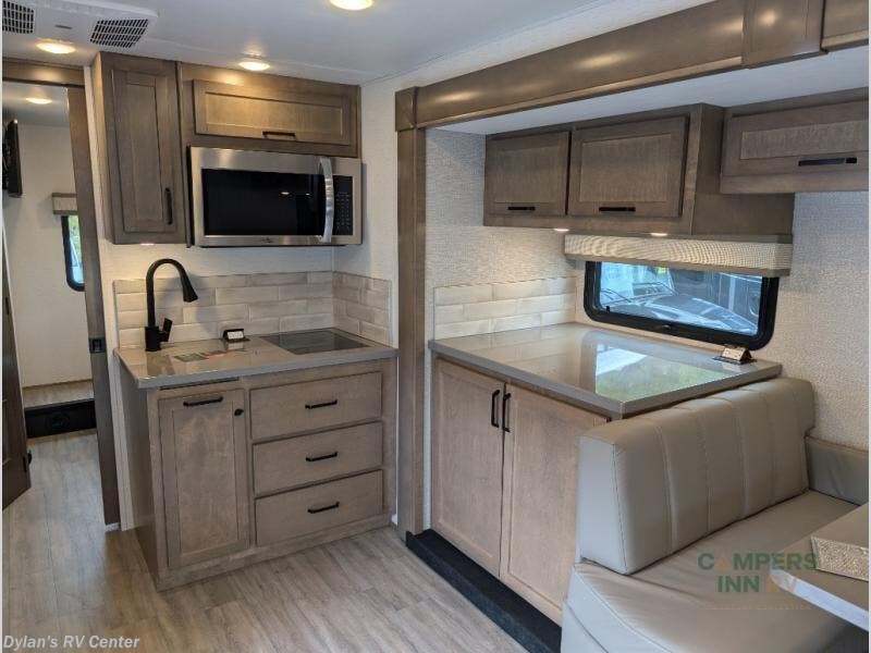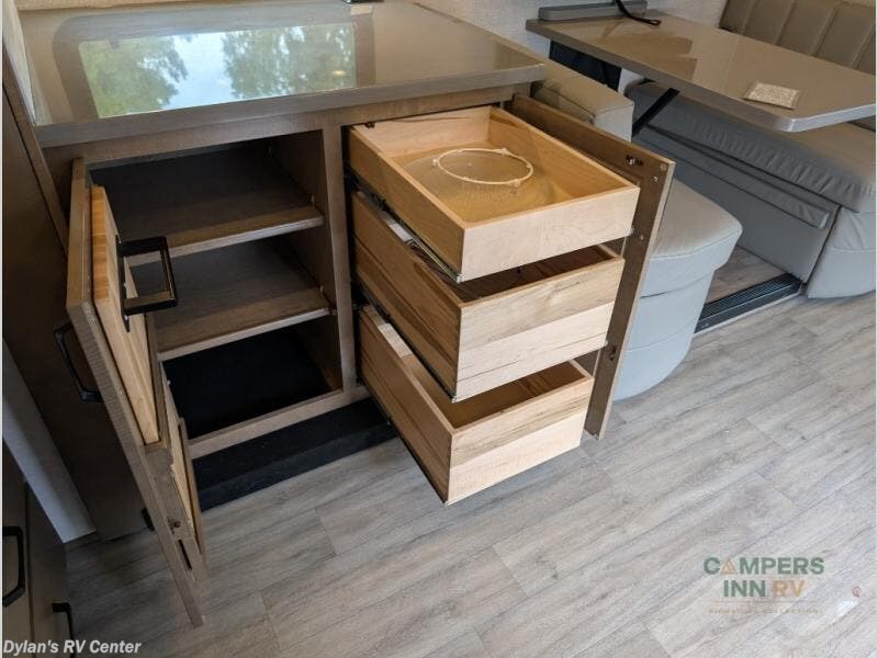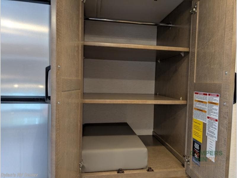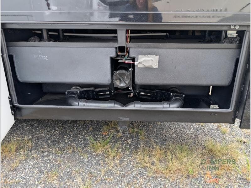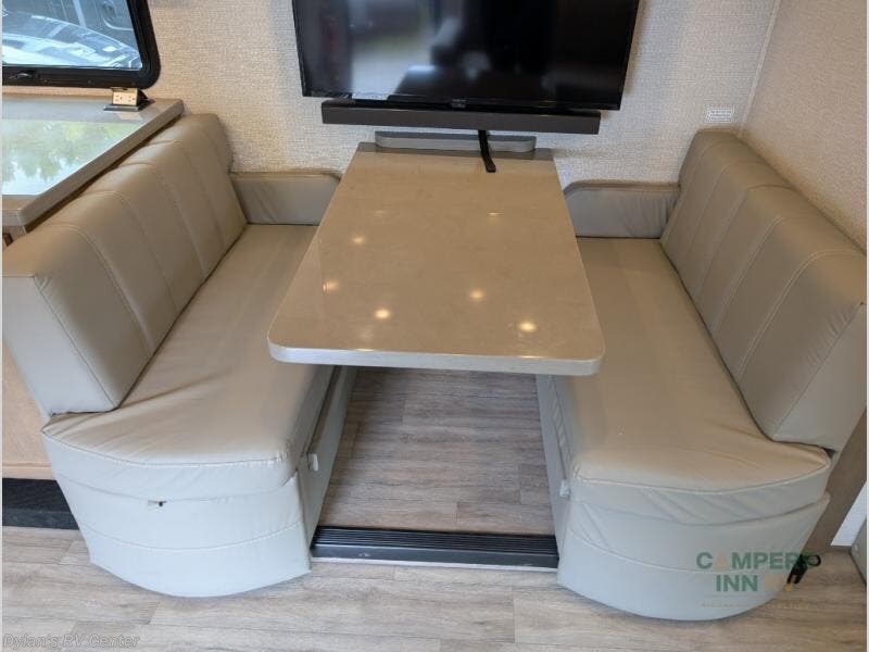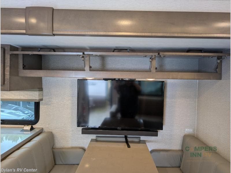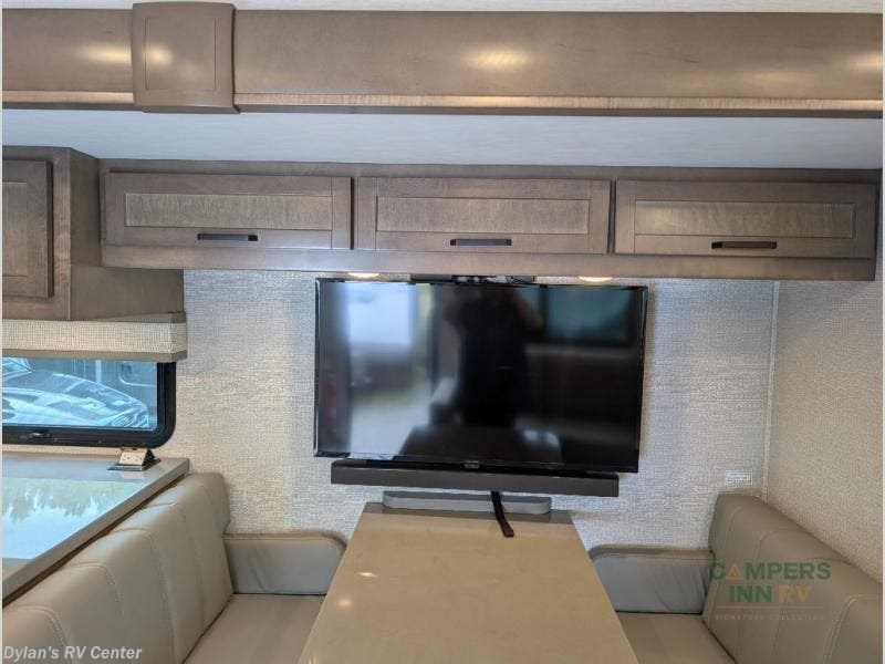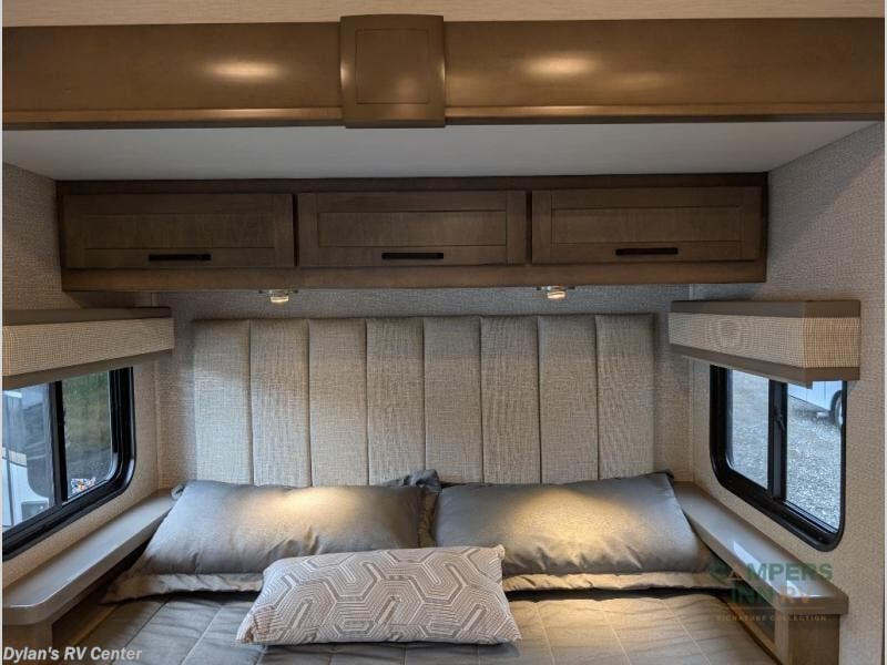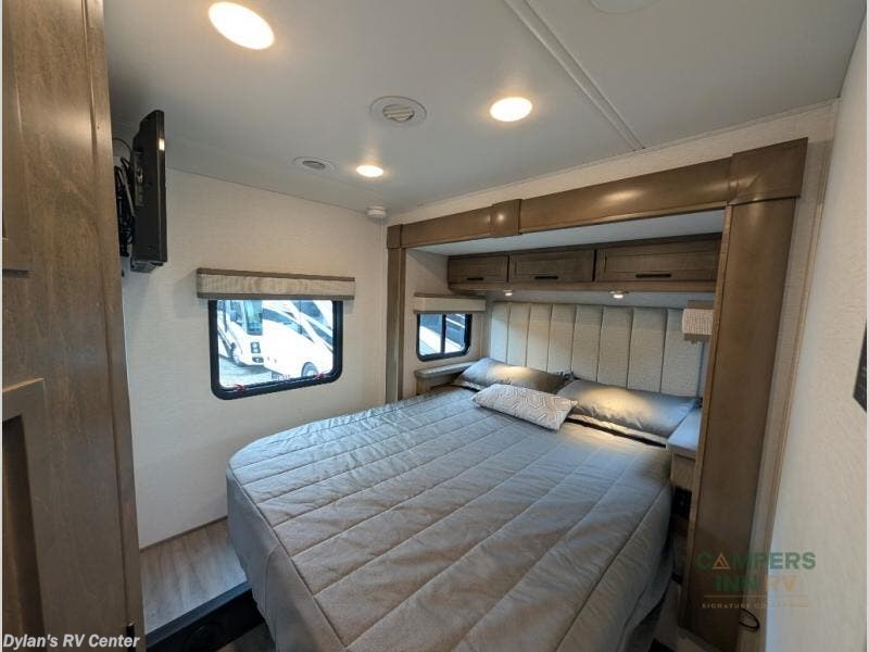 Experience ultimate luxury on wheels in this motor home bedroom. A 65 x 75 queen bed comfort with 32” LED TV entertainment and a full bathroom convenience with ample storage. The kitchen is fitted with spacious closet organization, 10 cu. stainless steel refrigerator, microwave, two-burner cooktop, overhead cabinets, and a pantry storage ideal for storing different stuff. In the living room, you will find a 42” LED TV, overhead cabinets, sofa sleeper flexibility, dinette dining, and a cab-over bed for extra sleep. This unit is also equipped with outdoor entertainment, perfect for socializing and outdoor fun, allowing you to experience extended trips with family during vacations, ideal for those who are adventure-seekers. Unforgettable adventures await! Experience the freedom of luxury motorhome living.