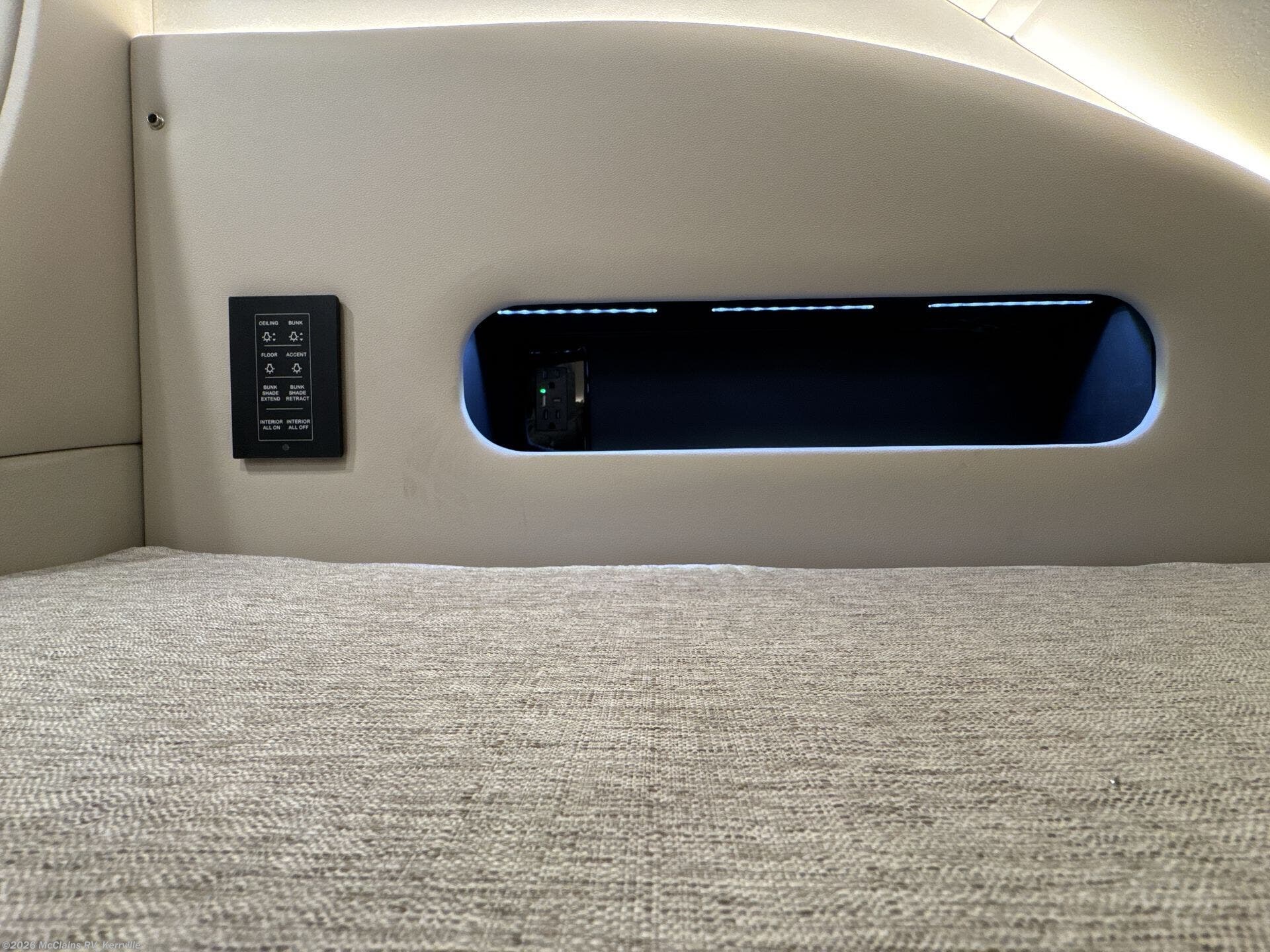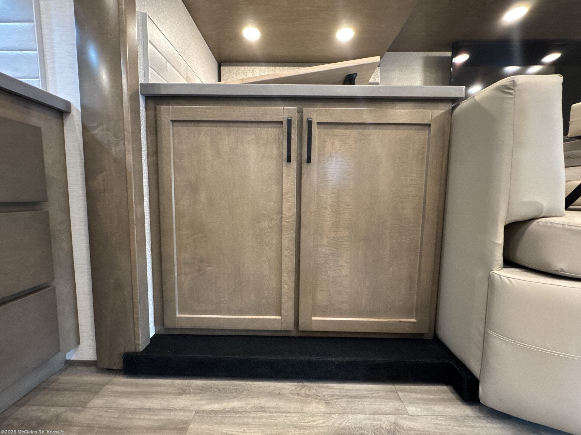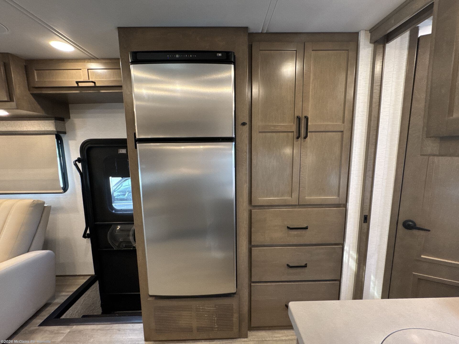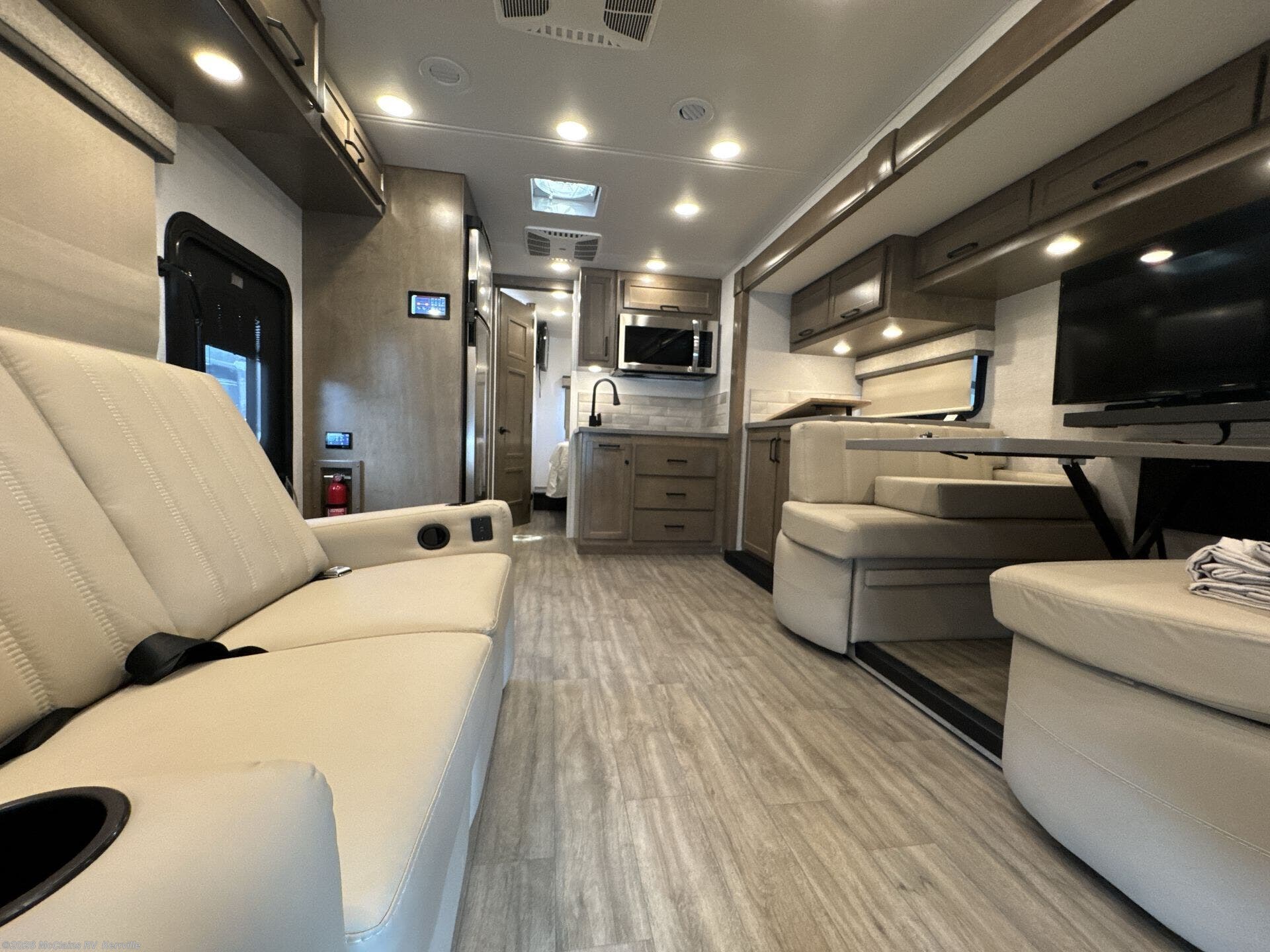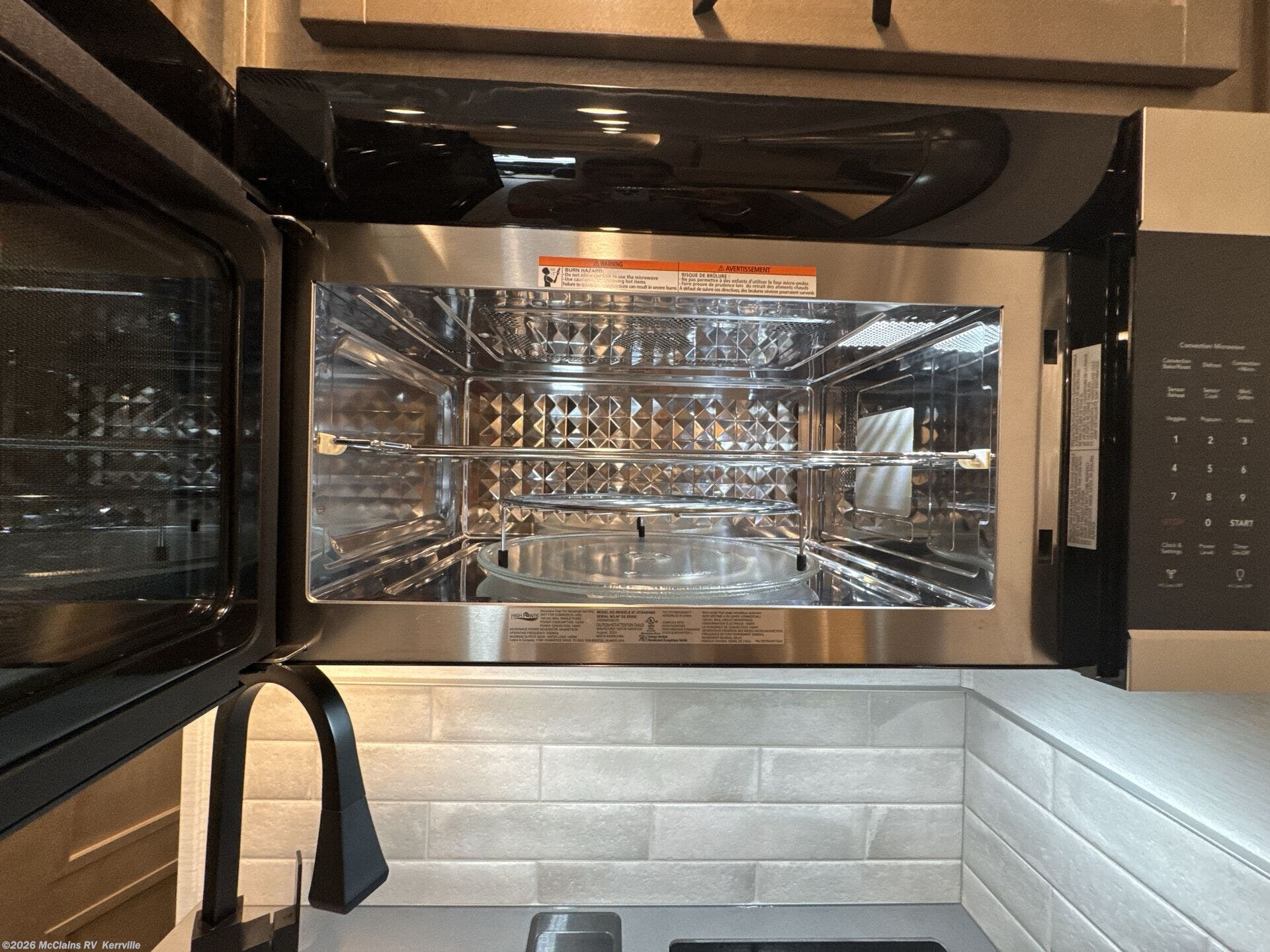 Enter the cabin of the Veracruz 32VDS and experience the meticulous craftsmanship and residential-inspired finishes within a generous dual-slide floorplan, creating a private sanctuary. Upscale features include solid-surface countertops, handcrafted hardwood cabinetry, and premium tile backsplash accents. The fully equipped kitchen boasts stainless steel appliances, a residential refrigerator, a convection microwave, and a deep stainless sink with a high-rise faucet, making meal prep effortless. Comfort is provided by plush theater seating, a spacious dinette, and an integrated entertainment center with a large LED TV and premium sound system. Oversized panoramic windows offer breathtaking views and natural light, complemented by day/night roller shades for privacy. The private bedroom features a walk-around queen bed and abundant storage, while the spa-inspired bathroom includes a glass-enclosed shower and elegant fixtures. Every detail is thoughtfully designed to deliver an atmosphere that feels far beyond a typical RV — more like a refined home that travels with you.