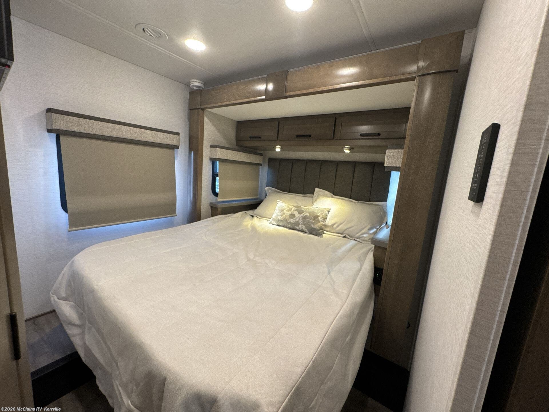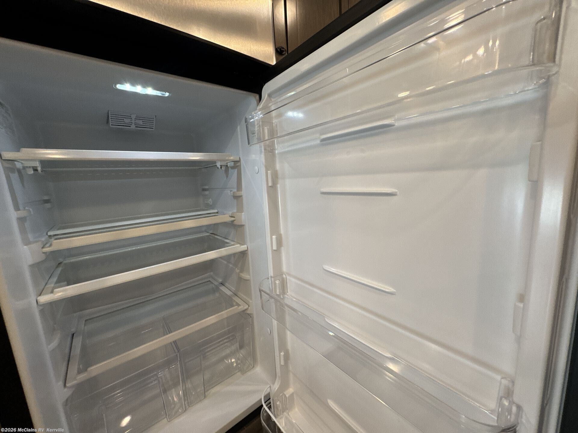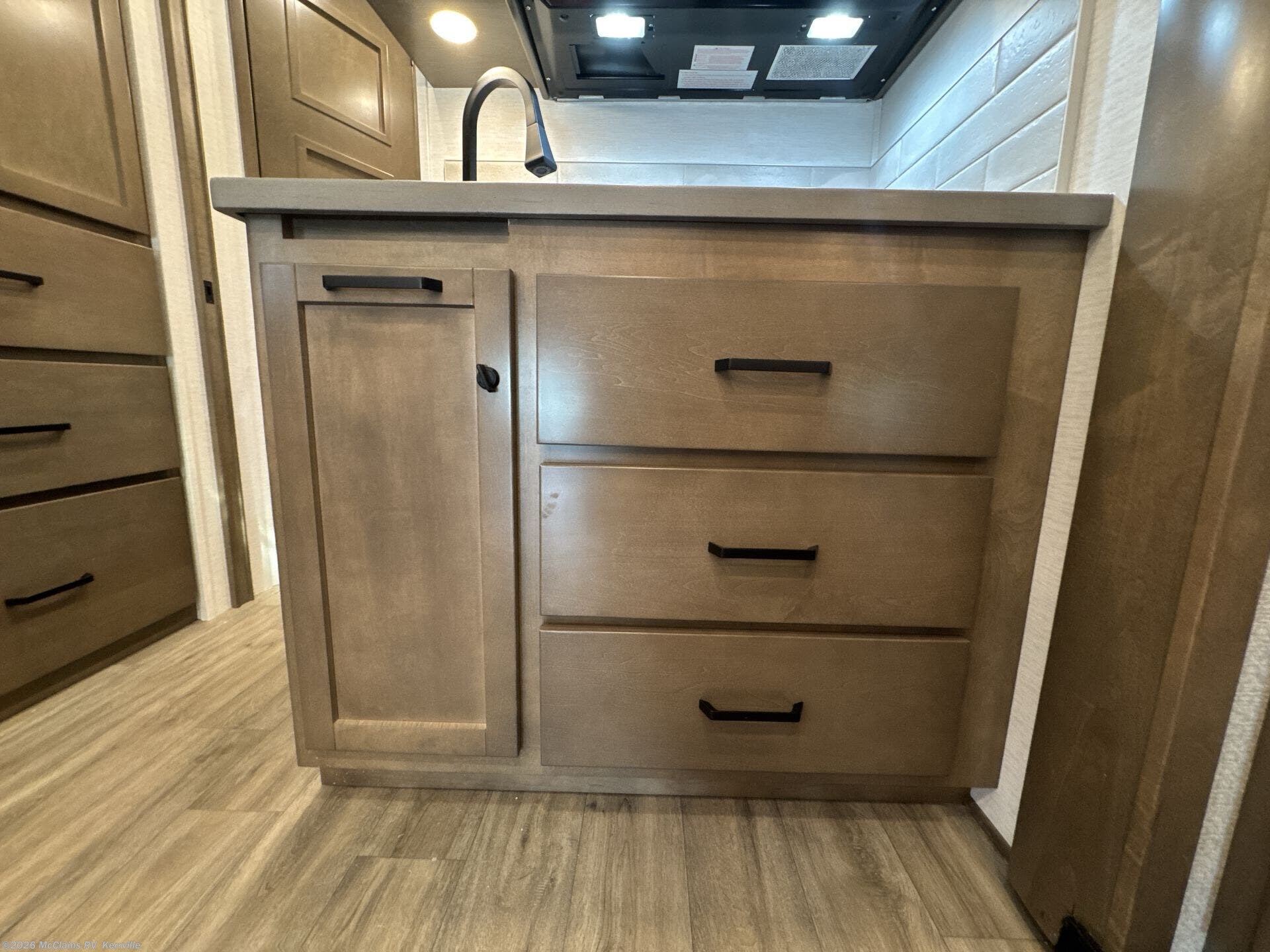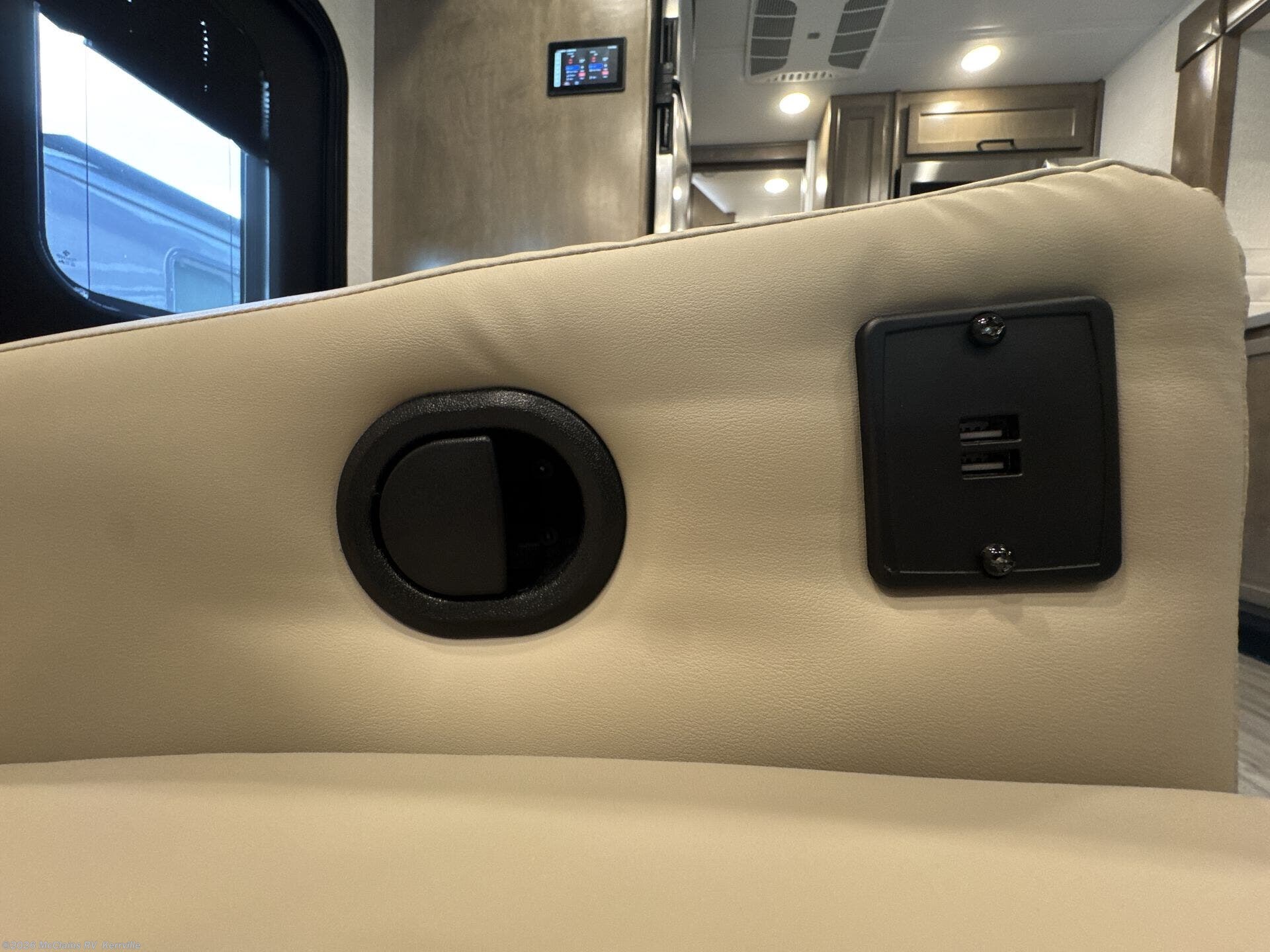 Enter the cabin of the Veracruz 32VDS and experience the meticulous craftsmanship and residential-inspired finishes within a generous dual-slide floorplan, creating a private sanctuary. Upscale features include solid-surface countertops, handcrafted hardwood cabinetry, and premium tile backsplash accents. The fully equipped kitchen boasts stainless steel appliances, a residential refrigerator, a convection microwave, and a deep stainless sink with a high-rise faucet, making meal prep effortless. Comfort is provided by plush theater seating, a spacious dinette, and an integrated entertainment center with a large LED TV and premium sound system. Oversized panoramic windows offer breathtaking views and natural light, complemented by day/night roller shades for privacy. The private bedroom features a walk-around queen bed and abundant storage, while the spa-inspired bathroom includes a glass-enclosed shower and elegant fixtures. Every detail is thoughtfully designed to deliver an atmosphere that feels far beyond a typical RV — more like a refined home that travels with you.
