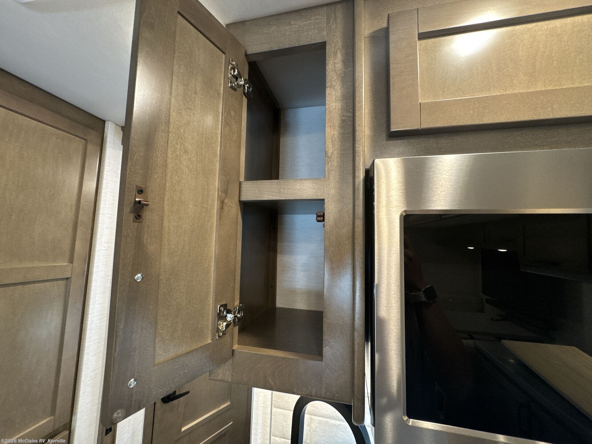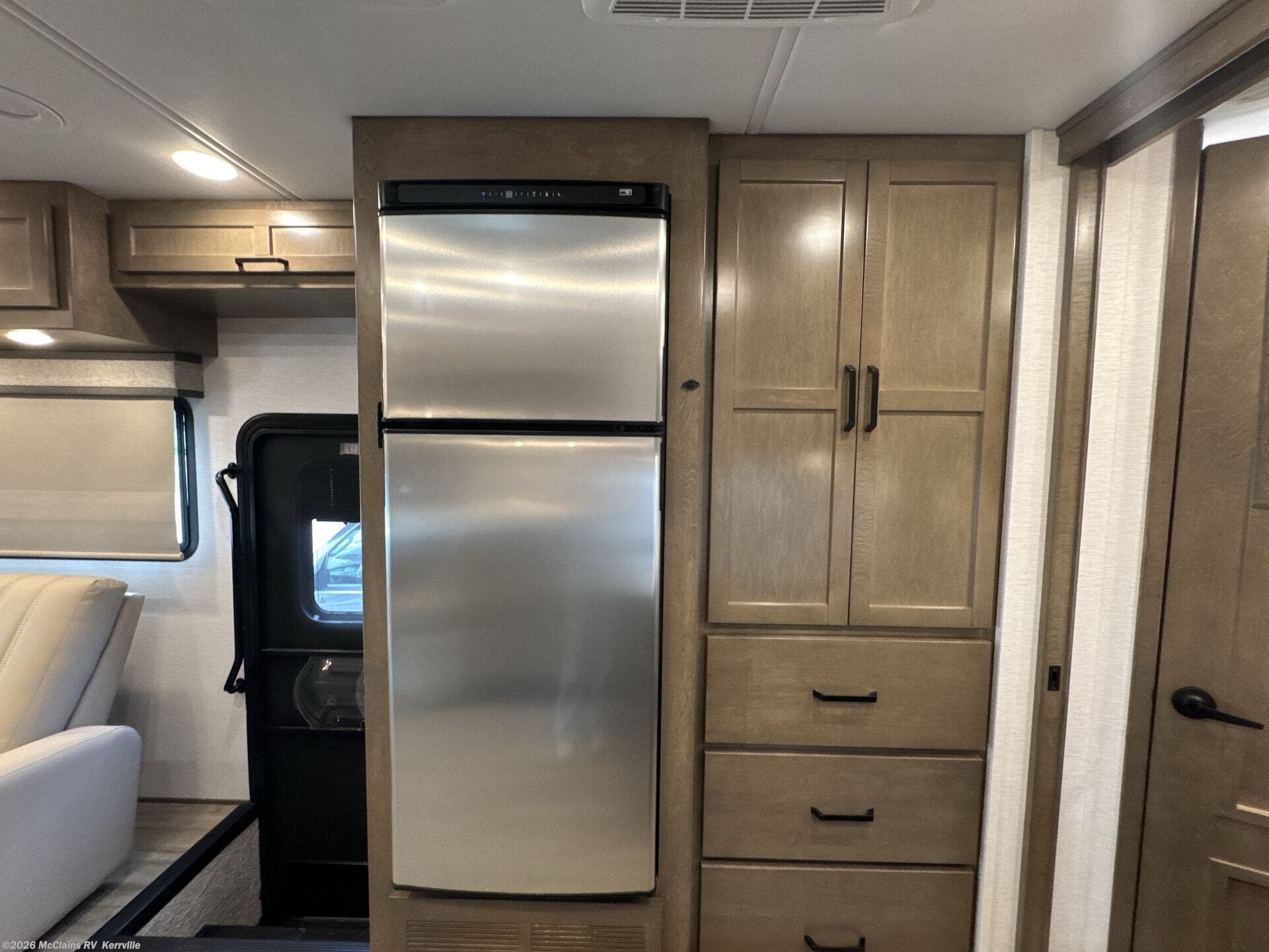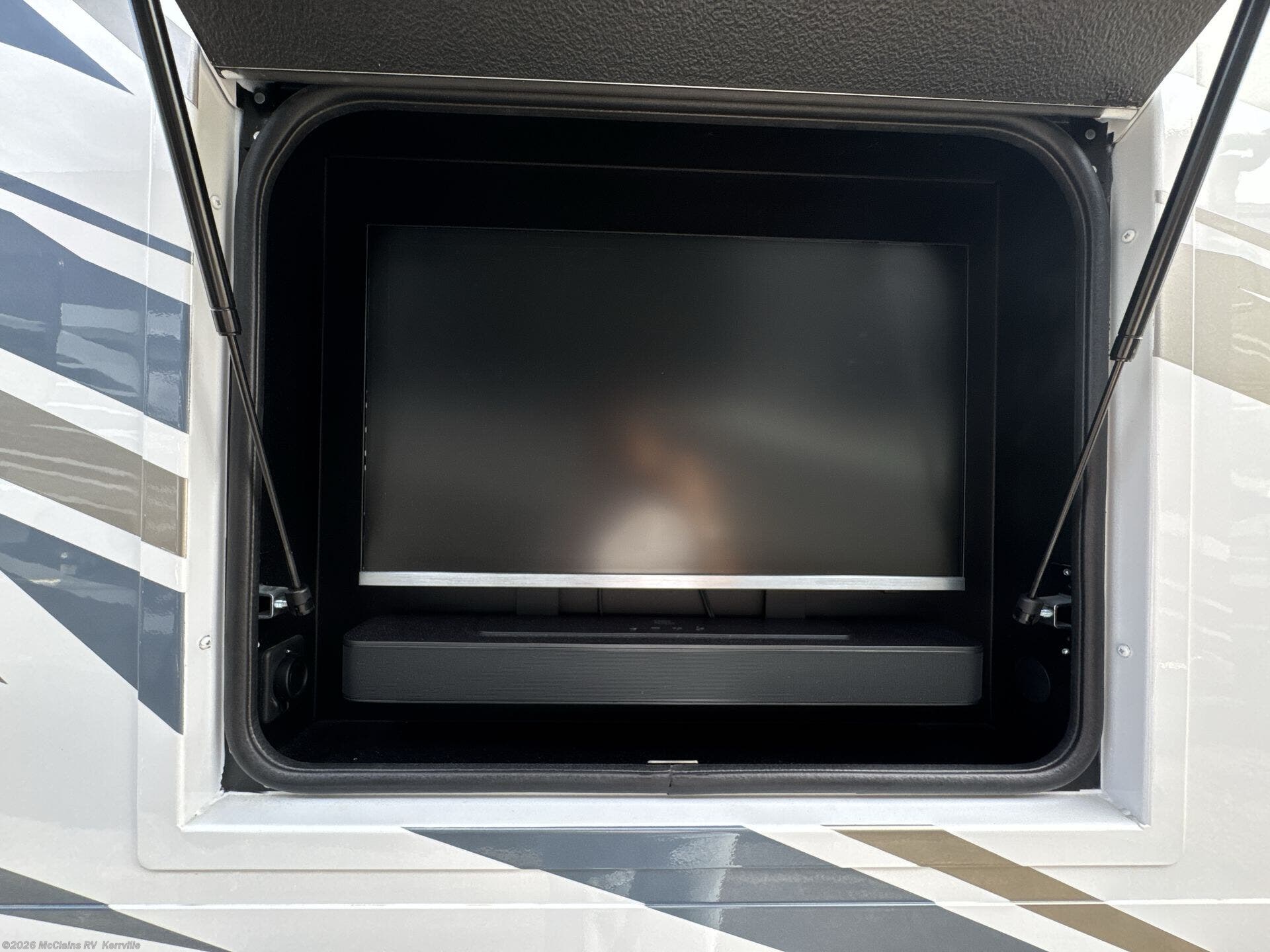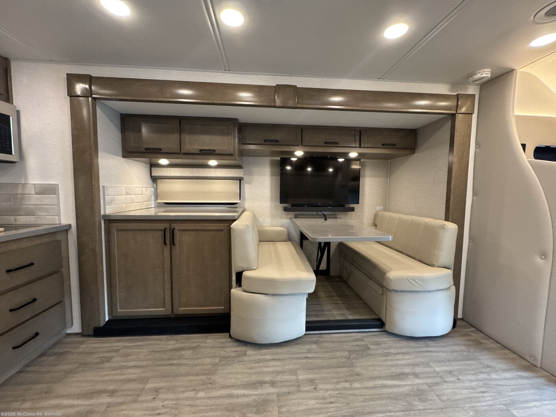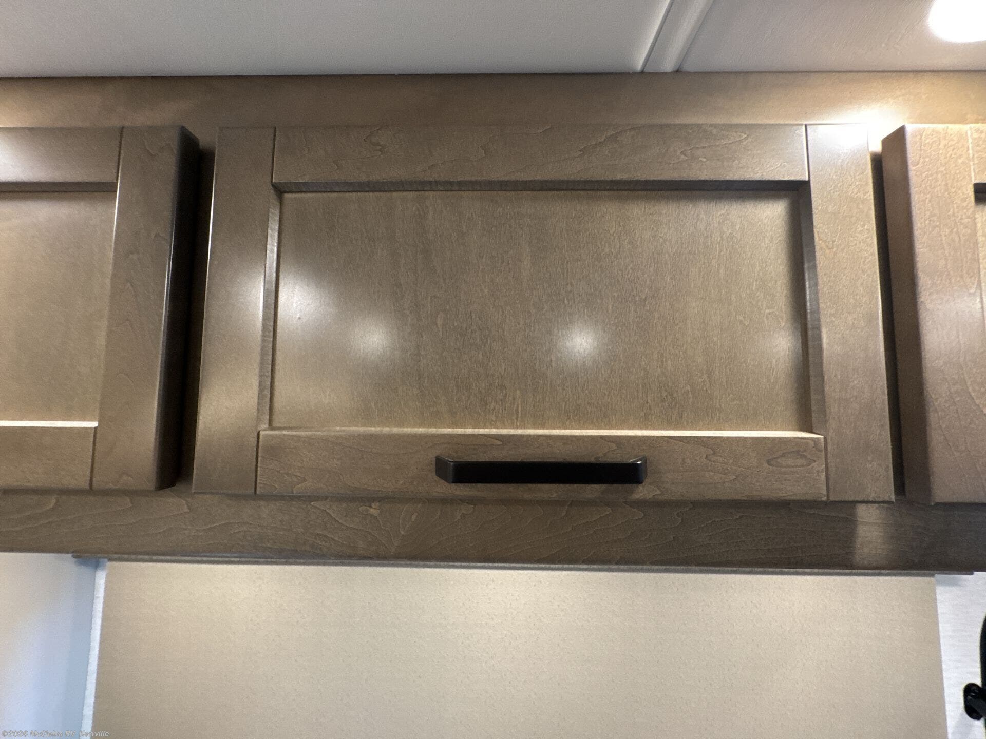 Enter the cabin of the Veracruz 32VDS and experience the meticulous craftsmanship and residential-inspired finishes within a generous dual-slide floorplan, creating a private sanctuary. Upscale features include solid-surface countertops, handcrafted hardwood cabinetry, and premium tile backsplash accents. The fully equipped kitchen boasts stainless steel appliances, a residential refrigerator, a convection microwave, and a deep stainless sink with a high-rise faucet, making meal prep effortless. Comfort is provided by plush theater seating, a spacious dinette, and an integrated entertainment center with a large LED TV and premium sound system. Oversized panoramic windows offer breathtaking views and natural light, complemented by day/night roller shades for privacy. The private bedroom features a walk-around queen bed and abundant storage, while the spa-inspired bathroom includes a glass-enclosed shower and elegant fixtures. Every detail is thoughtfully designed to deliver an atmosphere that feels far beyond a typical RV — more like a refined home that travels with you.