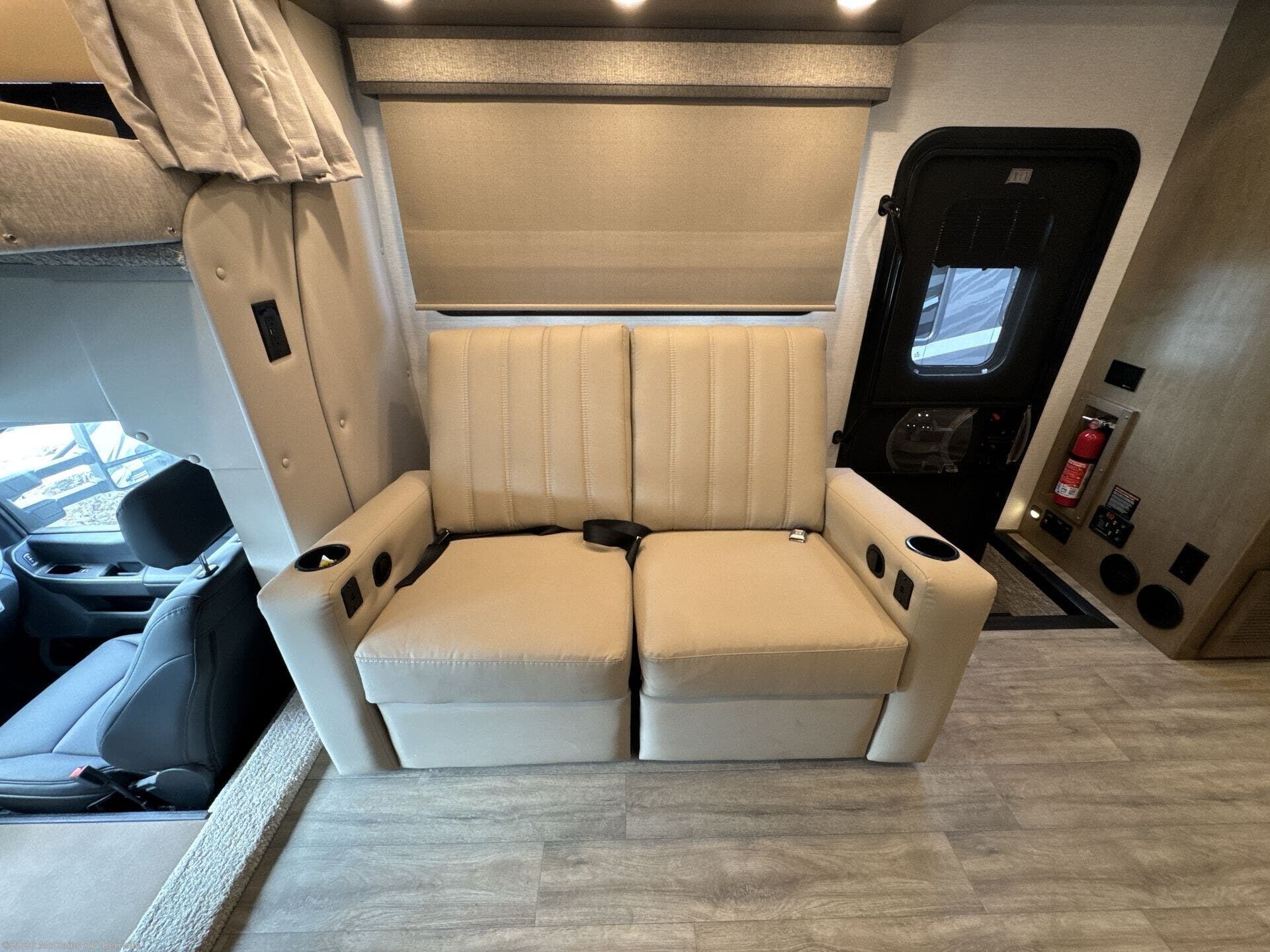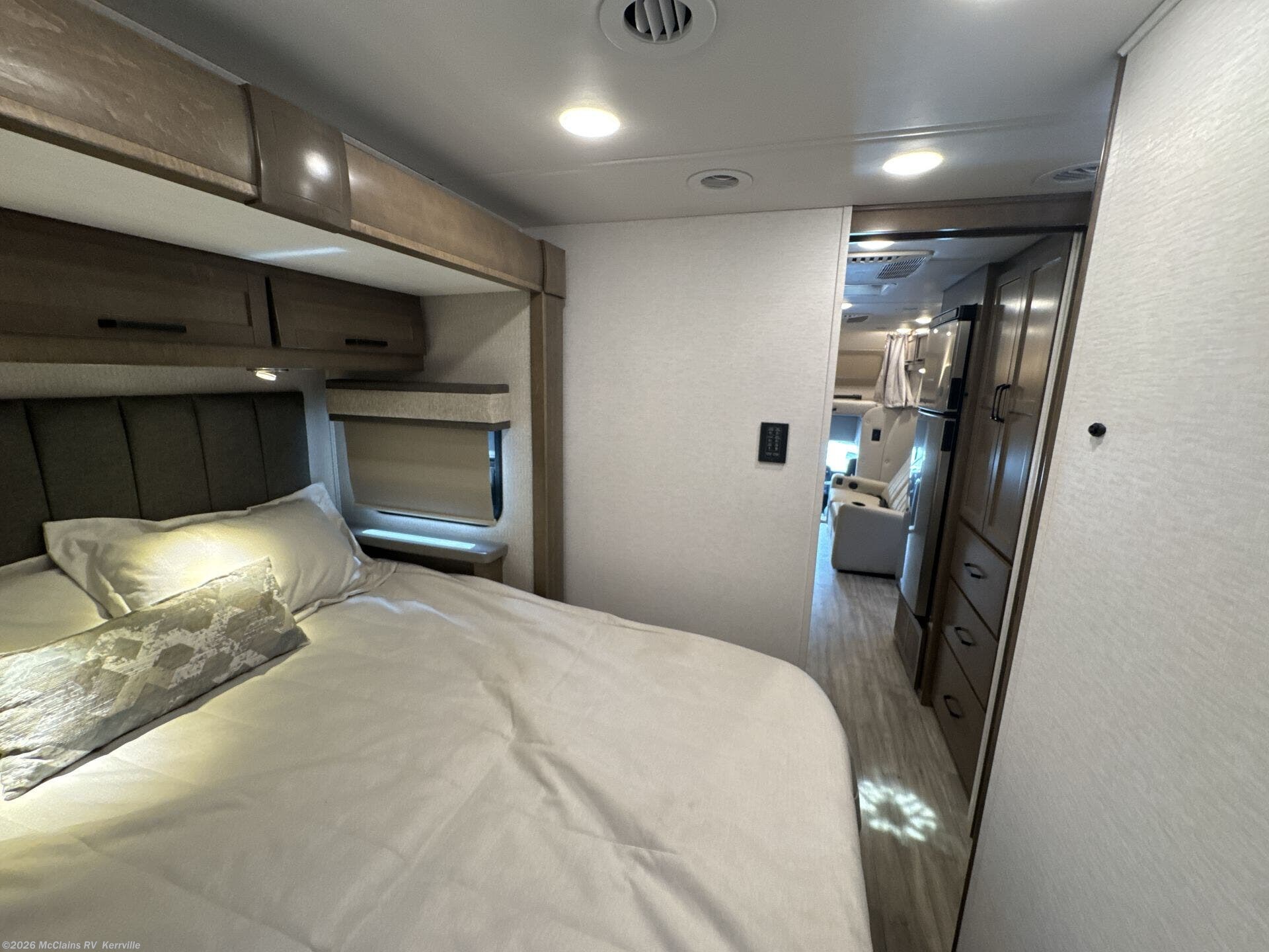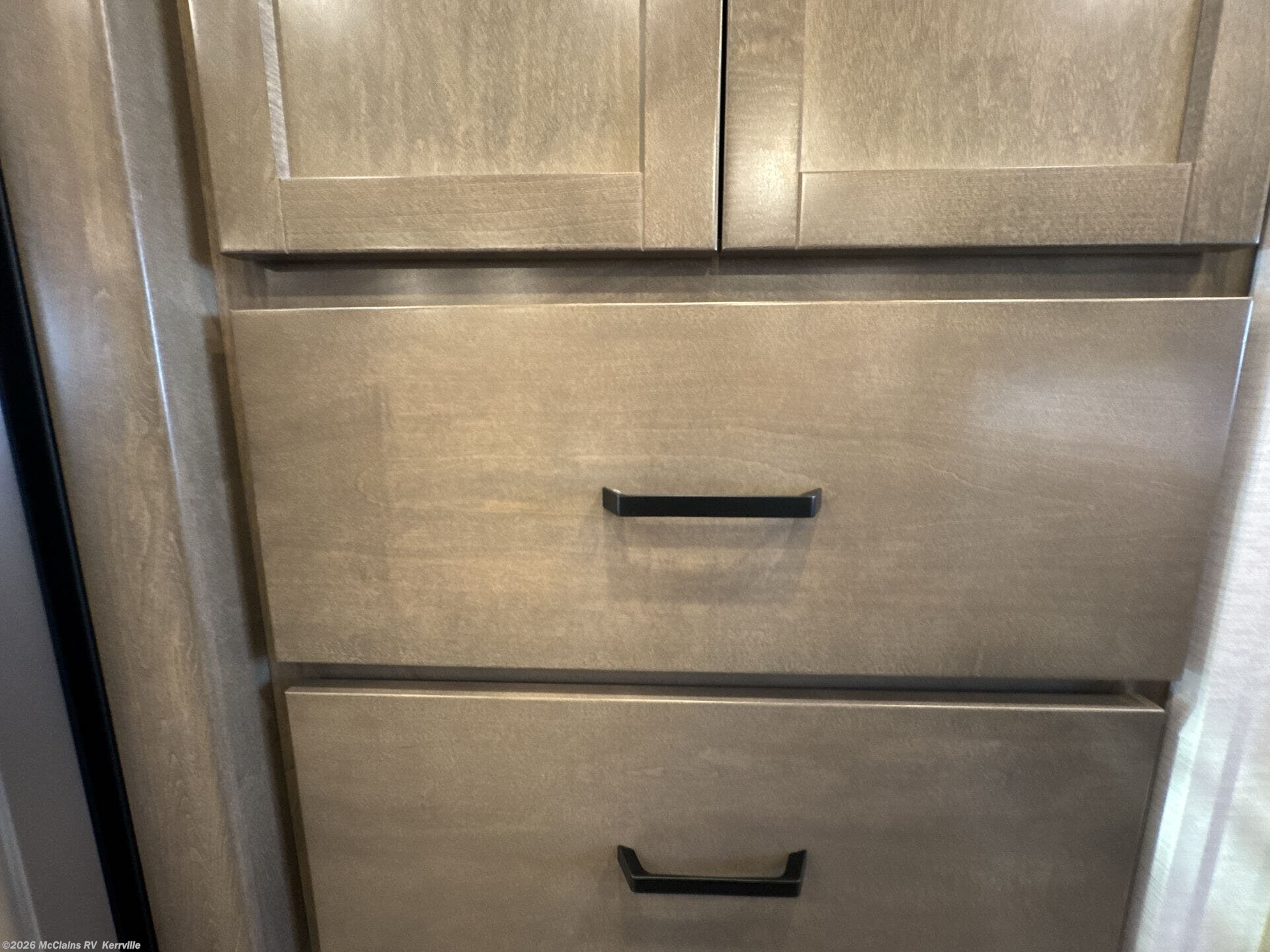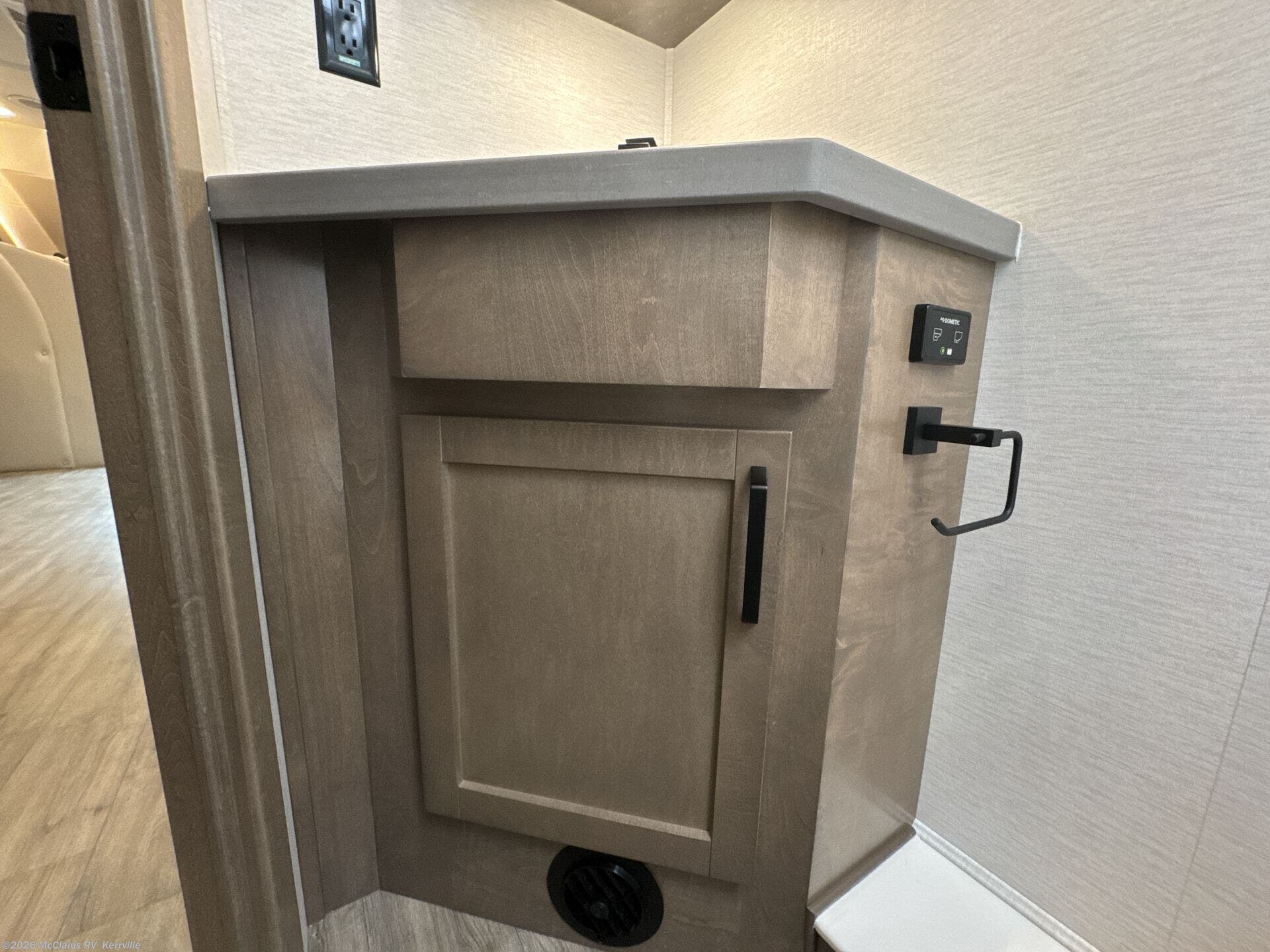 Enter the cabin of the Veracruz 32VDS and experience the meticulous craftsmanship and residential-inspired finishes within a generous dual-slide floorplan, creating a private sanctuary. Upscale features include solid-surface countertops, handcrafted hardwood cabinetry, and premium tile backsplash accents. The fully equipped kitchen boasts stainless steel appliances, a residential refrigerator, a convection microwave, and a deep stainless sink with a high-rise faucet, making meal prep effortless. Comfort is provided by plush theater seating, a spacious dinette, and an integrated entertainment center with a large LED TV and premium sound system. Oversized panoramic windows offer breathtaking views and natural light, complemented by day/night roller shades for privacy. The private bedroom features a walk-around queen bed and abundant storage, while the spa-inspired bathroom includes a glass-enclosed shower and elegant fixtures. Every detail is thoughtfully designed to deliver an atmosphere that feels far beyond a typical RV — more like a refined home that travels with you.