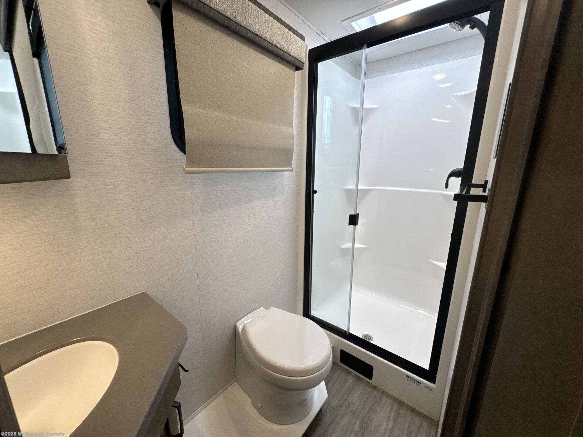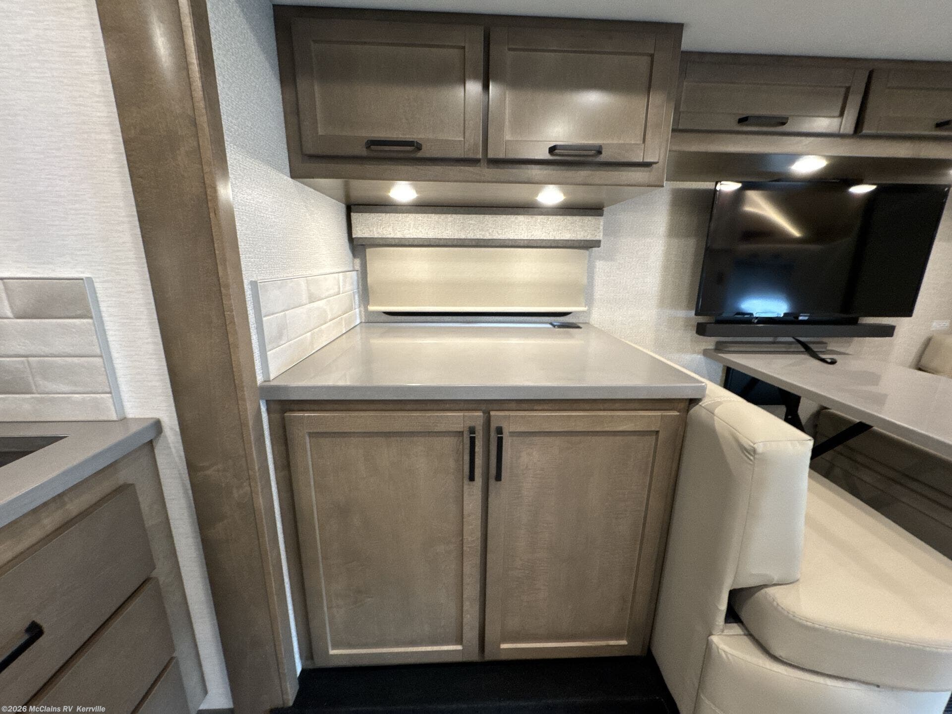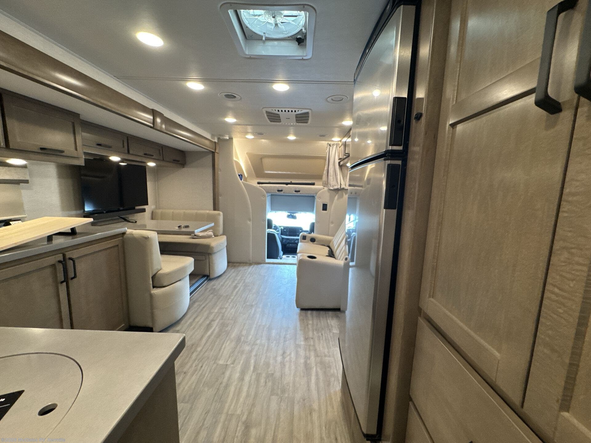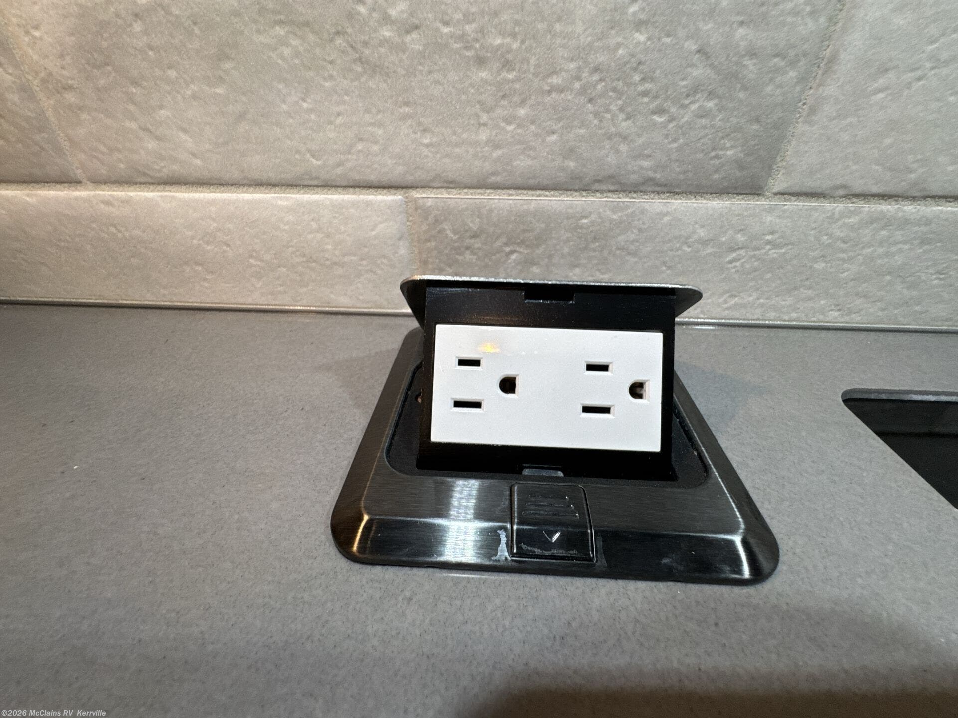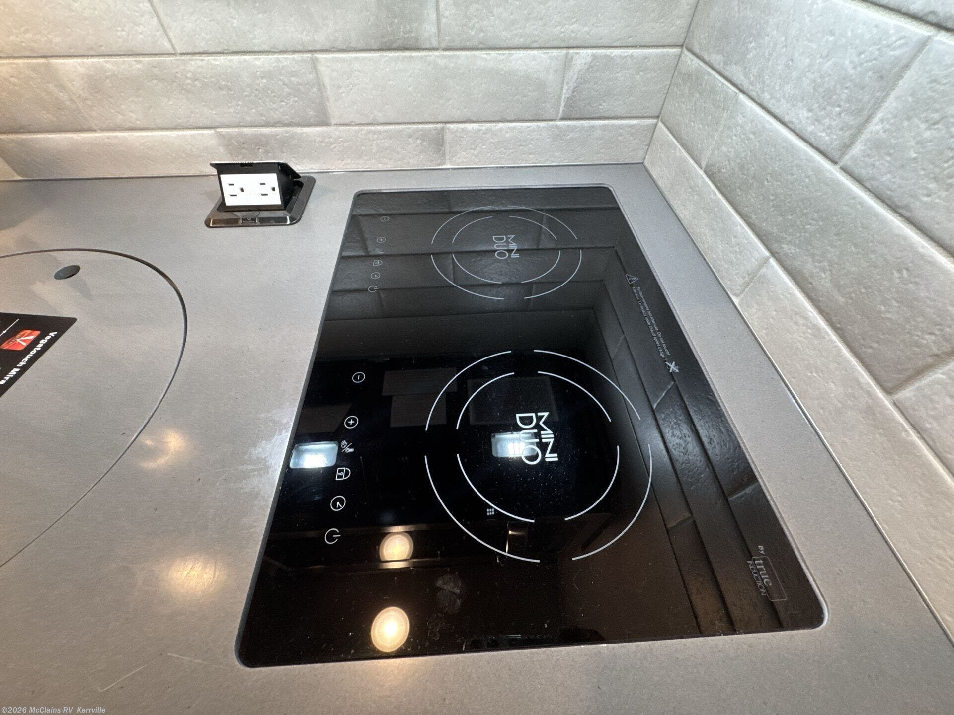 Enter the cabin of the Veracruz 32VDS and experience the meticulous craftsmanship and residential-inspired finishes within a generous dual-slide floorplan, creating a private sanctuary. Upscale features include solid-surface countertops, handcrafted hardwood cabinetry, and premium tile backsplash accents. The fully equipped kitchen boasts stainless steel appliances, a residential refrigerator, a convection microwave, and a deep stainless sink with a high-rise faucet, making meal prep effortless. Comfort is provided by plush theater seating, a spacious dinette, and an integrated entertainment center with a large LED TV and premium sound system. Oversized panoramic windows offer breathtaking views and natural light, complemented by day/night roller shades for privacy. The private bedroom features a walk-around queen bed and abundant storage, while the spa-inspired bathroom includes a glass-enclosed shower and elegant fixtures. Every detail is thoughtfully designed to deliver an atmosphere that feels far beyond a typical RV — more like a refined home that travels with you.