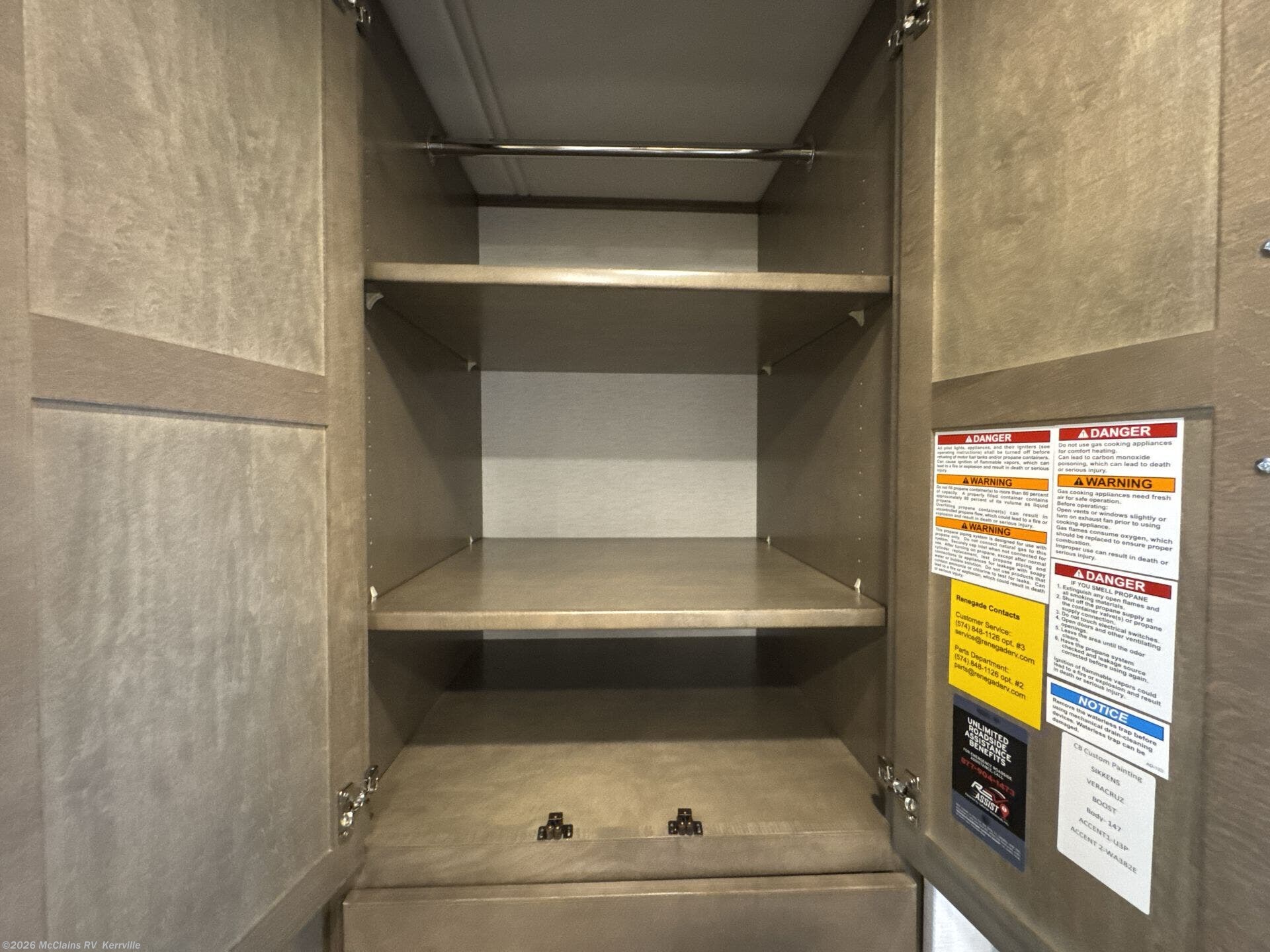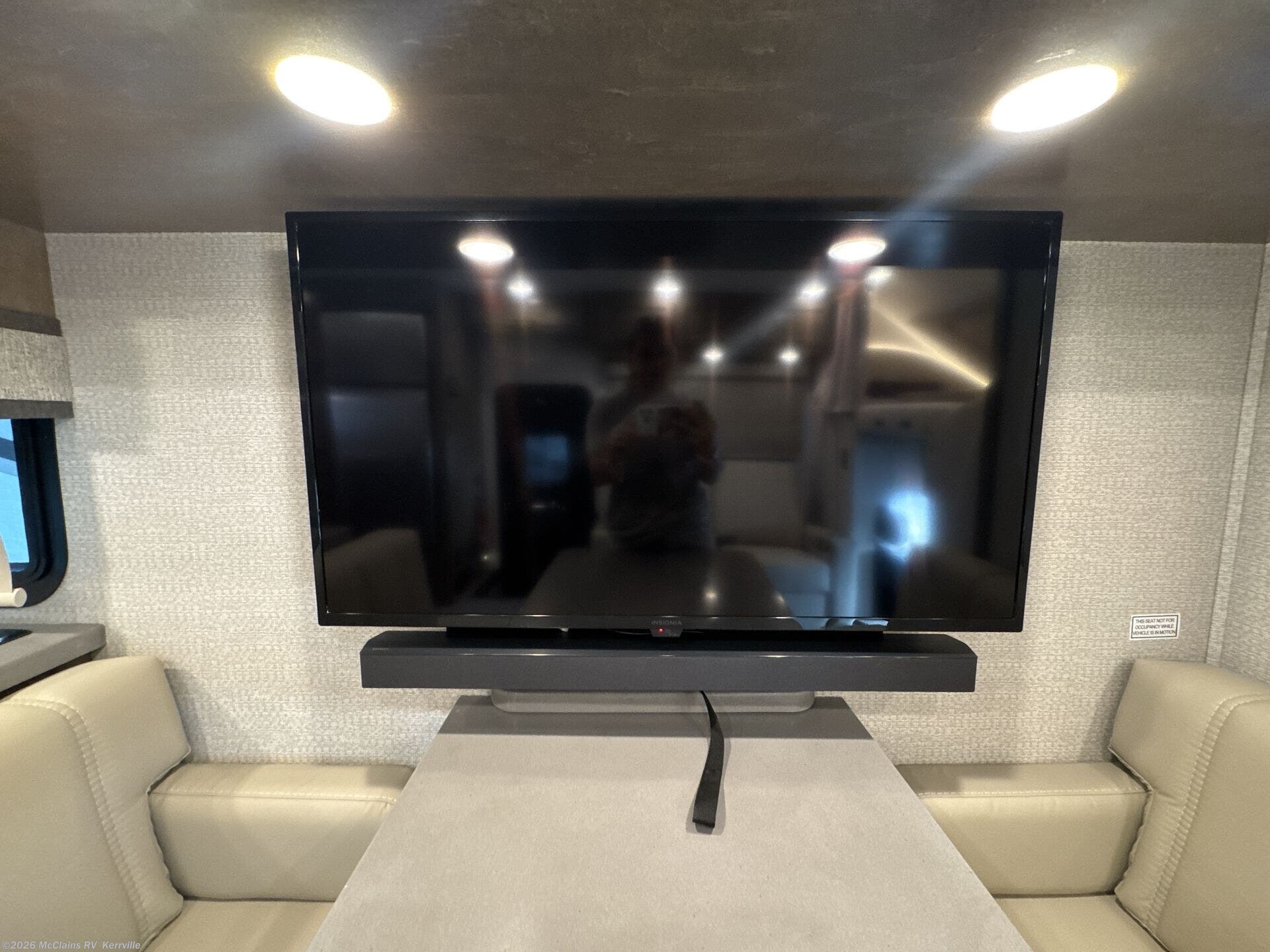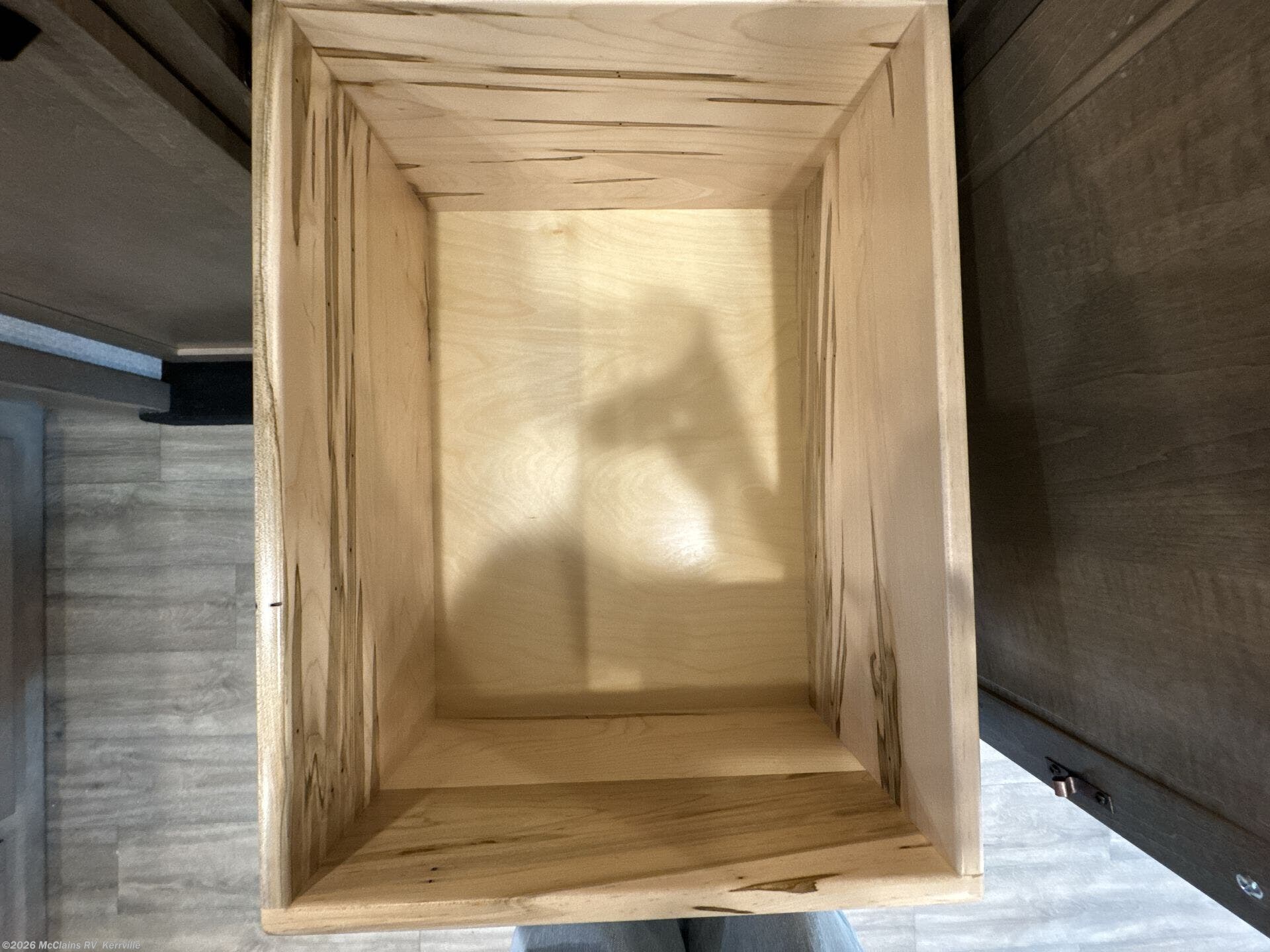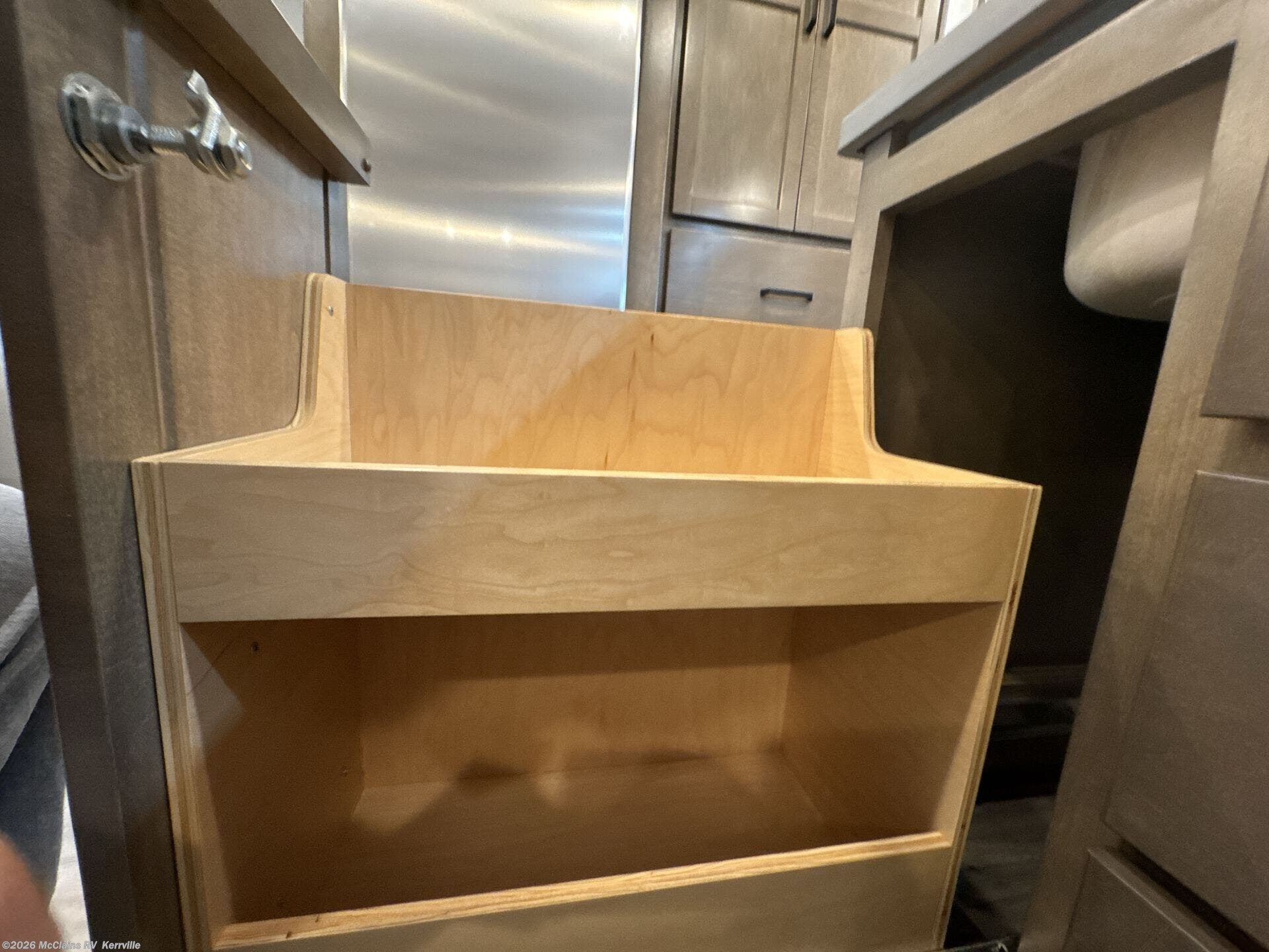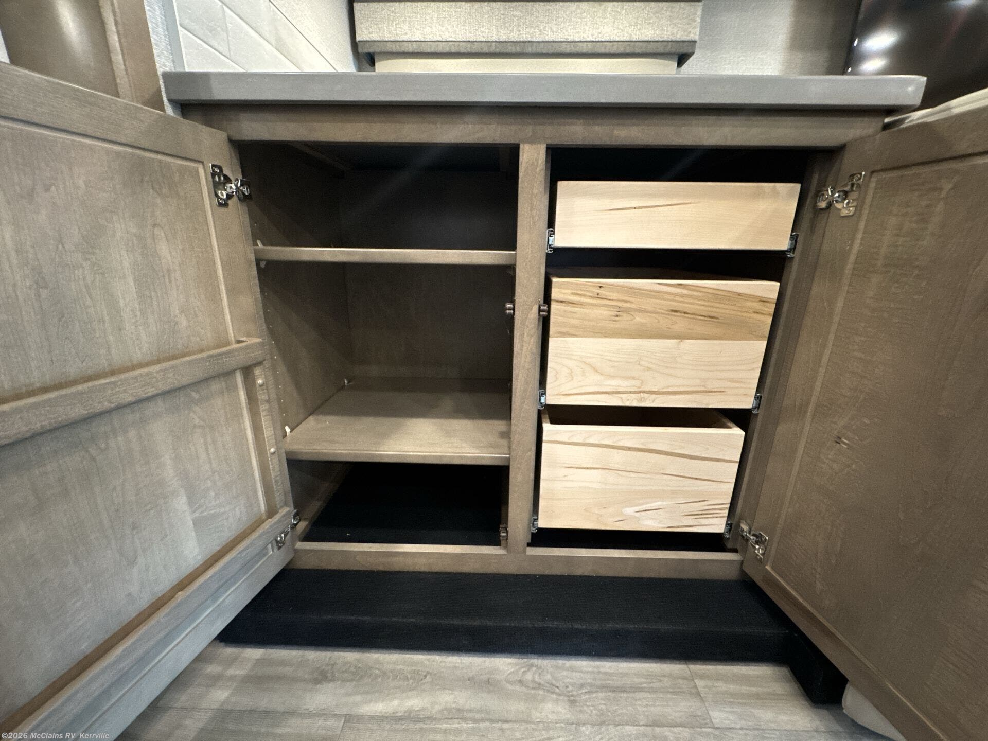 Enter the cabin of the Veracruz 32VDS and experience the meticulous craftsmanship and residential-inspired finishes within a generous dual-slide floorplan, creating a private sanctuary. Upscale features include solid-surface countertops, handcrafted hardwood cabinetry, and premium tile backsplash accents. The fully equipped kitchen boasts stainless steel appliances, a residential refrigerator, a convection microwave, and a deep stainless sink with a high-rise faucet, making meal prep effortless. Comfort is provided by plush theater seating, a spacious dinette, and an integrated entertainment center with a large LED TV and premium sound system. Oversized panoramic windows offer breathtaking views and natural light, complemented by day/night roller shades for privacy. The private bedroom features a walk-around queen bed and abundant storage, while the spa-inspired bathroom includes a glass-enclosed shower and elegant fixtures. Every detail is thoughtfully designed to deliver an atmosphere that feels far beyond a typical RV — more like a refined home that travels with you.