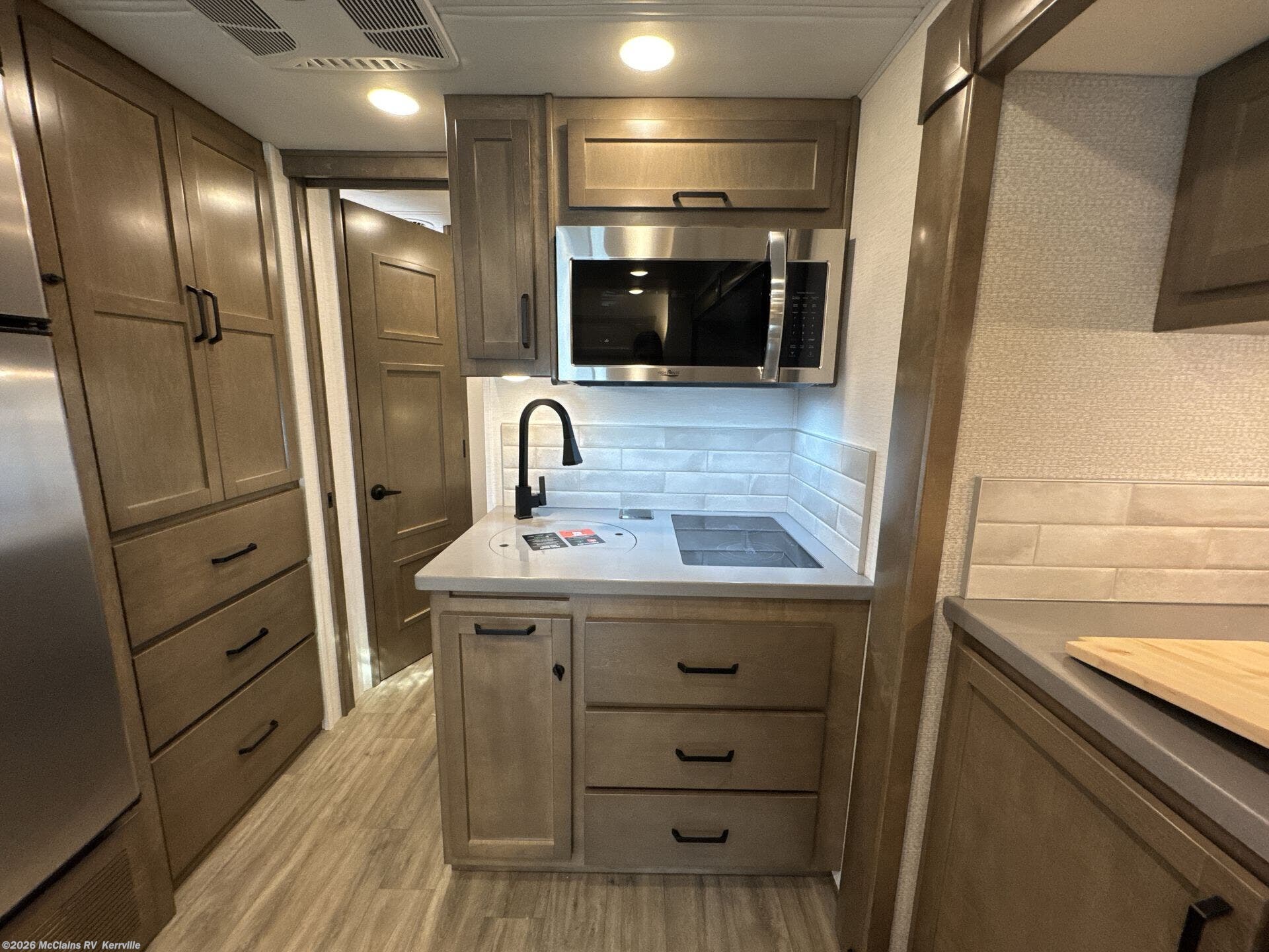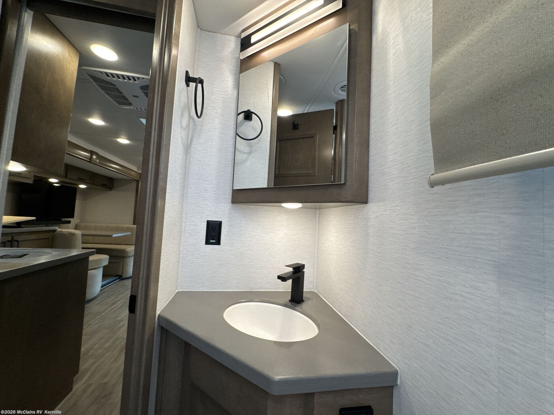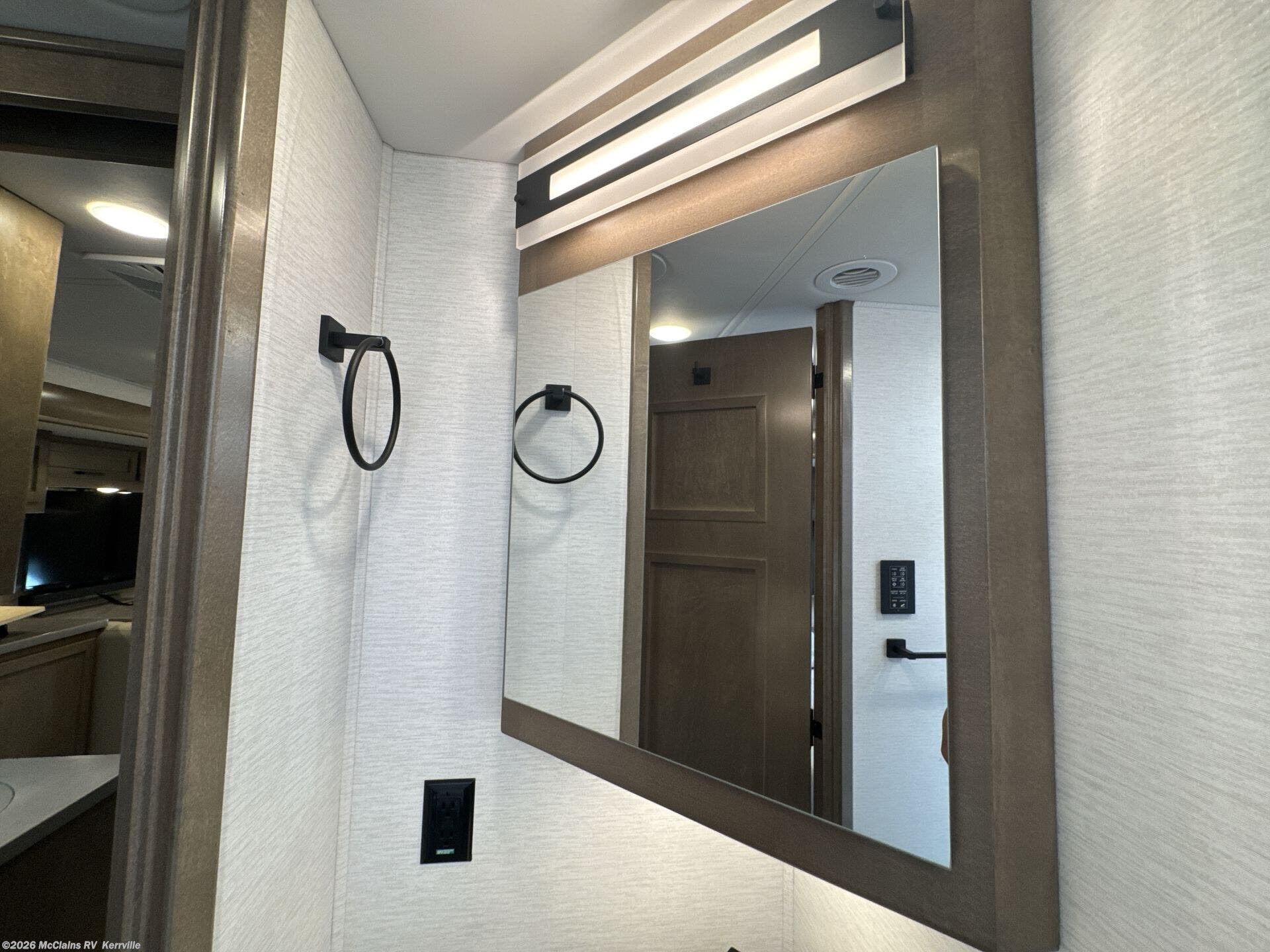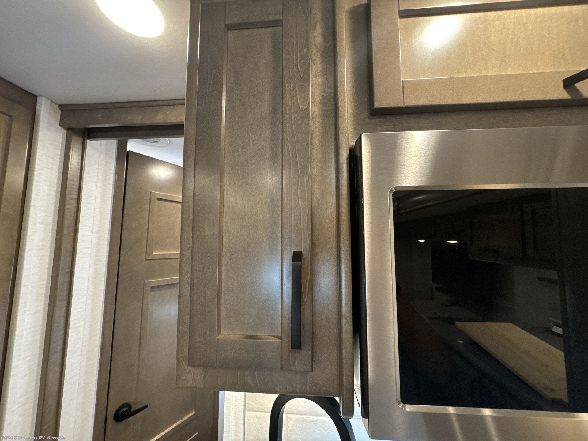Enter the cabin of the Veracruz 32VDS and experience the meticulous craftsmanship and residential-inspired finishes within a generous dual-slide floorplan, creating a private sanctuary. Upscale features include solid-surface countertops, handcrafted hardwood cabinetry, and premium tile backsplash accents. The fully equipped kitchen boasts stainless steel appliances, a residential refrigerator, a convection microwave, and a deep stainless sink with a high-rise faucet, making meal prep effortless. Comfort is provided by plush theater seating, a spacious dinette, and an integrated entertainment center with a large LED TV and premium sound system. Oversized panoramic windows offer breathtaking views and natural light, complemented by day/night roller shades for privacy. The private bedroom features a walk-around queen bed and abundant storage, while the spa-inspired bathroom includes a glass-enclosed shower and elegant fixtures. Every detail is thoughtfully designed to deliver an atmosphere that feels far beyond a typical RV — more like a refined home that travels with you.