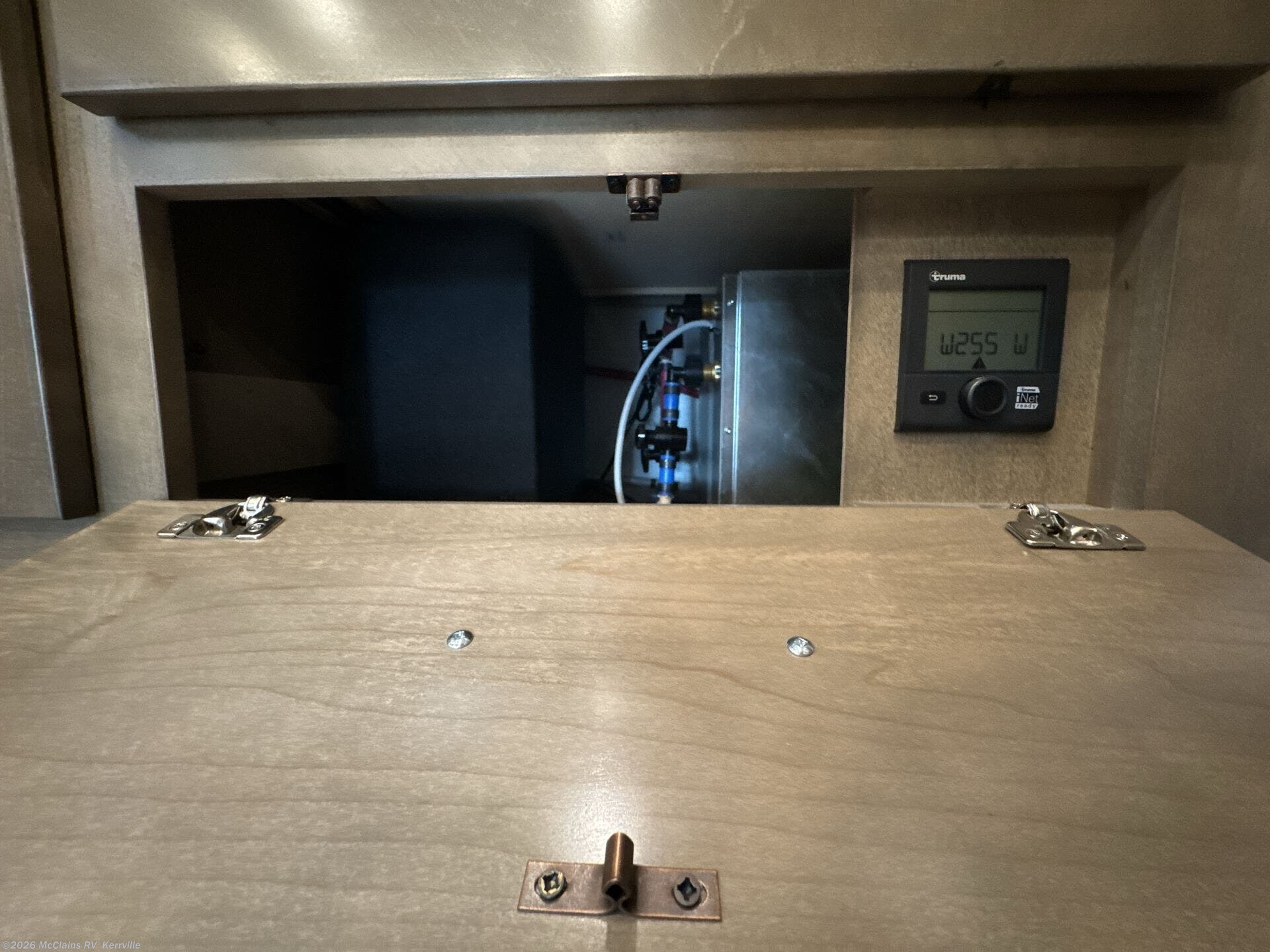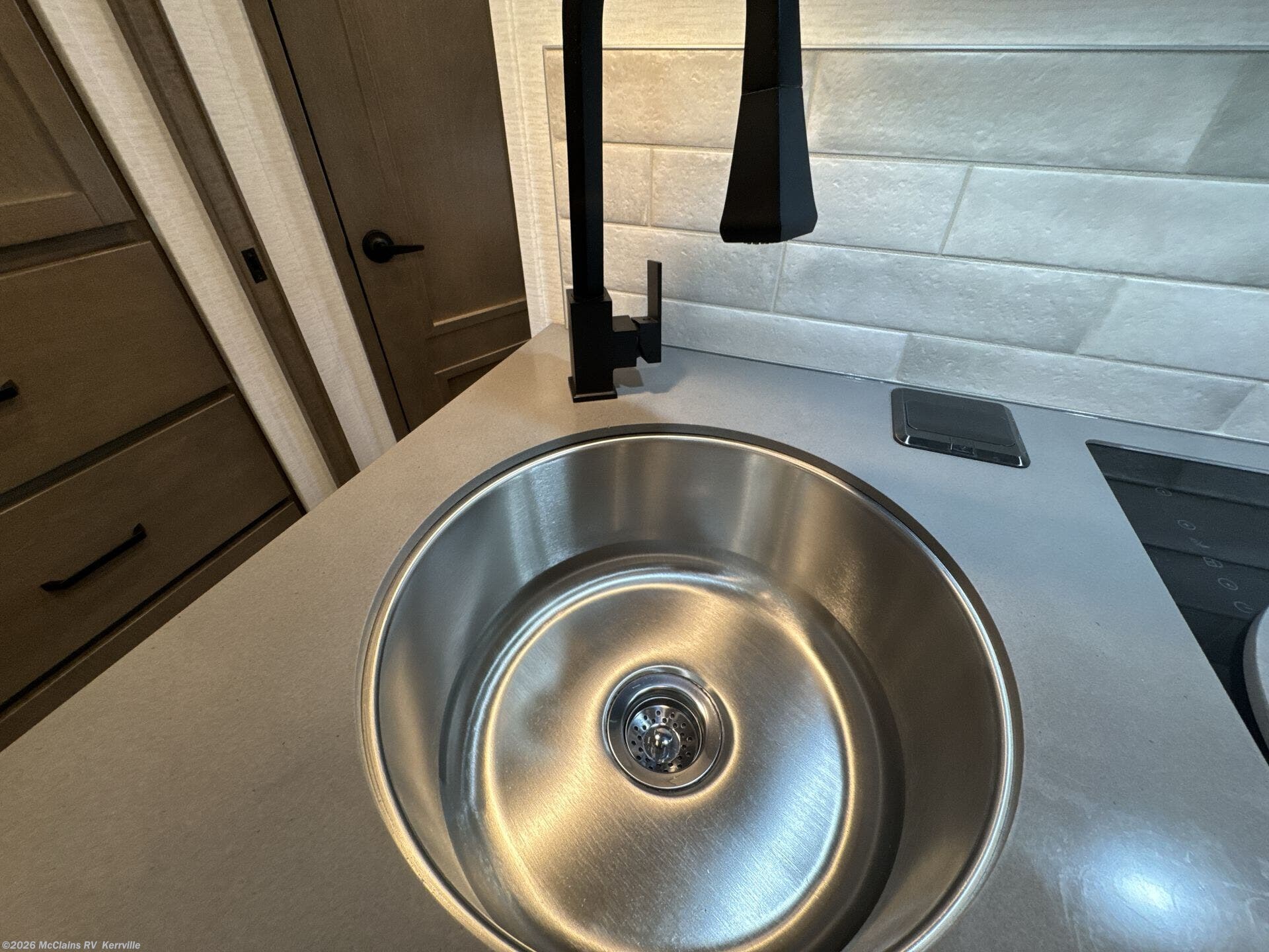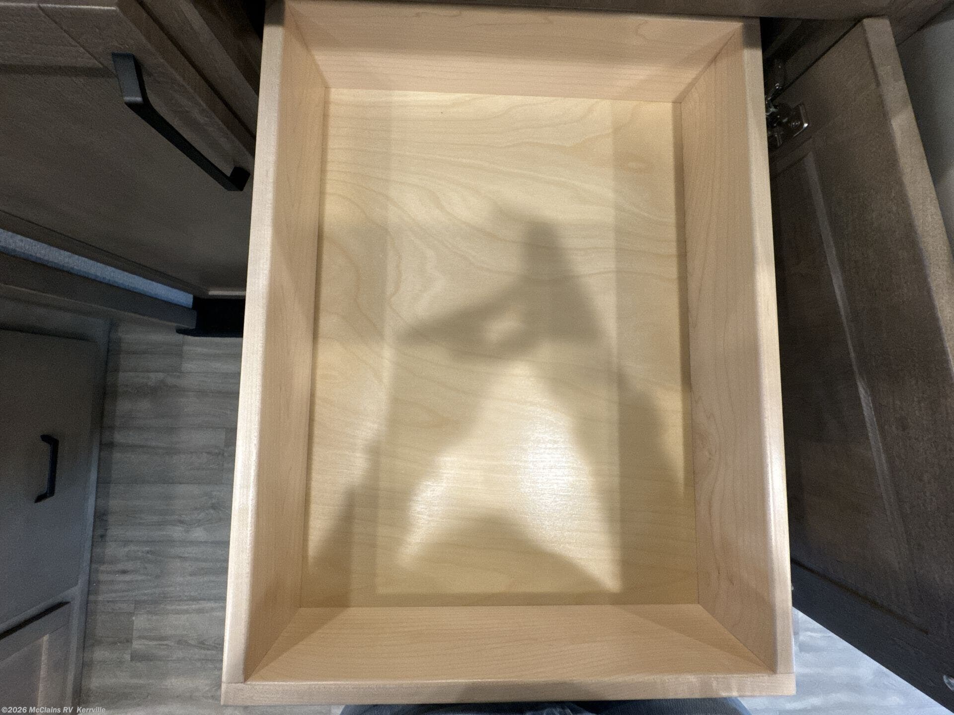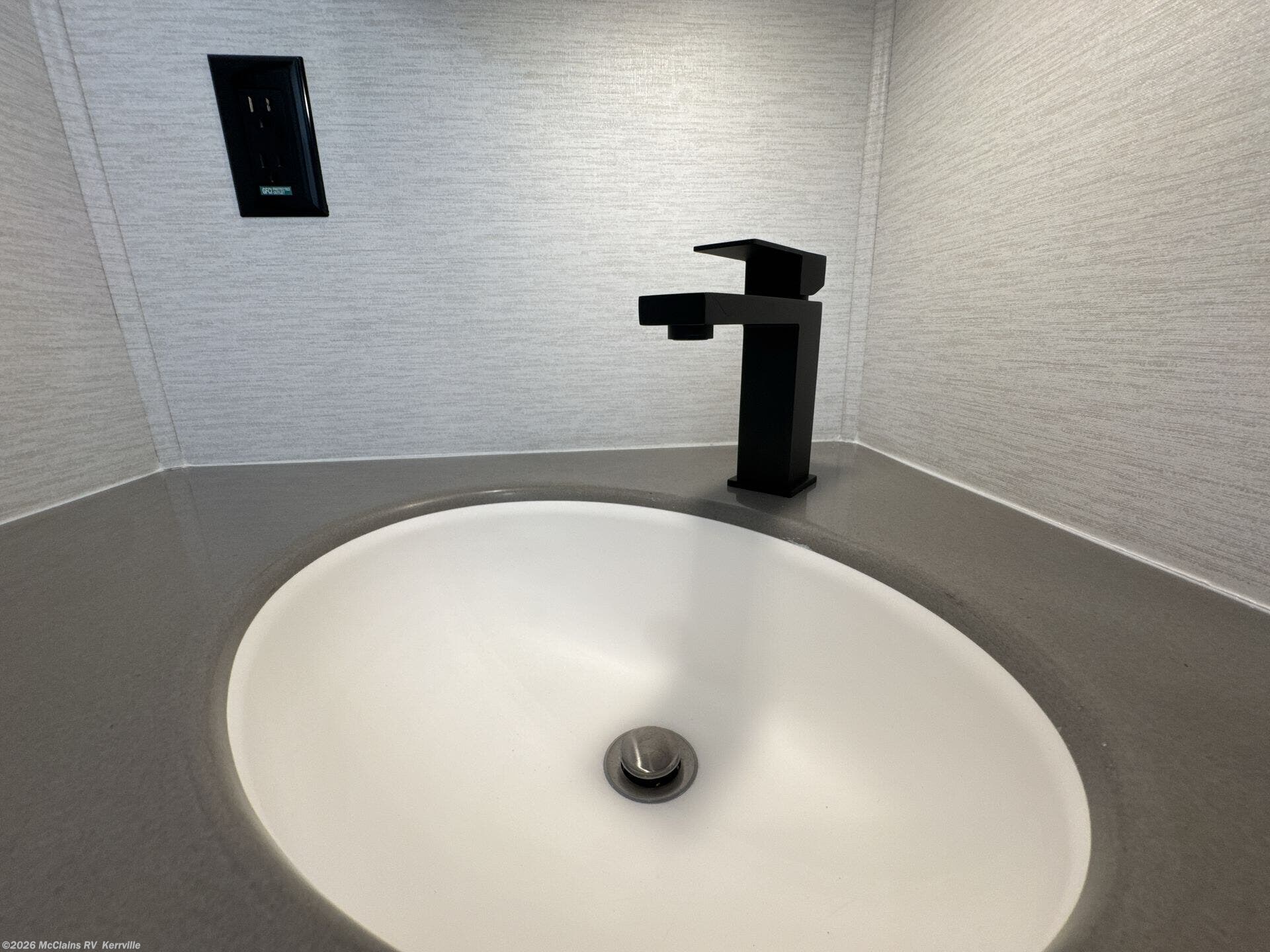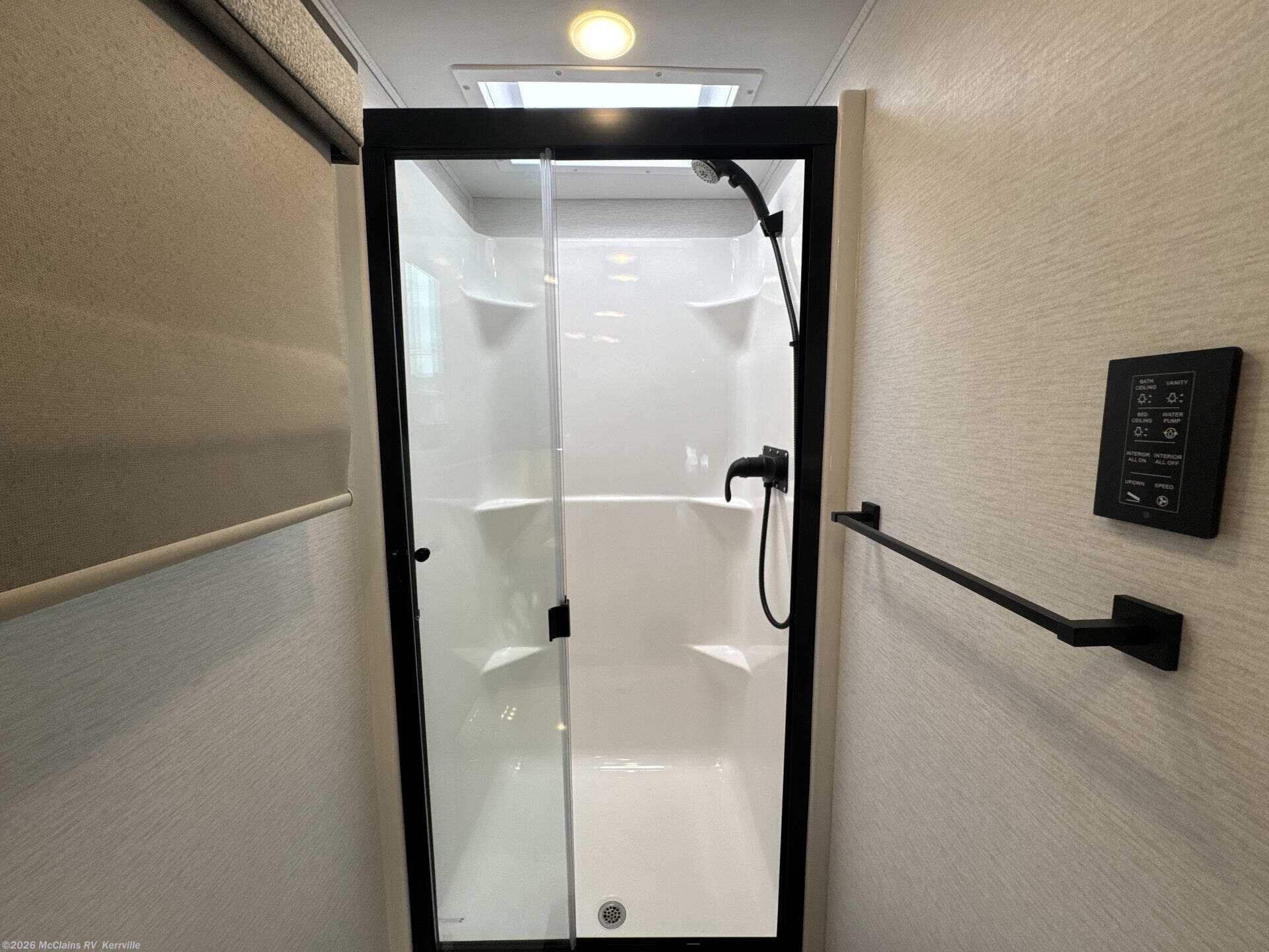 Enter the cabin of the Veracruz 32VDS and experience the meticulous craftsmanship and residential-inspired finishes within a generous dual-slide floorplan, creating a private sanctuary. Upscale features include solid-surface countertops, handcrafted hardwood cabinetry, and premium tile backsplash accents. The fully equipped kitchen boasts stainless steel appliances, a residential refrigerator, a convection microwave, and a deep stainless sink with a high-rise faucet, making meal prep effortless. Comfort is provided by plush theater seating, a spacious dinette, and an integrated entertainment center with a large LED TV and premium sound system. Oversized panoramic windows offer breathtaking views and natural light, complemented by day/night roller shades for privacy. The private bedroom features a walk-around queen bed and abundant storage, while the spa-inspired bathroom includes a glass-enclosed shower and elegant fixtures. Every detail is thoughtfully designed to deliver an atmosphere that feels far beyond a typical RV — more like a refined home that travels with you.