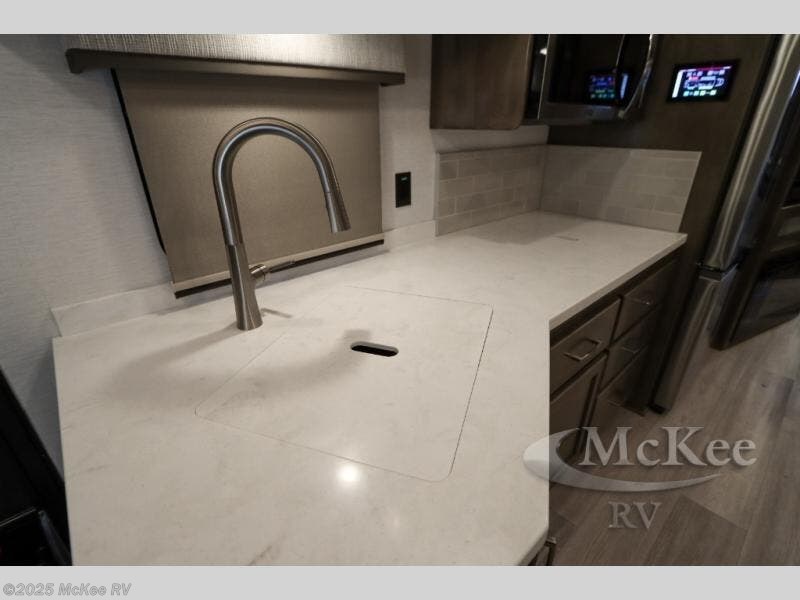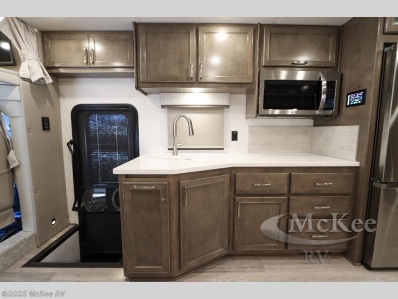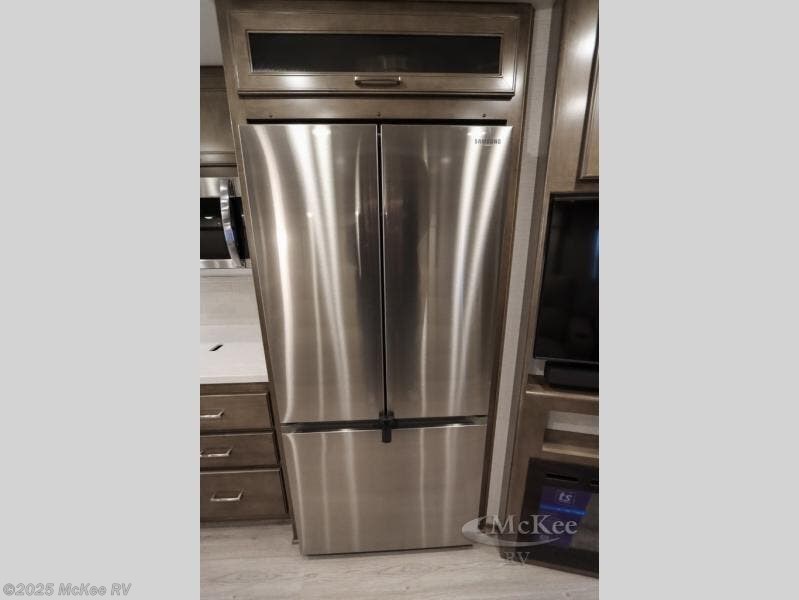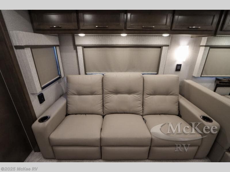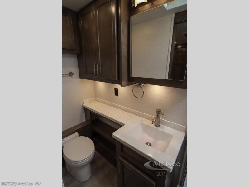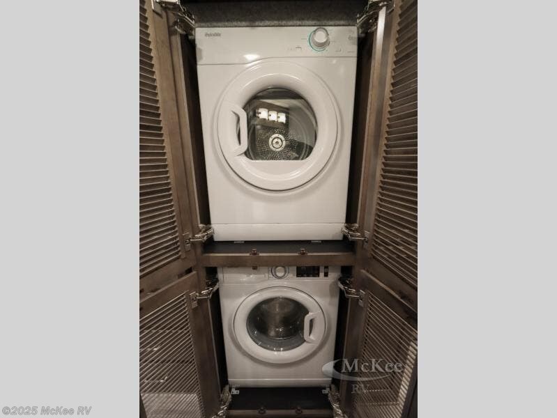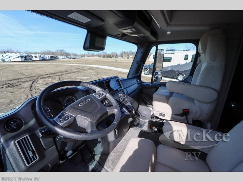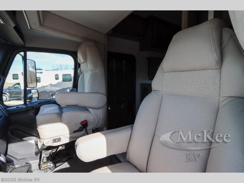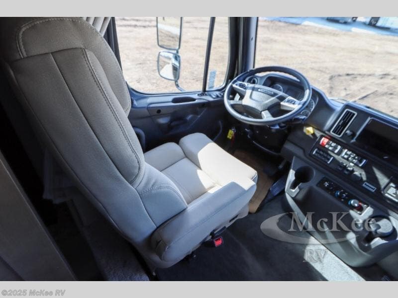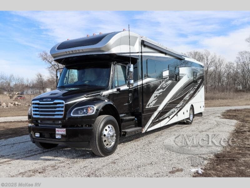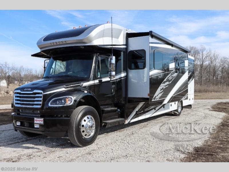 Why not enjoy the ride just as much as the destination, well you can with this Verona! The Airliner rear air suspension, the power/heated remote control mirrors, the Freightliner "Safety Assurance package" features and the comfortable seats will make that happen each trip. You will also have all the comforts of home such as the kitchen amenities including a convection microwave oven and a French door residential refrigerator, plus the Ultra-Soft slide-a-bed sofa and booth dinette to relax on. The half bath is super convenient when you have two or more onboard, and the master suite offers a king bed slide with lots of storage and a 32" 4K Smart LED TV, plus a rear full bathroom. There is so much more to love about this coach, step right up!