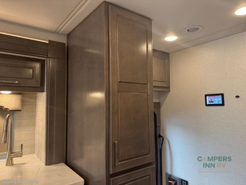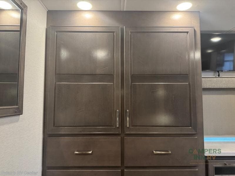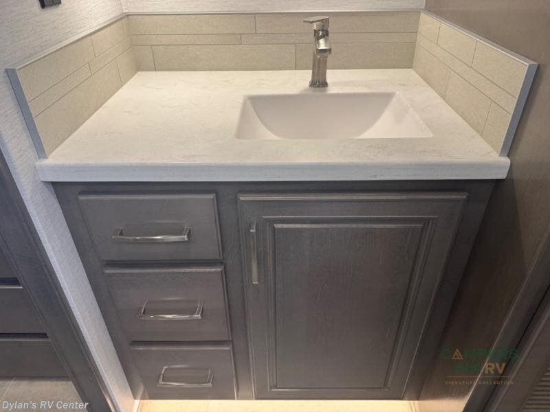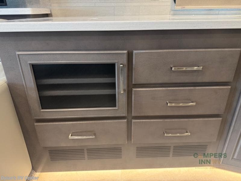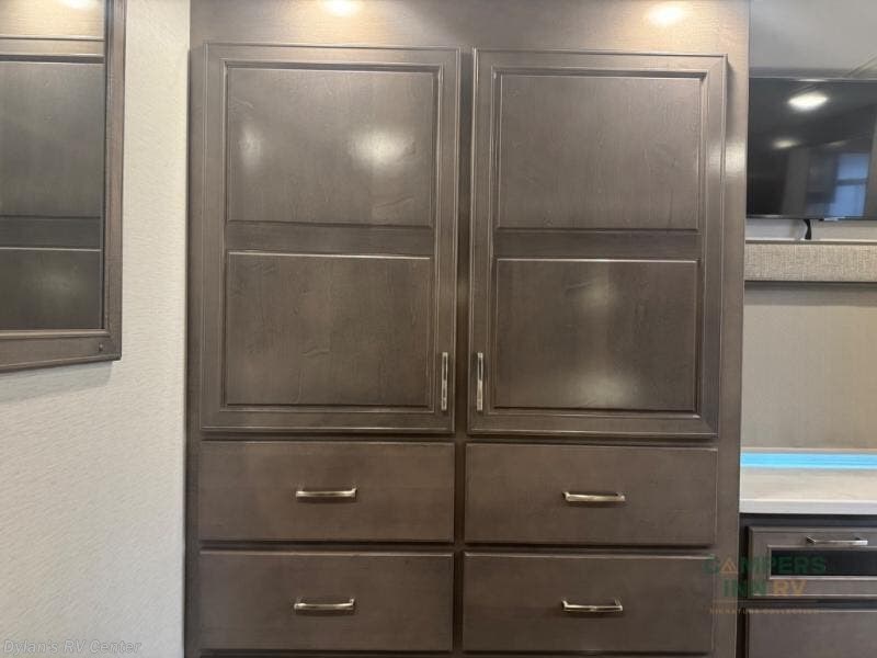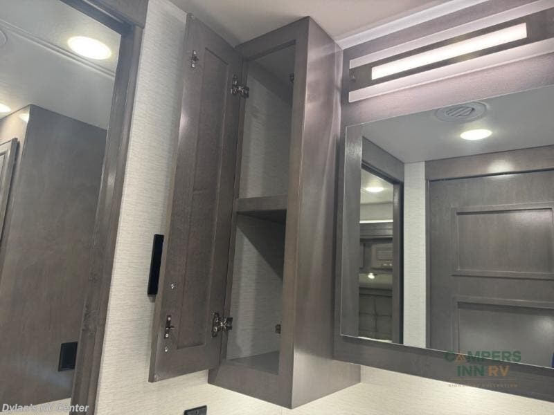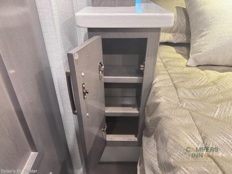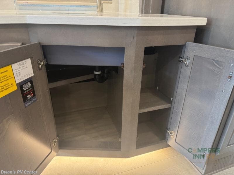 This family-friendly coach offers sleeping space for six when you convert the hide-a-bed sofa, the second sofa and the booth dinette. The triple slides open up the living area and bedroom giving everyone lots of floor space to move about during the day and at night. The rear bedroom offers a memory foam mattress, a wardrobe and a 32" Smart LED TV. You will surely appreciate the split-style bathroom when trying to quickly get ready to shop in town or prepare for bed. You can make meals for everyone using the recessed two burner induction cooktop and convection microwave, and will also appreciate 18 cu. ft. French door residential refrigerator with stainless steel doors.