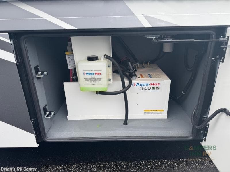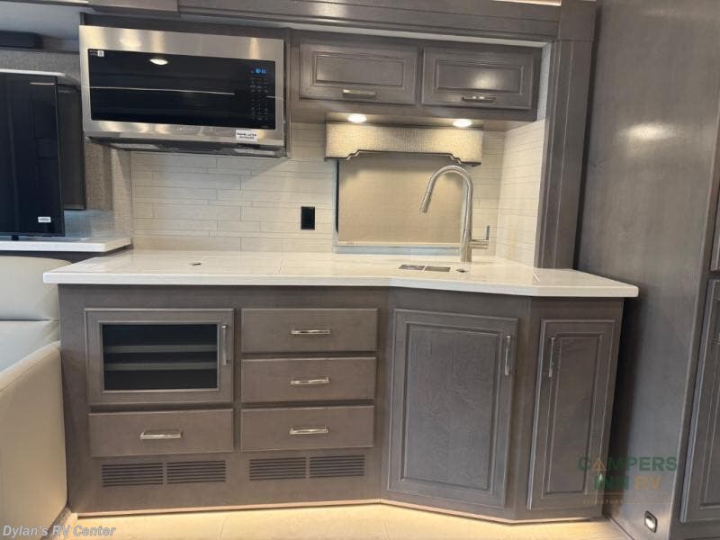 With any Verona LE Super C diesel motorhome by Renegade, you will be wowed by all the luxury features. The 2" vacuum laminated sidewalls feature welded aluminum framing for added support, and the 1.5" high density foam insulation in the sidewalls and roof means you can travel all year long in any season. The captain will love how easy it will be to drive with the Allison 3200TRV electronic 6-speed transmission, plus there are rear and side view cameras for easy parking and an upgraded cab sound system to keep the tunes going. Each model includes dual 15,000 BTU roof A/C pumps, an Aqua-Hot 450D hydronic water and zone heating system, plus MaxxAir power vents to keep you comfortable all year long. All of your power needs will be met with an 8kW Onan Quiet diesel generator, 3,000w True Sine wave inverter, (2) 330Ah AGM house batteries, and (3) 200W solar panels. Inside, there are three modern decor options to choose from, along with solid surface countertops, grouted tile backsplash, Maple hardwood cabinetry, and many more comforts of home!
