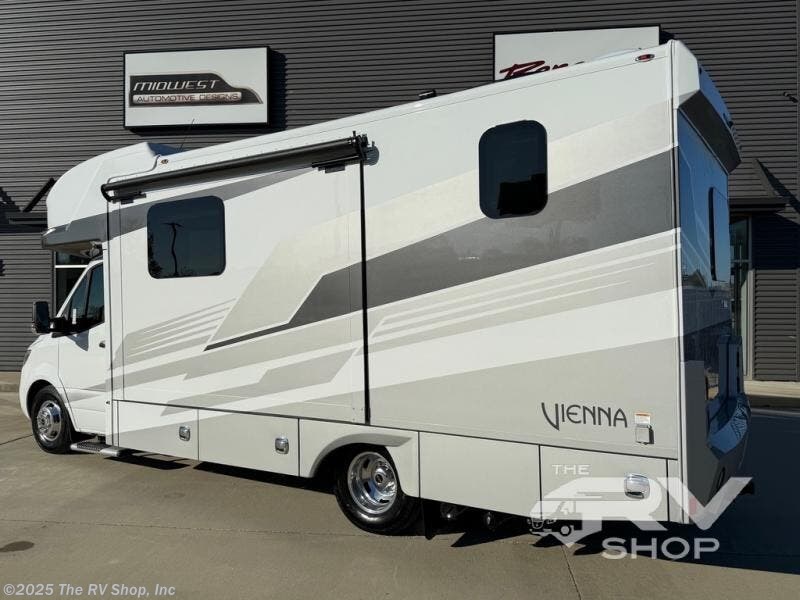 Luxury is in the details of each one of these Renegade Vienna Class C diesel motorhomes! They are built on a Mercedes-Benz Sprinter chassis, and include a four point hydraulic leveling system with app control, a 2000w true sine wave hybrid inverter, a 3.6KW LP generator with auto gen start, and Winegard Connect 2.0. You will appreciate the Truma™ Comfort Plus tankless water heater when showering, the accent lighting at the galley countertop for style, and the USB charging in the living area, bedroom and kitchen to keep your electronics ready. The Maple hardwood cabinetry completes the luxurious décor throughout the inside. Make your selection today!
