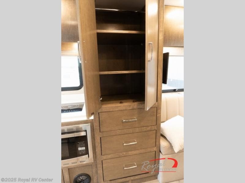 Luxury is in the details of each one of these Renegade Vienna Class C diesel motorhomes! They are built on a Mercedes-Benz Sprinter chassis, and include a four point hydraulic leveling system with app control, a 2000w true sine wave hybrid inverter, a 3.6KW LP generator with auto gen start, and Winegard Connect 2.0. You will appreciate the Truma™ Comfort Plus tankless water heater when showering, the accent lighting at the galley countertop for style, and the USB charging in the living area, bedroom and kitchen to keep your electronics ready. The Maple hardwood cabinetry completes the luxurious décor throughout the inside. Make your selection today!