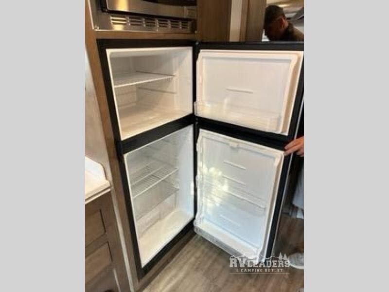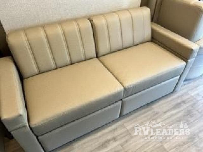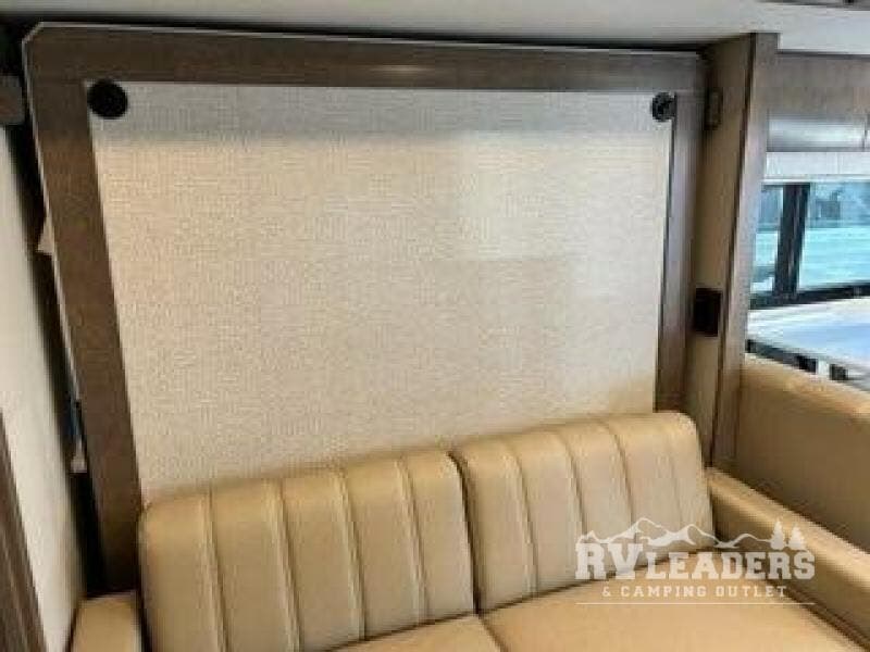 This is the perfect couples motorhome to explore the country! You will stay squeaky clean in the full rear bathroom with shower, and a large closet to store your clothes, towels, and other toiletries. Depending on what time you enter this coach will determine whether you see the sofa or the 65" x 72" Murphy bed. The kitchen has a two burner cooktop, a convection microwave, and an 8 cu. ft. refrigerator to prepare home cooked meals, and a booth dinette to enjoy them at. The 46" x 80" bunk mattress over the cab lets another member join in on the adventure and the booth dinette offers sleeping space as well.