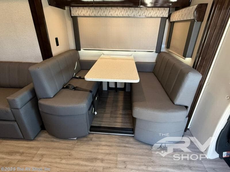 This is the perfect couples motorhome to explore the country! You will stay squeaky clean in the full rear bathroom with 24" x 36" shower, and a large closet to store your clothes, towels and other toiletries. Depending on what time you enter this coach will determine whether you see the sofa or the 65" x 72" Murphy bed. The kitchen has a two burner cooktop, a convection microwave, and an 8 cu. ft. refrigerator to prepare home cooked meals, and a booth dinette to enjoy them at. You even have the choice of adding a cab table option between the front seats to place your drinks, books and such.