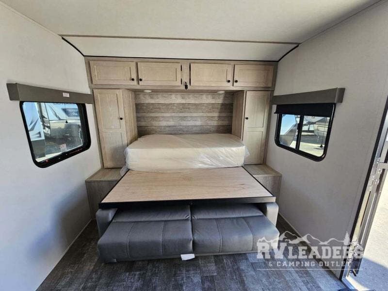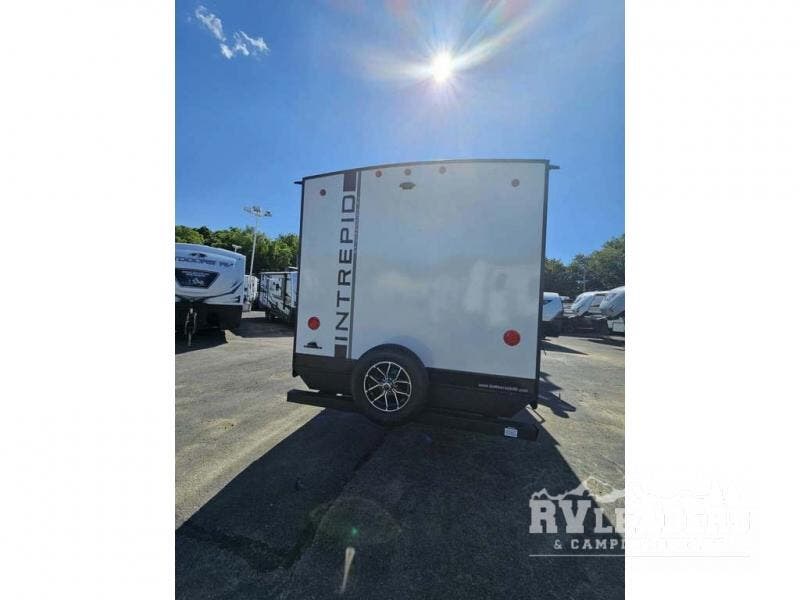 With any Intrepid travel trailer by Riverside RV, you will appreciate easy towing thanks to their lightweight construction! Each model features a fully integrated A-frame, 3/8" decking for a full walk-on roof, and Azdel vacuum bonded laminated walls for added durability. There are new upgraded aluminum wheels, along with upgraded Intrepid graphics package and enlarged cargo doors so nothing gets left behind. Additional exterior features include diamond plate rock guard, front and rear stabilizer jacks, an outside shower, and a friction hinge entry door. The interior of each Intrepid includes upgraded black faucets, roller blinds, standard GE appliances, hardwood Gran Oak cabinet doors, and many more comforts. There are also USB ports to keep your electronics charged, an FM/Bluetooth stereo to listen to your favorite tunes, and an HD TV antenna if you choose to bring along a television!