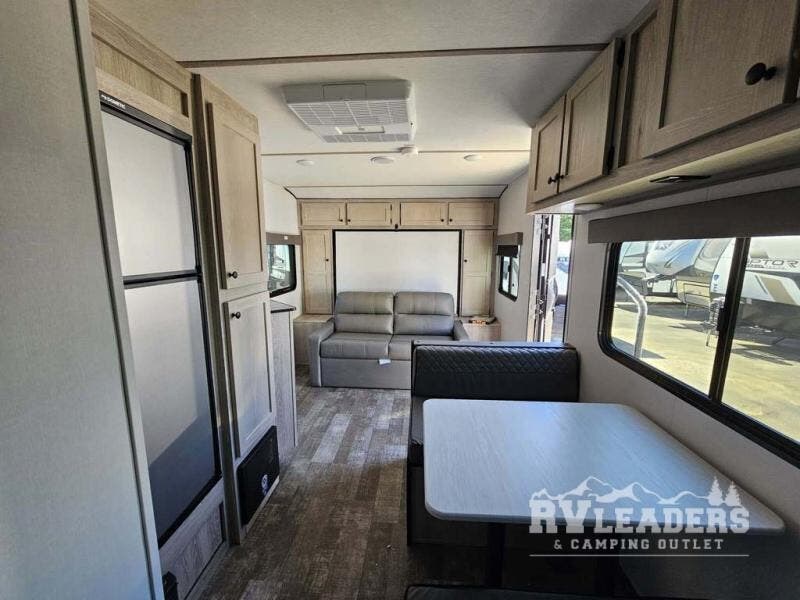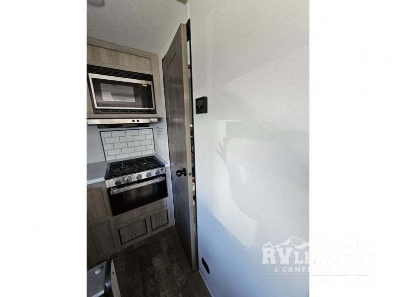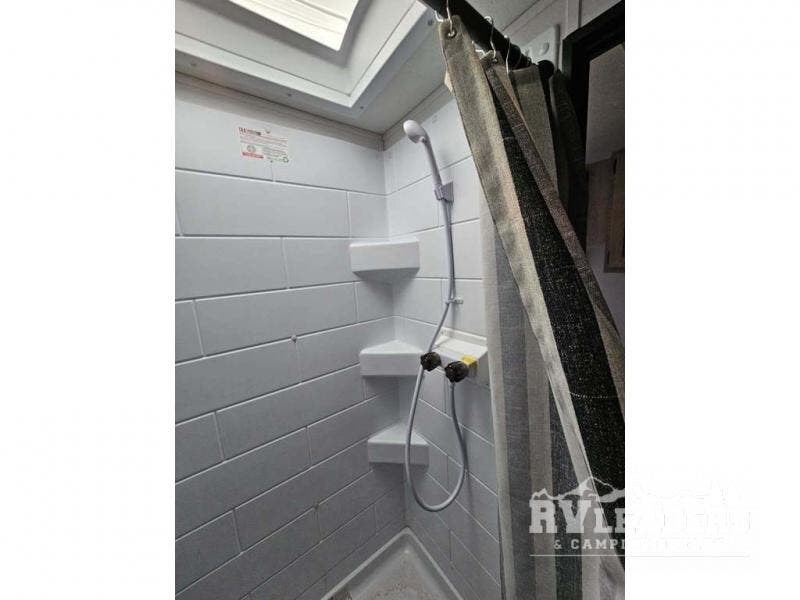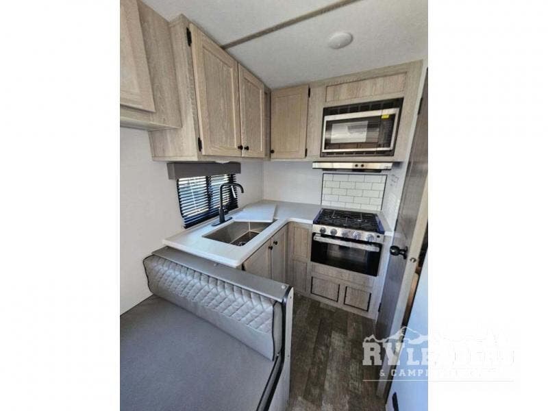 Ditch that old tent for this double-axle travel trailer for three. You will love being able to make your meals on a cooktop instead of a fire each night, and there is a full bath to clean up in after swimming in the lake. The booth dinette will be perfect for meal times, game night, and additional sleeping space, plus there is an RV queen bed in the front bedroom for you. If the weather isn't too hot you may just find yourselves outdoors more under the 11' awning with an LED light!