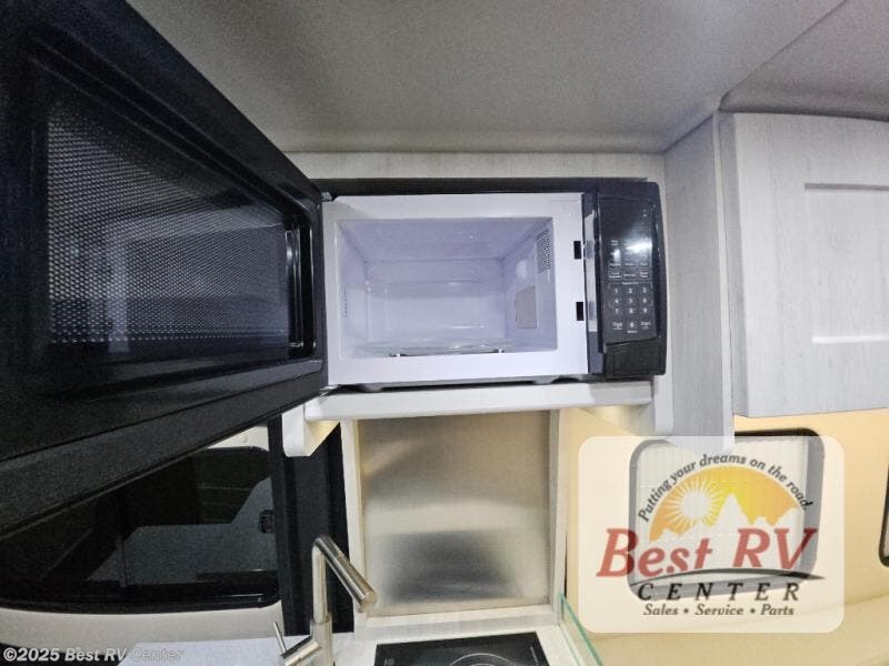 Chase your outdoor excursions in this comfortable motorhome for two! You will find side-facing rear power sofas that can convert to twin beds or a king-size bed for your comfort. If you're needing more sleeping space, just add the optional folding mattress for the front captain's seats! You can prepare at-home meals in the galley that features a two-burner propane stove, a 5-cu. ft. refrigerator, plus a counter extension with a charging station for your tablet or phone. After you've freshened up in the convenient wet bath, head outdoors for the day to enjoy the sunshine. When you return, you can make popcorn in the microwave oven and watch a movie on the 24" Smart TV!