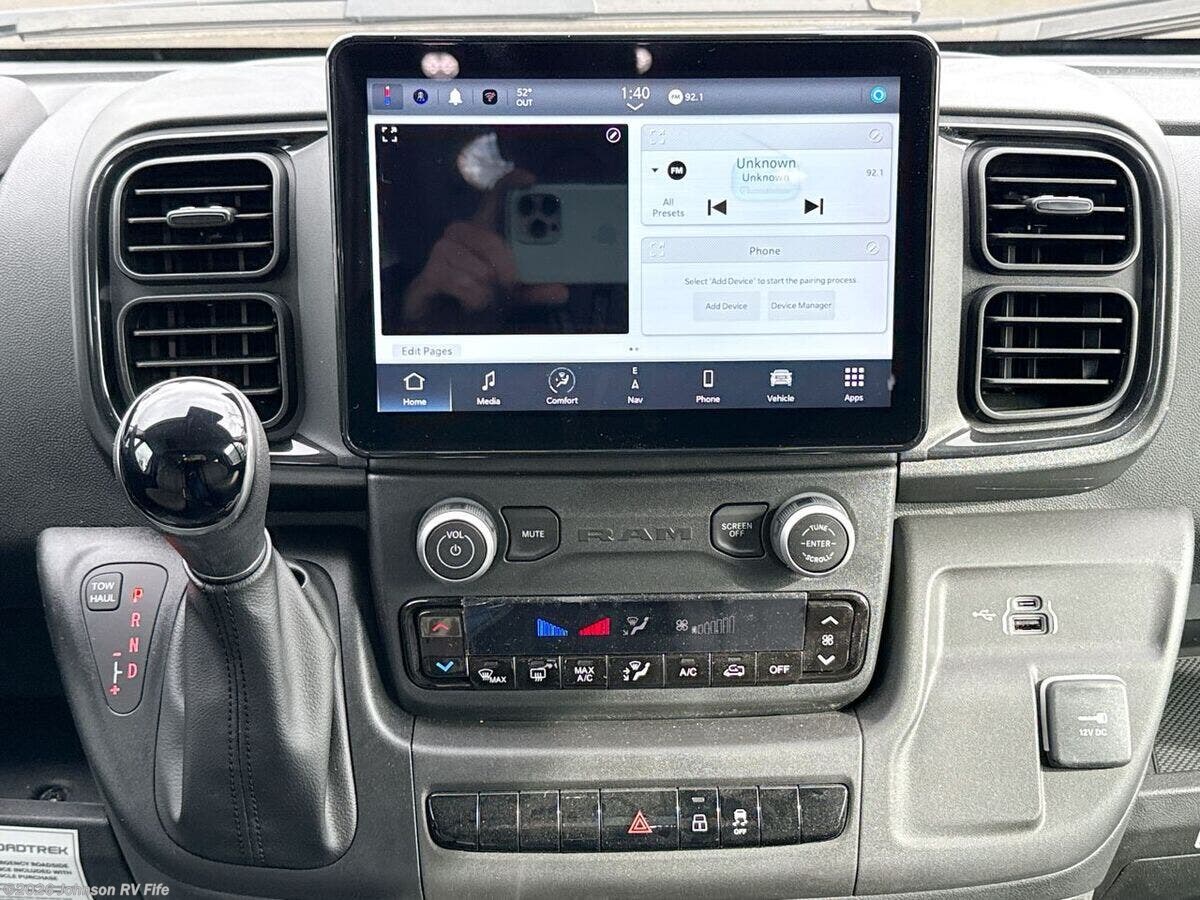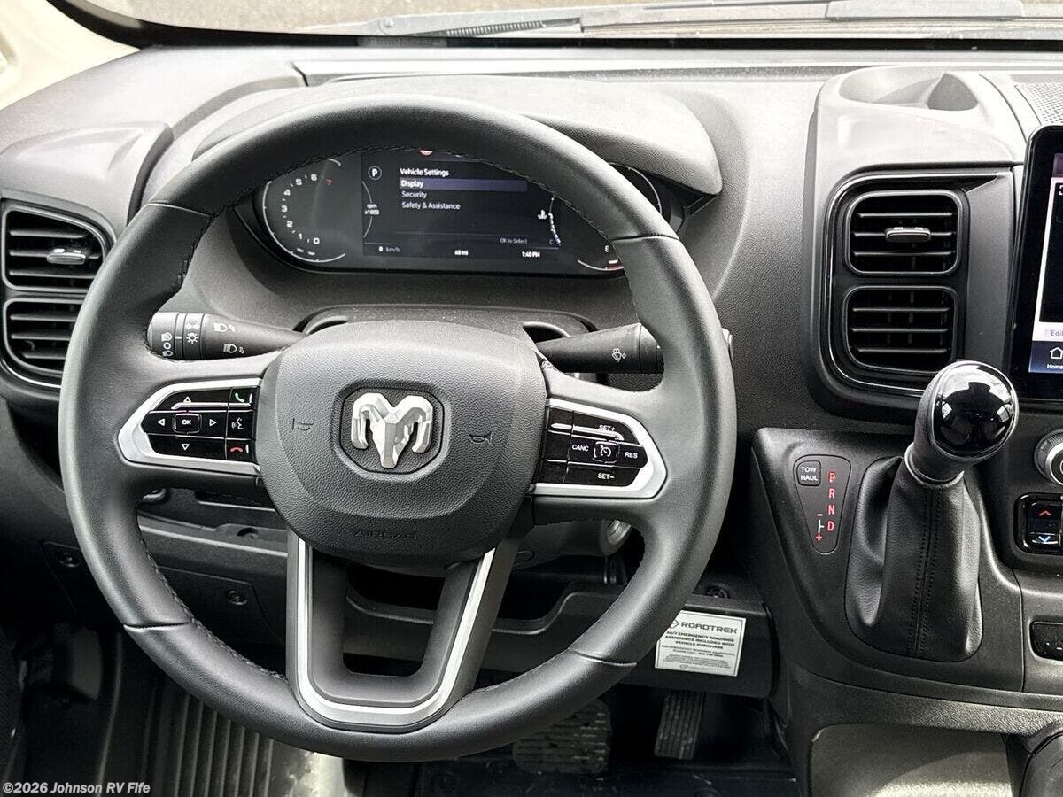 Introducing the 2025 Roadtrek Zion SRT, a versatile and well-equipped Class B RV designed to provide comfort and convenience on all your adventures. Crafted on the robust HD RAM ProMaster 3500 Series Chassis, this RV combines modern amenities with a focus on safety and efficiency. Under the hood, you'll find a powerful 3.6L V6 gas engine paired with a 9-speed automatic transmission, ensuring a smooth and reliable drive. Enhance your driving experience with features such as: - 360 Surround View Camera - Adaptive Cruise Control with Stop & Go - Blind Spot and Cross Path Detection - Collision Warning - Lane Departure Warning Plus - Park Assist - Power Heated Side-Mirrors - Remote Start - Tire Pressure Monitoring Inside the cab, you'll enjoy added comfort and technology with amenities like: - Power Cab Steps and Privacy Shades - Climate Control - Uconnect 5 with a 10.1-inch Display - Voice Command functionality - Apple CarPlay and Android Auto integration - Wireless Charging Pad - 4G LTE WiFi Hotspot The living area is thoughtfully designed for relaxation and style, featuring: - A 12-foot Retractable Power Awning - Power Entry Step - 74-inch Interior Standing Height - Deep Tint Venting Windows - Premium Bug Screens Package The open concept floorplan includes a rear leatherette power convertible sofa, complete with seatbelts for three, easily transforming into a comfortable king-size bed with high-density foam cushions. For meal prep, the RV includes a well-appointed kitchen area with: - Lagun Adjustable Swivel Tables - Rollout Pantry - Solid Surface Countertop with Flip-Up Extension - Electronics Charging Station - Stainless Steel Sink with High Rise Faucet - 12v 5.3 cf Compressor Refrigerator - 2-Burner Cooktop with Flush Cover - 110v 700w Microwave Oven Entertainment and technology are not overlooked, featuring: - Firefly Systems Touch Control - LP CO and Smoke Detectors - USB Charging Ports - Power Boost Digital Antenna - 24-inch Smart TV mounted to a rotating bracket The wet bath includes: - Sink, Shower, and Toilet for complete self-sufficiency on the road Mechanically, the Roadtrek Zion SRT comes equipped with: - 300w Roof Solar with Auto Charge Controller - 30-Amp Detachable Service Cord - Underhood Generator - 600-Amp Lithium Battery System - 3000w Sine Wave Inverter - 5.9-Gal LP Tank - 11.5k Truma Vario Heat - 13.5k Truma Aventa Eco Roof AC - Truma Aqua Go Comfort On Demand Hot Water - Simplified Winterization System - Dual Waste Management System equipped with a 12v Macerator with Pump - Outdoor Hot and Cold Water Shower Optional features include a Sleep Bed Cushion, Induction Cooktop, Thule Accessory Package, and Accent Paint Packages to further personalize your vehicle to suit your needs. The 2025 Roadtrek Zion SRT is your gateway to exploring with confidence and comfort, offering a perfect blend of advanced safety features, modern technology, and home-like convenience. ??