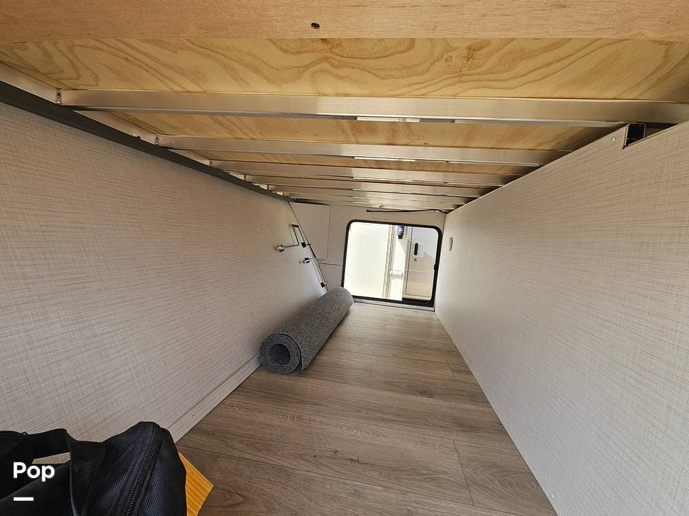 The trailer is built on a durable aluminum frame with a laminated sidewall construction, ensuring longevity and ease of maintenance.