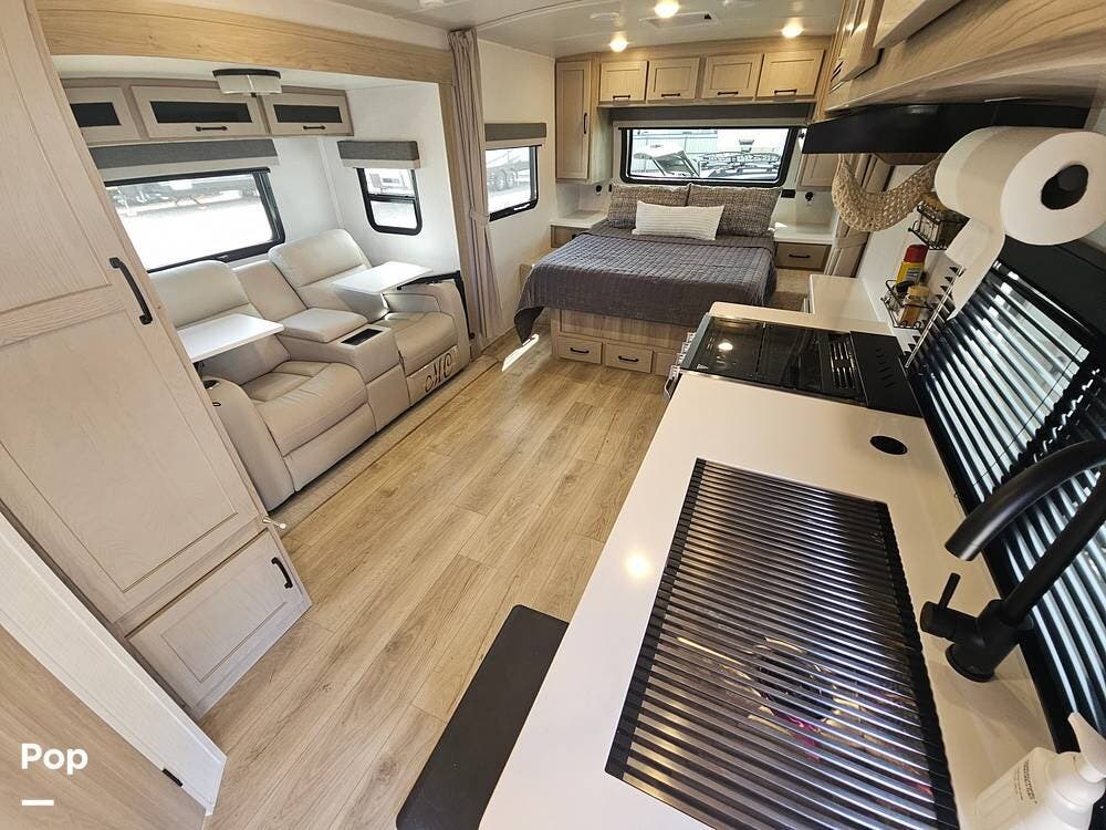 Inside, the 2205S offers a thoughtfully designed interior with a spacious living area, featuring comfortable seating and large windows.