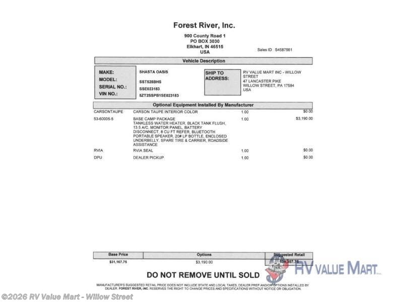 Request More Info on this 2025 Shasta I-5 Edition 525BHS Offered for sale by RV Value Mart - Willow Street