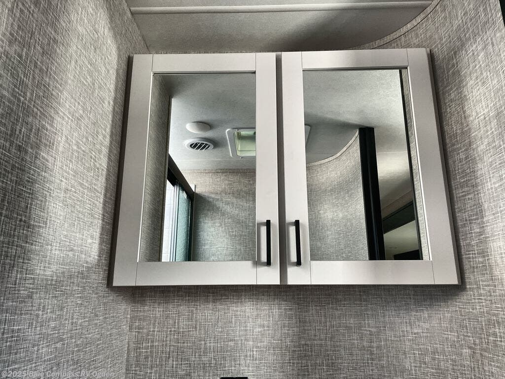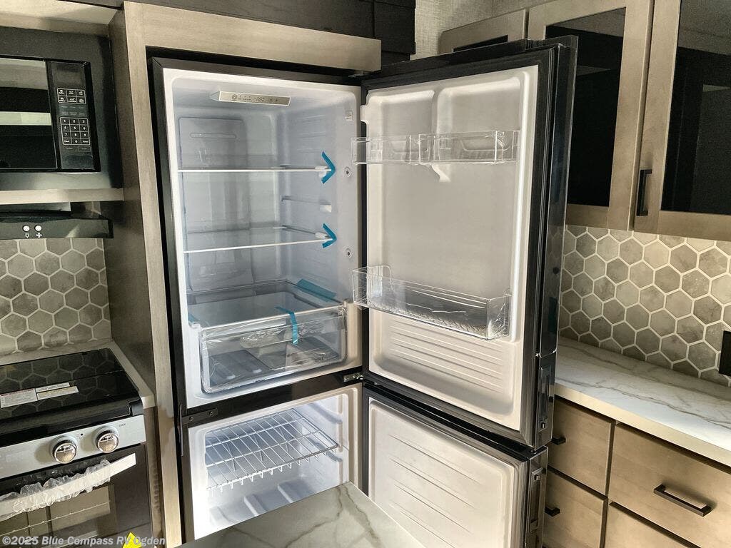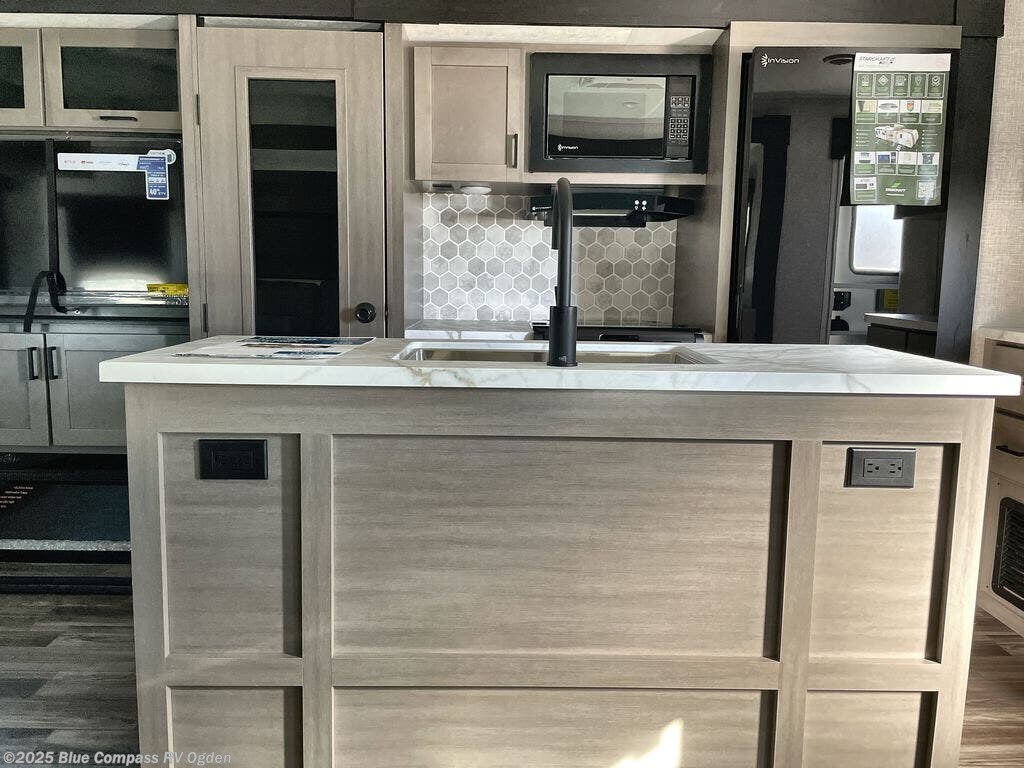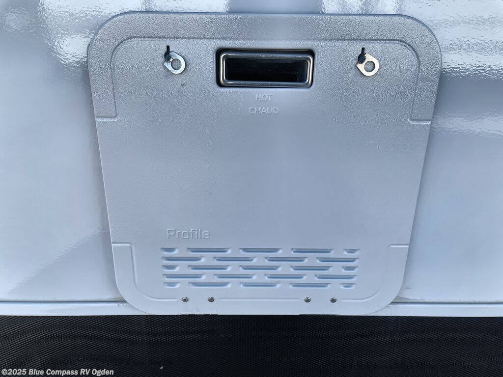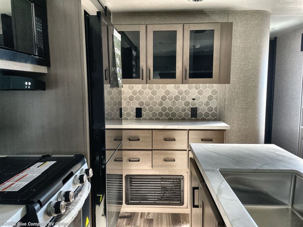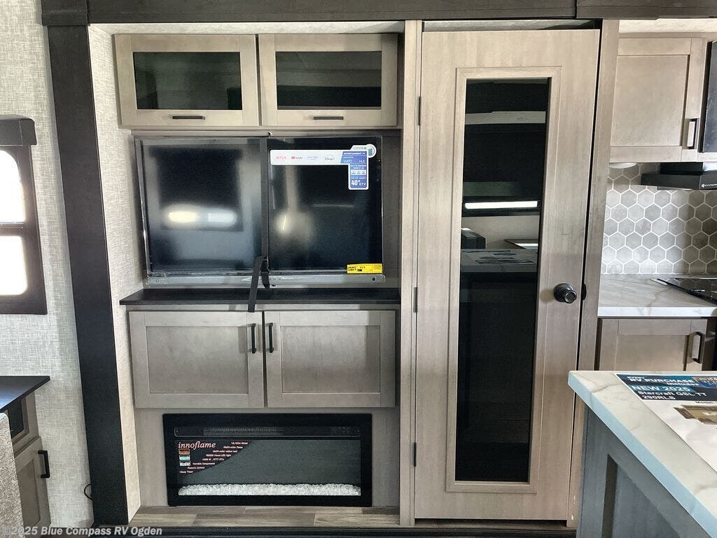 Relax, unwind and enjoy the comforts of this trailer! From the rear living area with a tri-fold sofa, and a slide out with theater seats and a booth dinette, to the fireplace, you might never want to get up to cook. Yet this kitchen is inviting as well with a center island, full kitchen amenities including a 10 cu. ft. refrigerator, a large pantry to hold all the dry goods, and the hutch that offers even more storage and counter space. And the second slide out in this area gives everyone more floor space. The full bathroom has access from the hallway which is near the main entry and the front bedroom where you will have a king bed to sleep on, dual wardrobes and a closet that is prepped to add an optional washer and dryer.